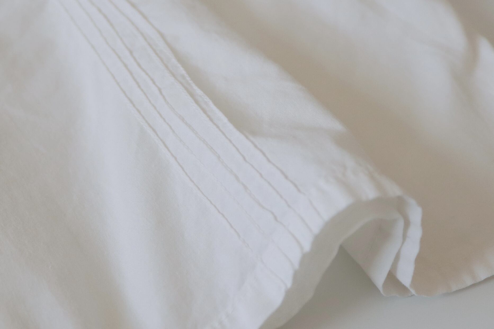 清涼感のあるカラーと生地感、フロントの刺繍に加え、さりげない両サイドのピンタックがアクセントになったこれからの季節にお勧めの1着です。