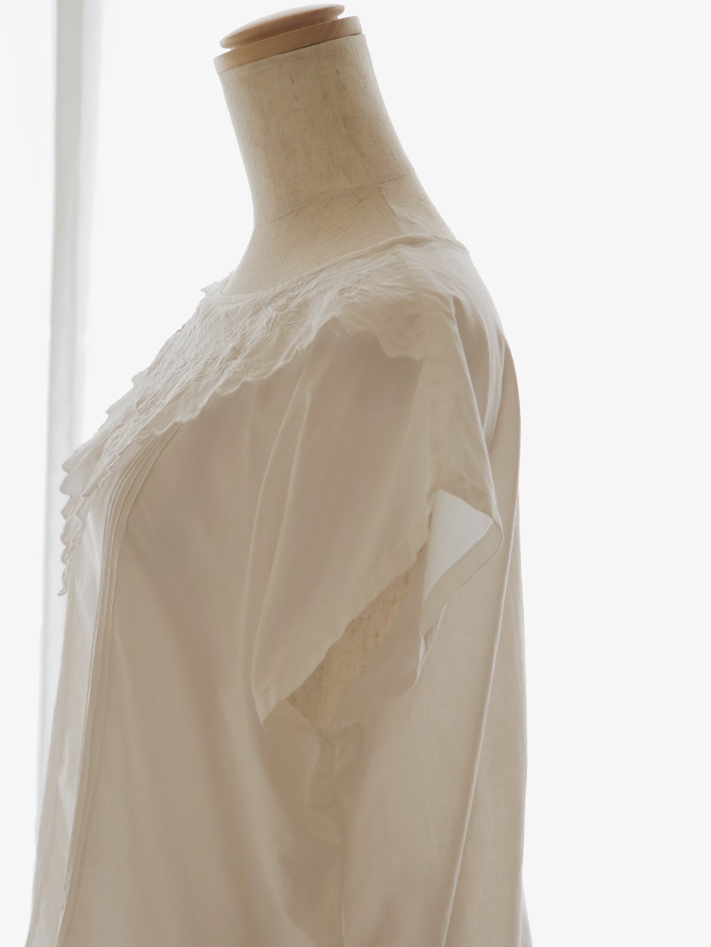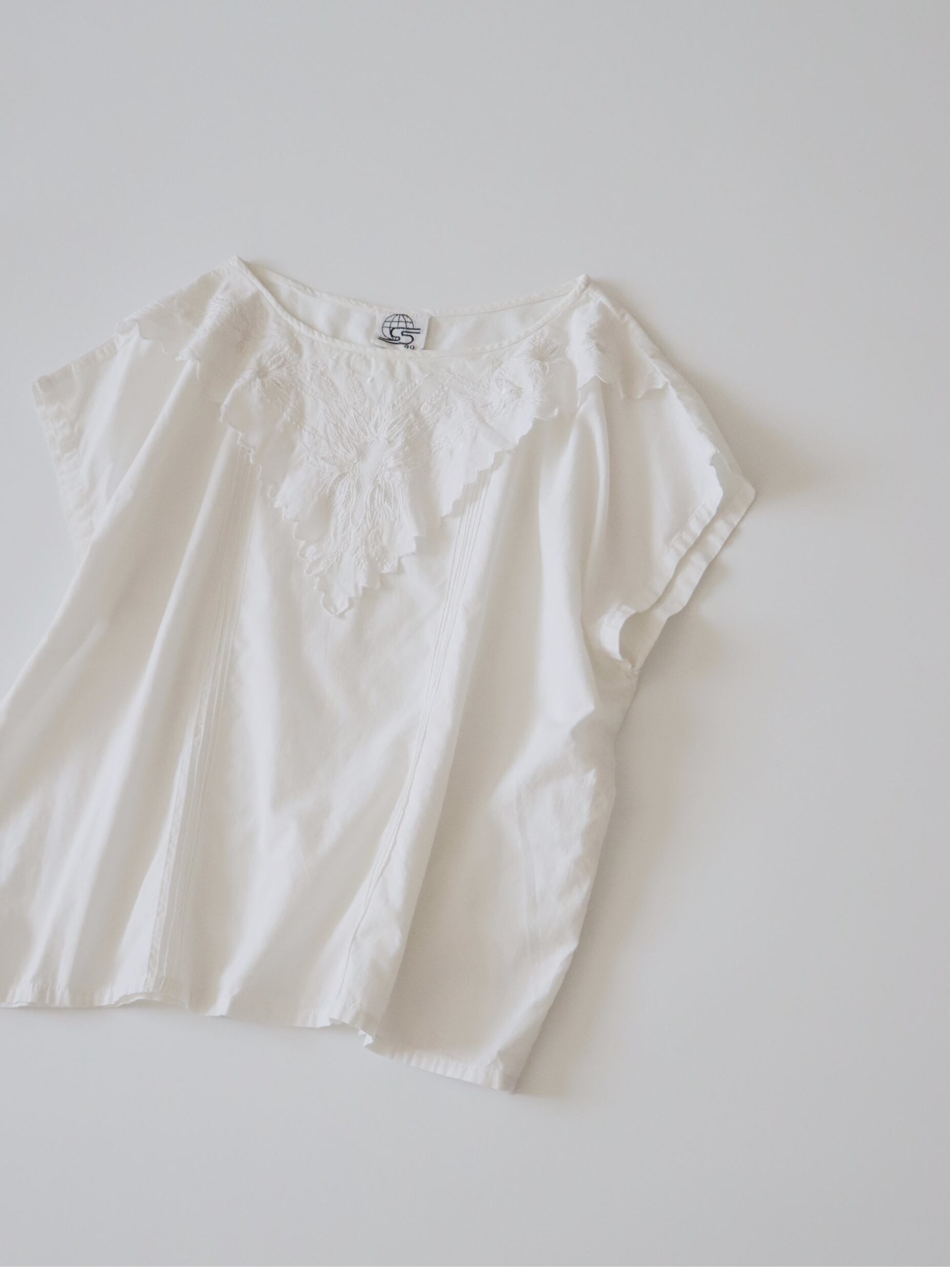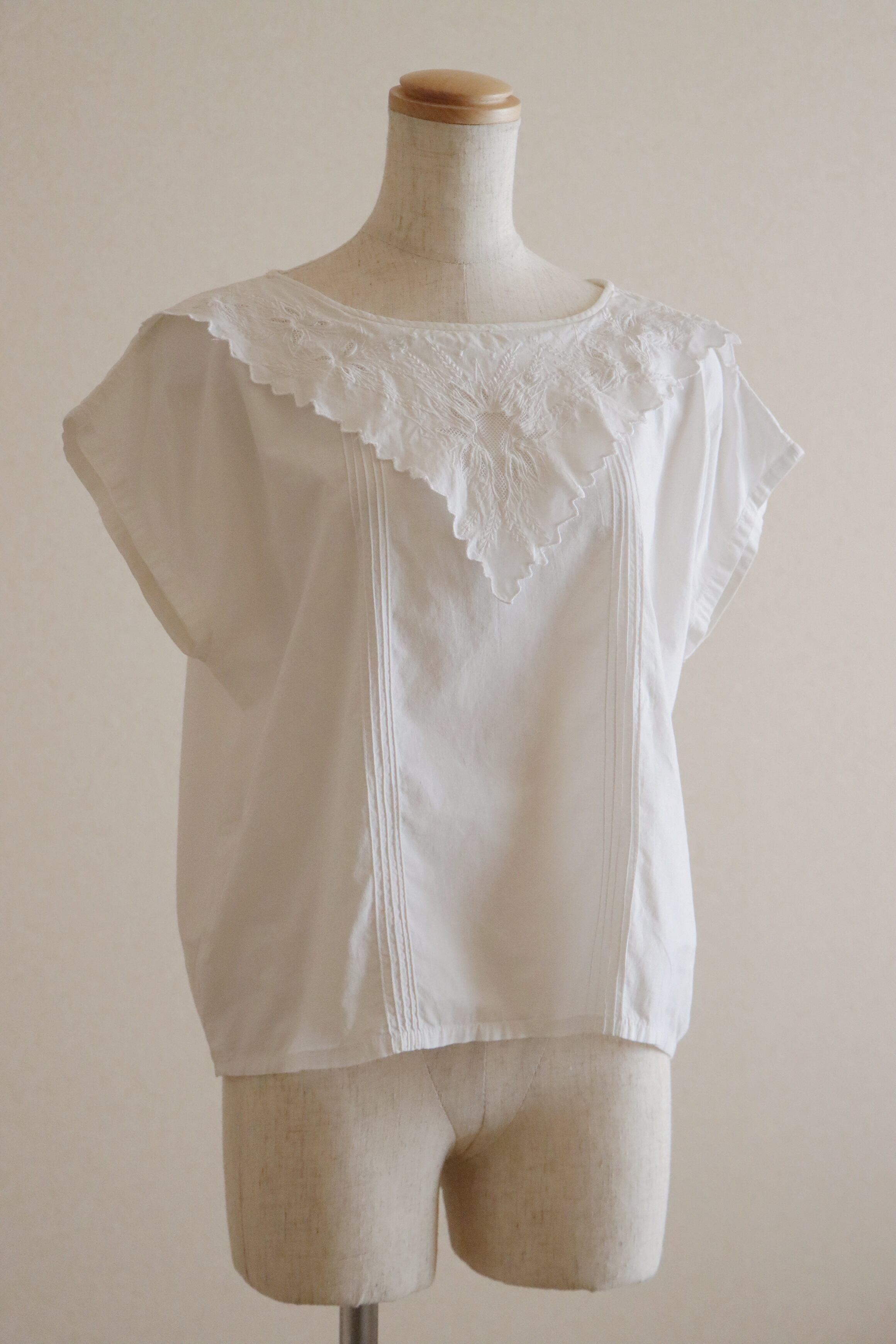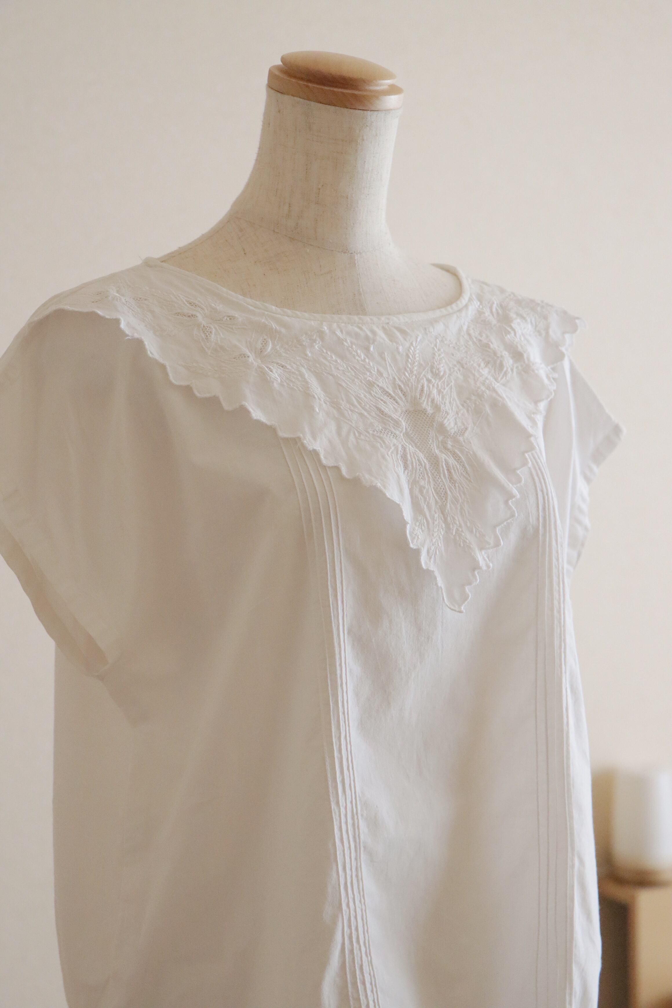 繊細な刺繍が施された綿100%のプルオーバーブラウス。