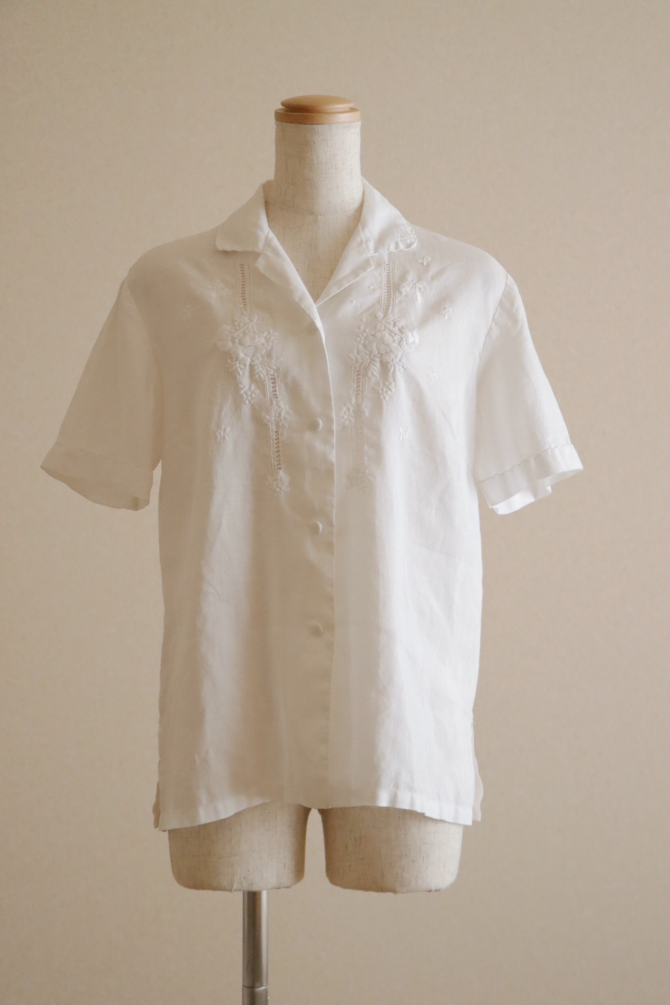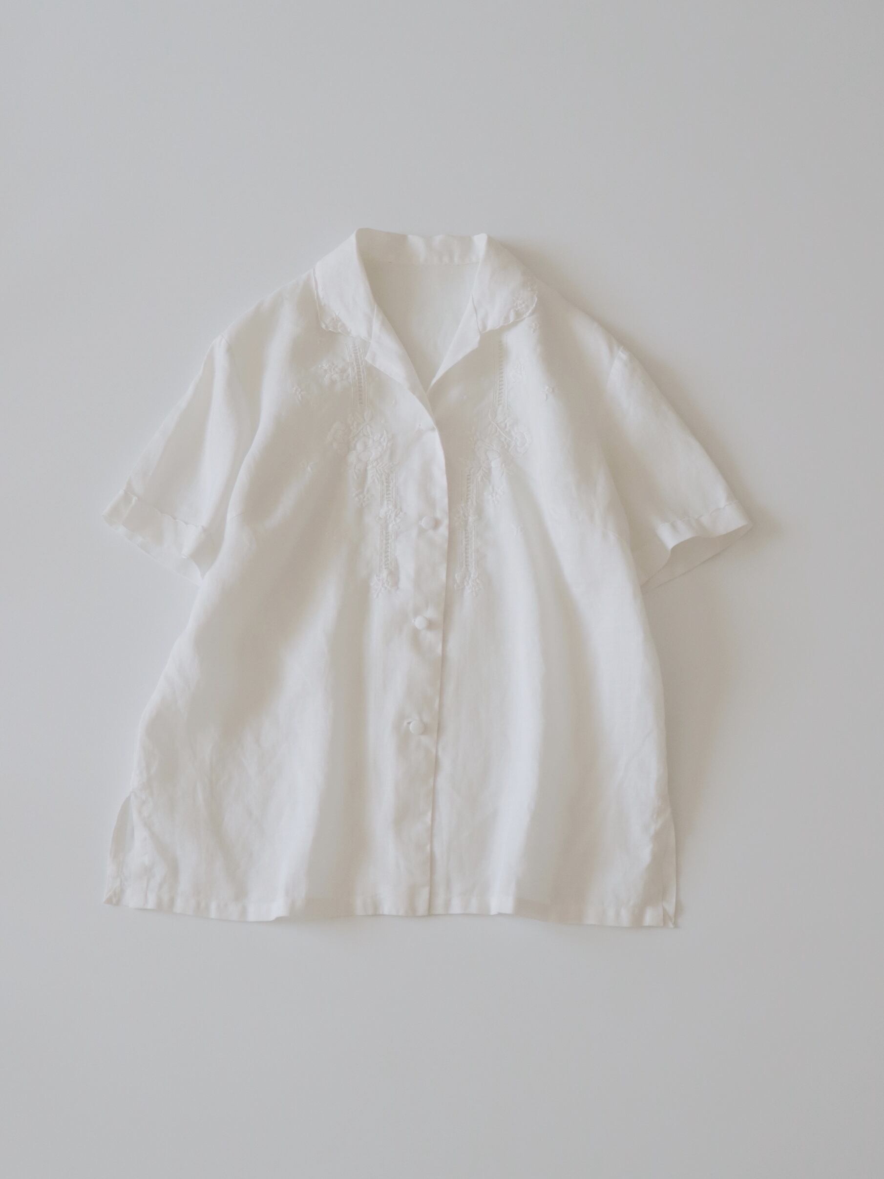 ●flower embroidery design linen short sleeve shirt