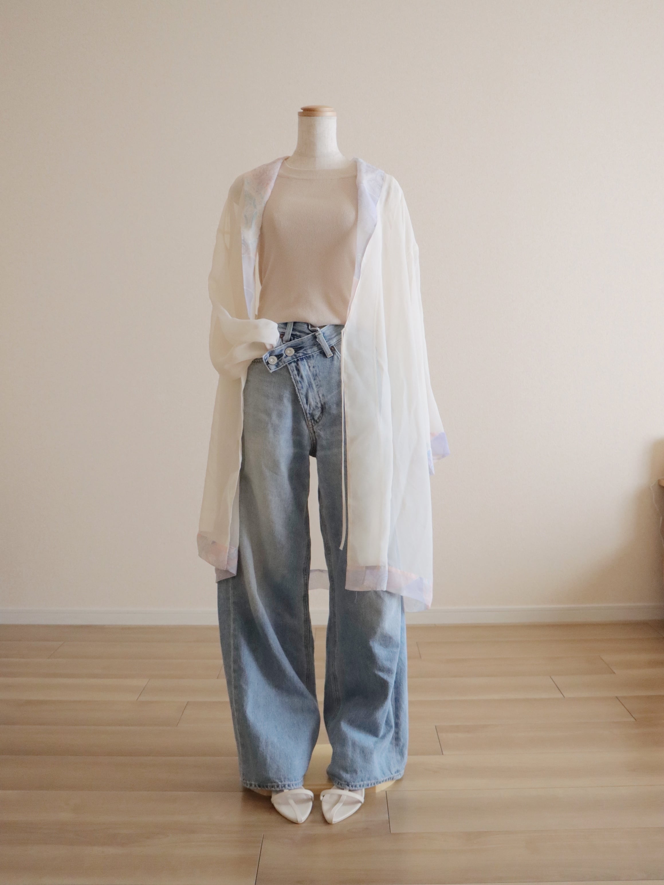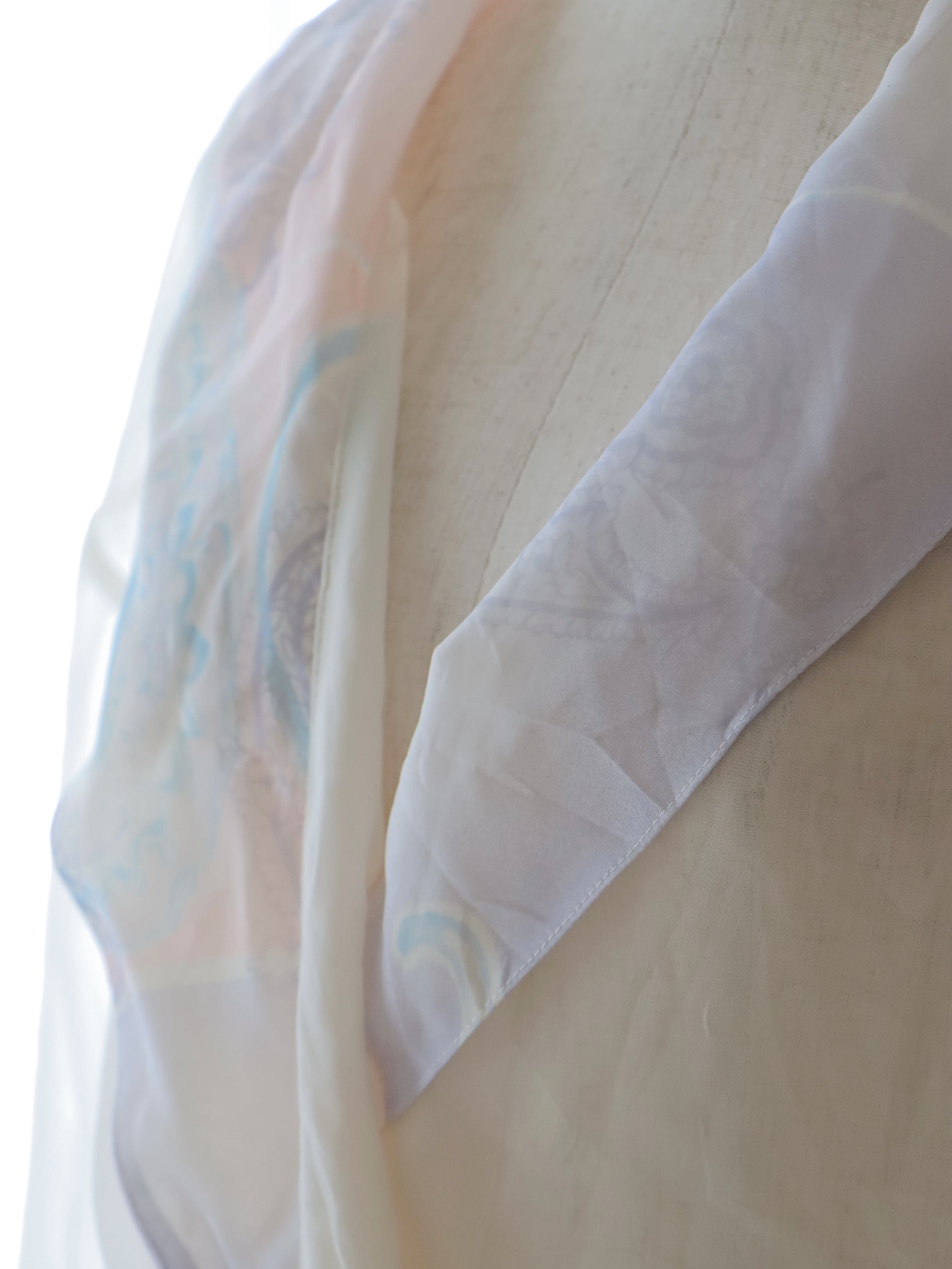 ふんわり柔らかなシフォン生地を贅沢に使用した、さらっと羽織りやすい1着です。