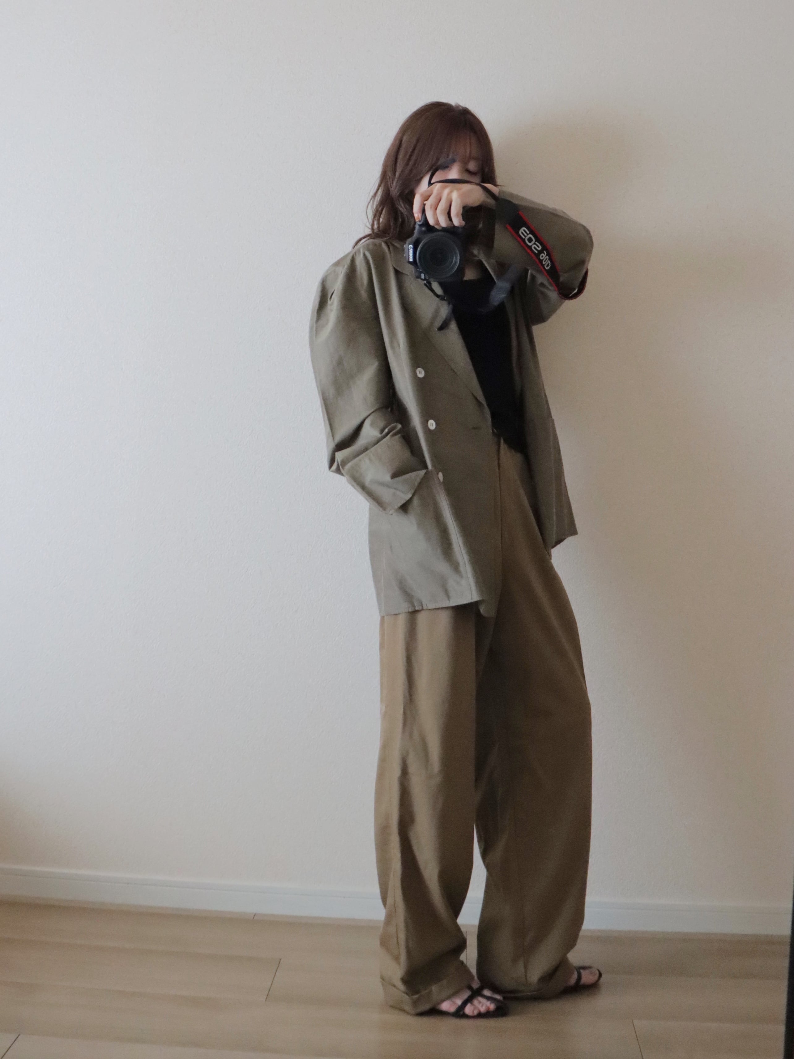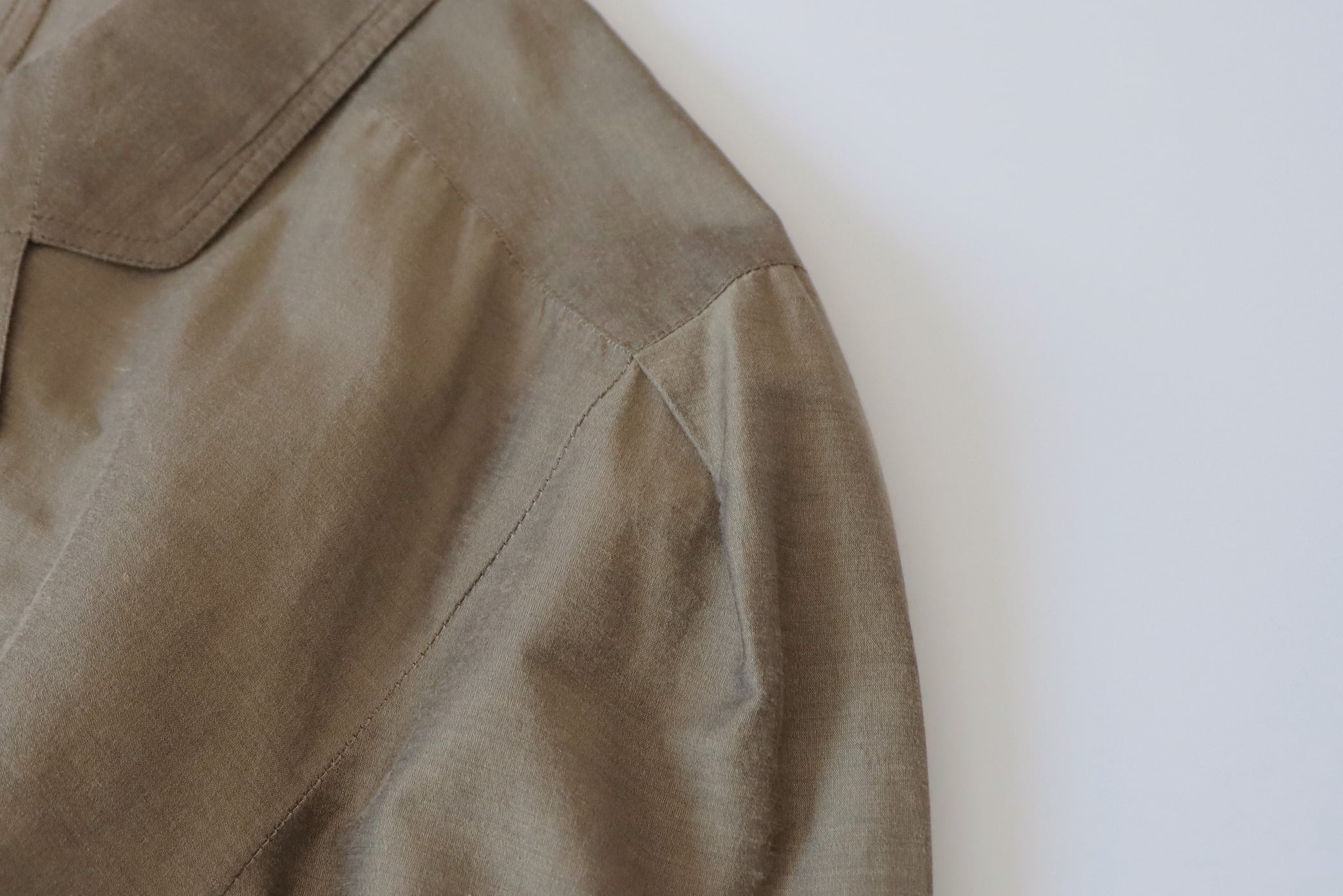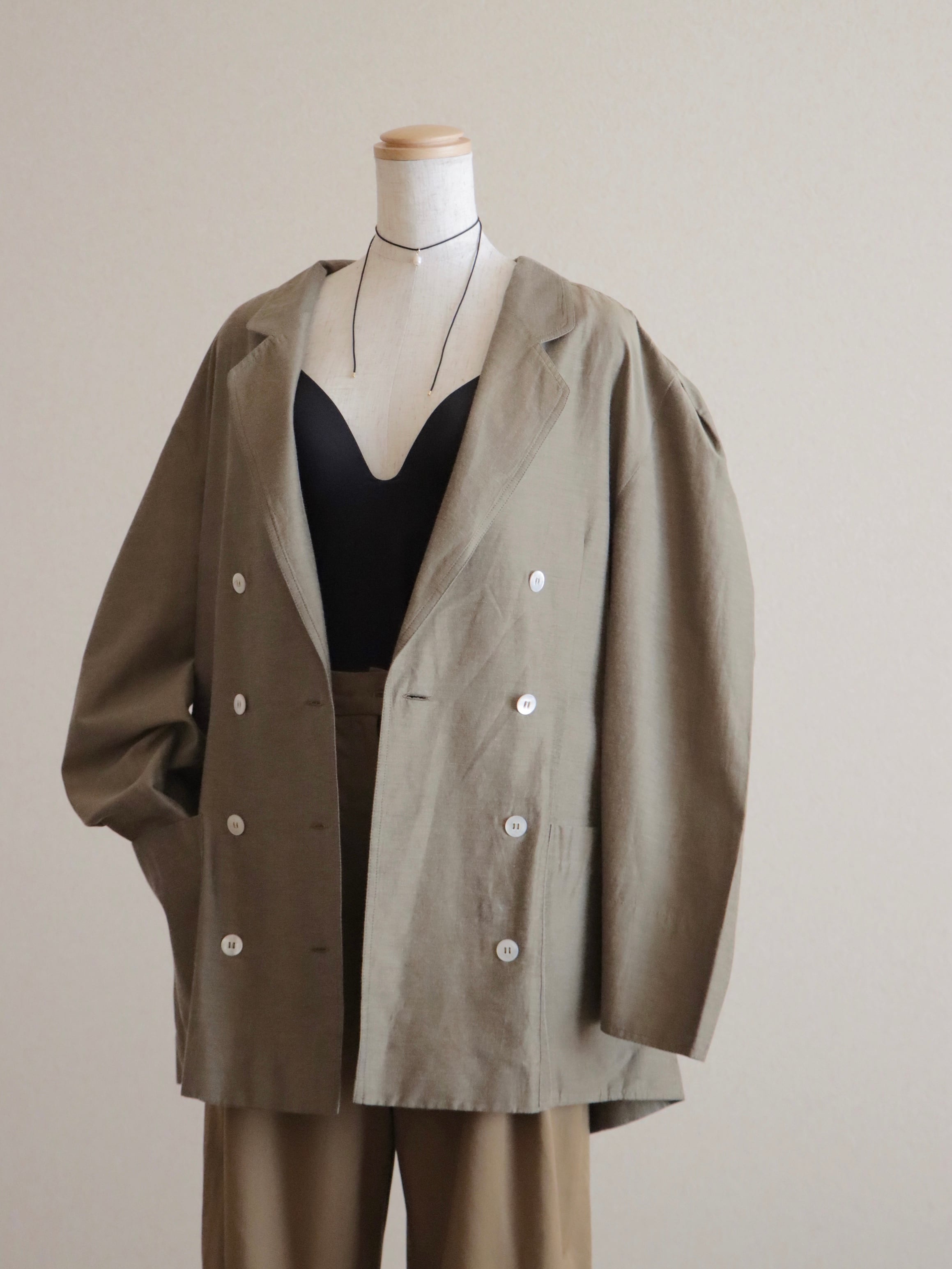 メンズライクな雰囲気の中に、さりげなく入った袖山のタックで女性らしい立体感を出しています。