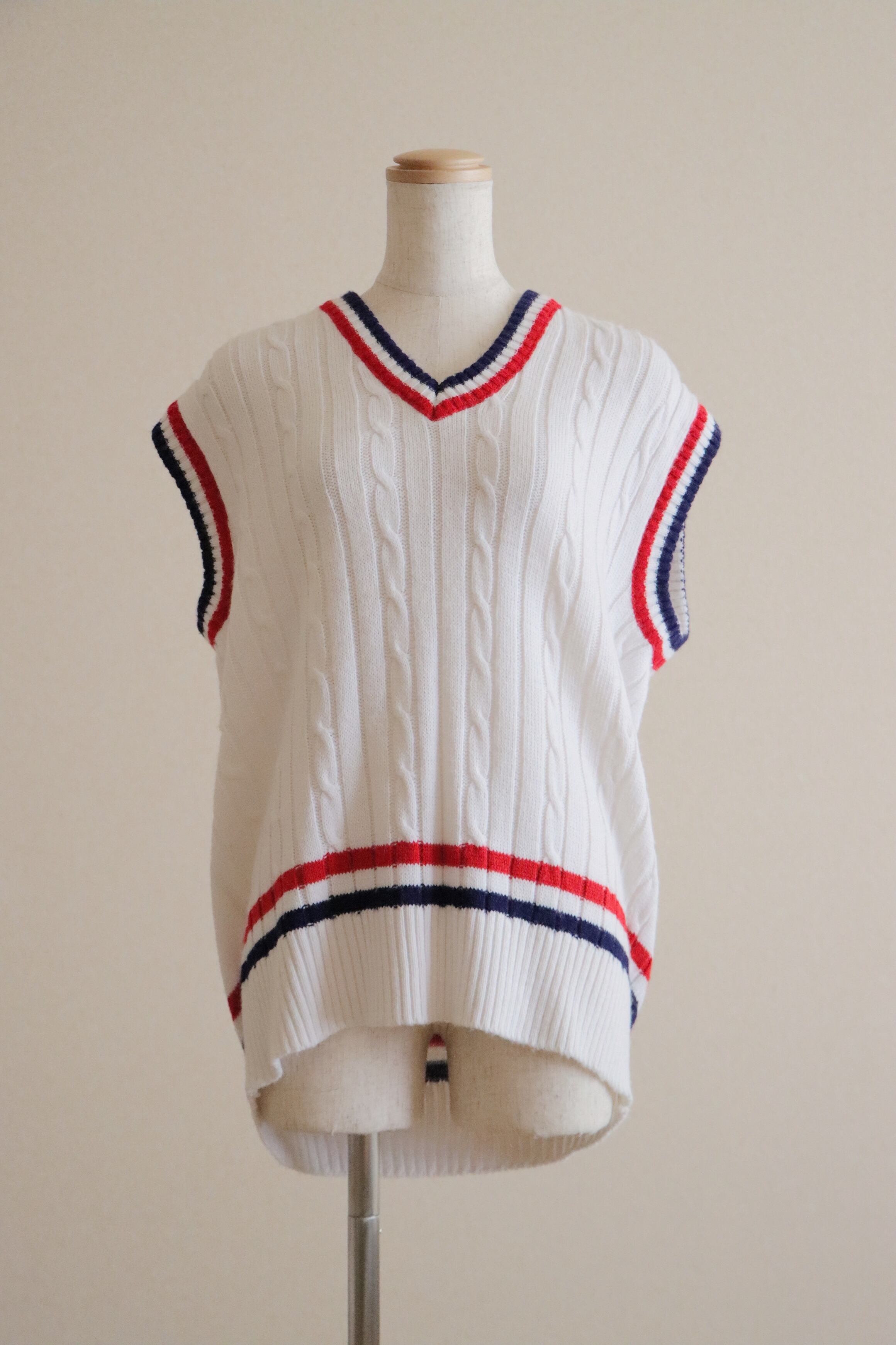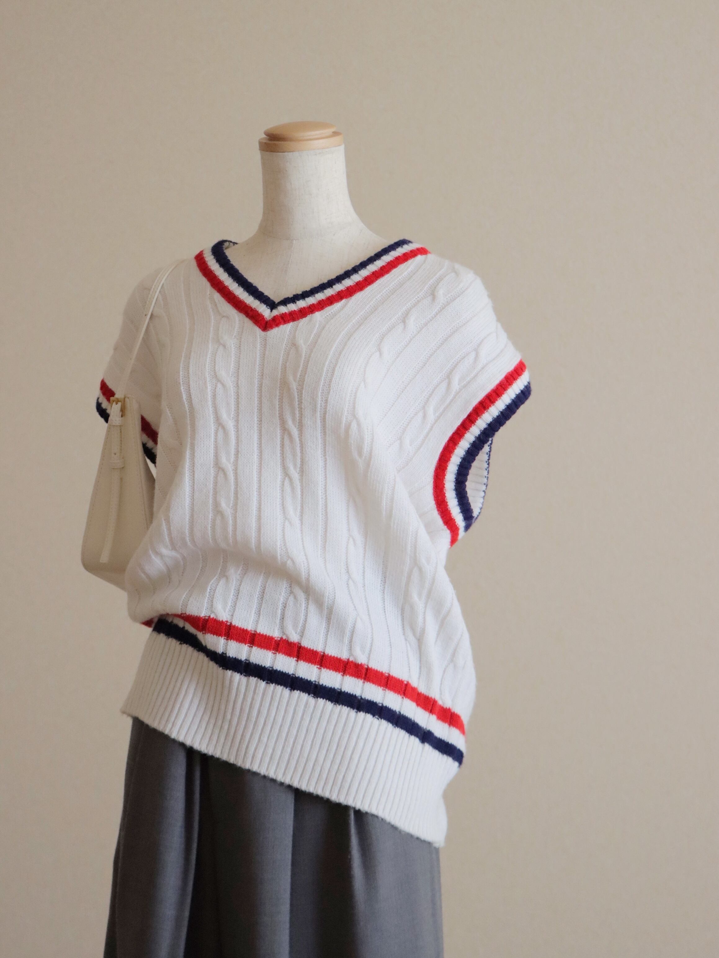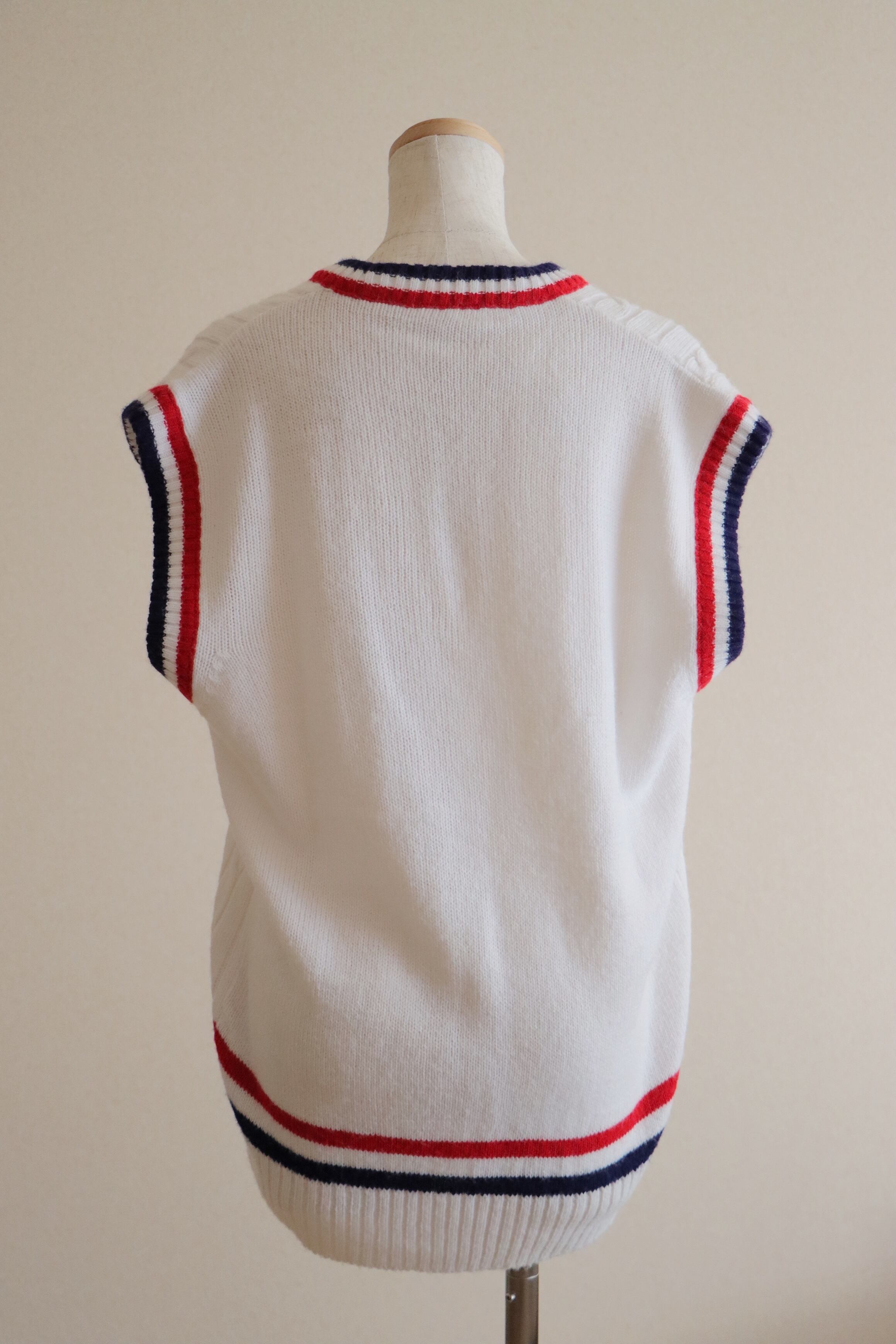 ●tricolor color college knitted vest