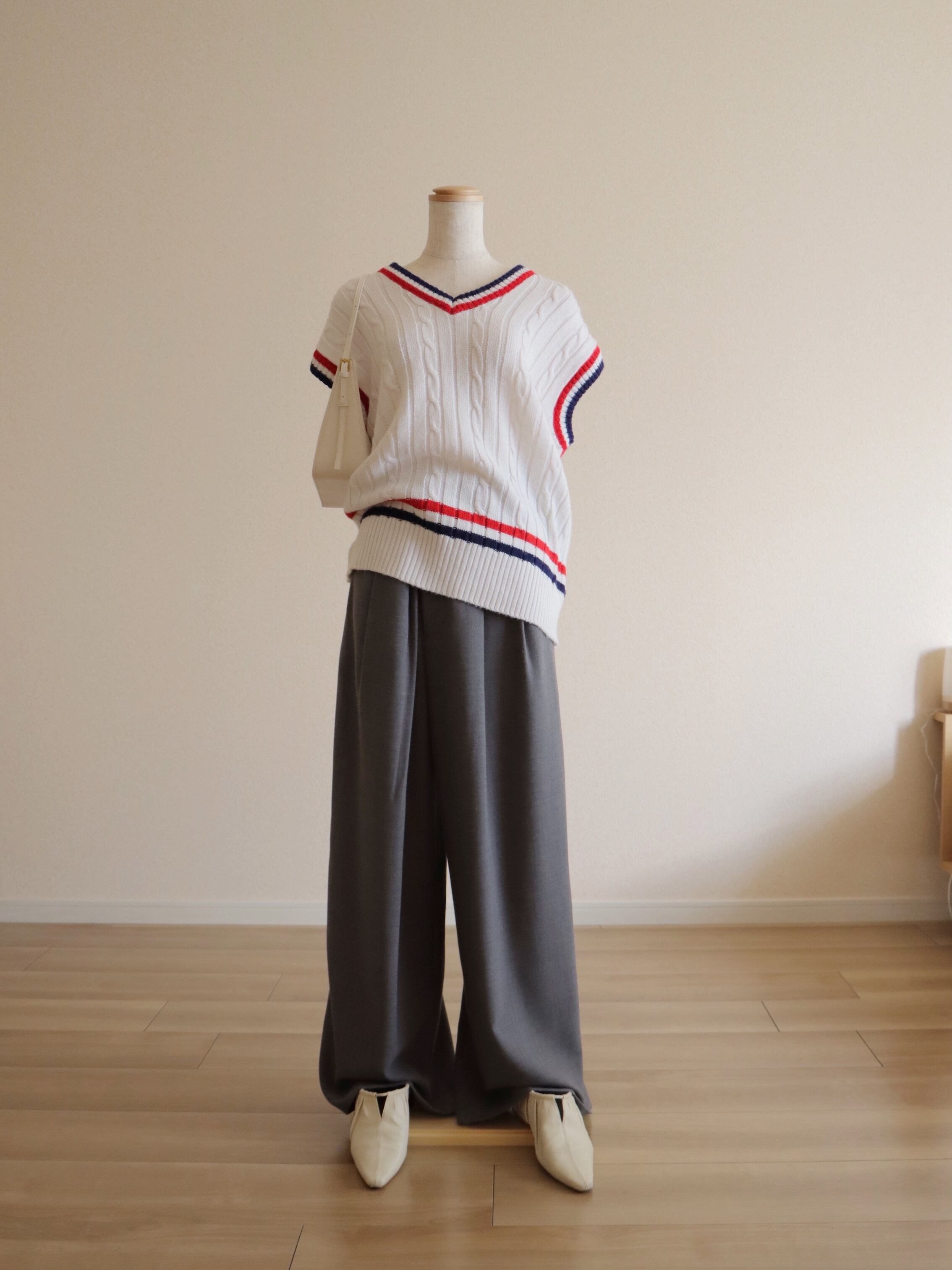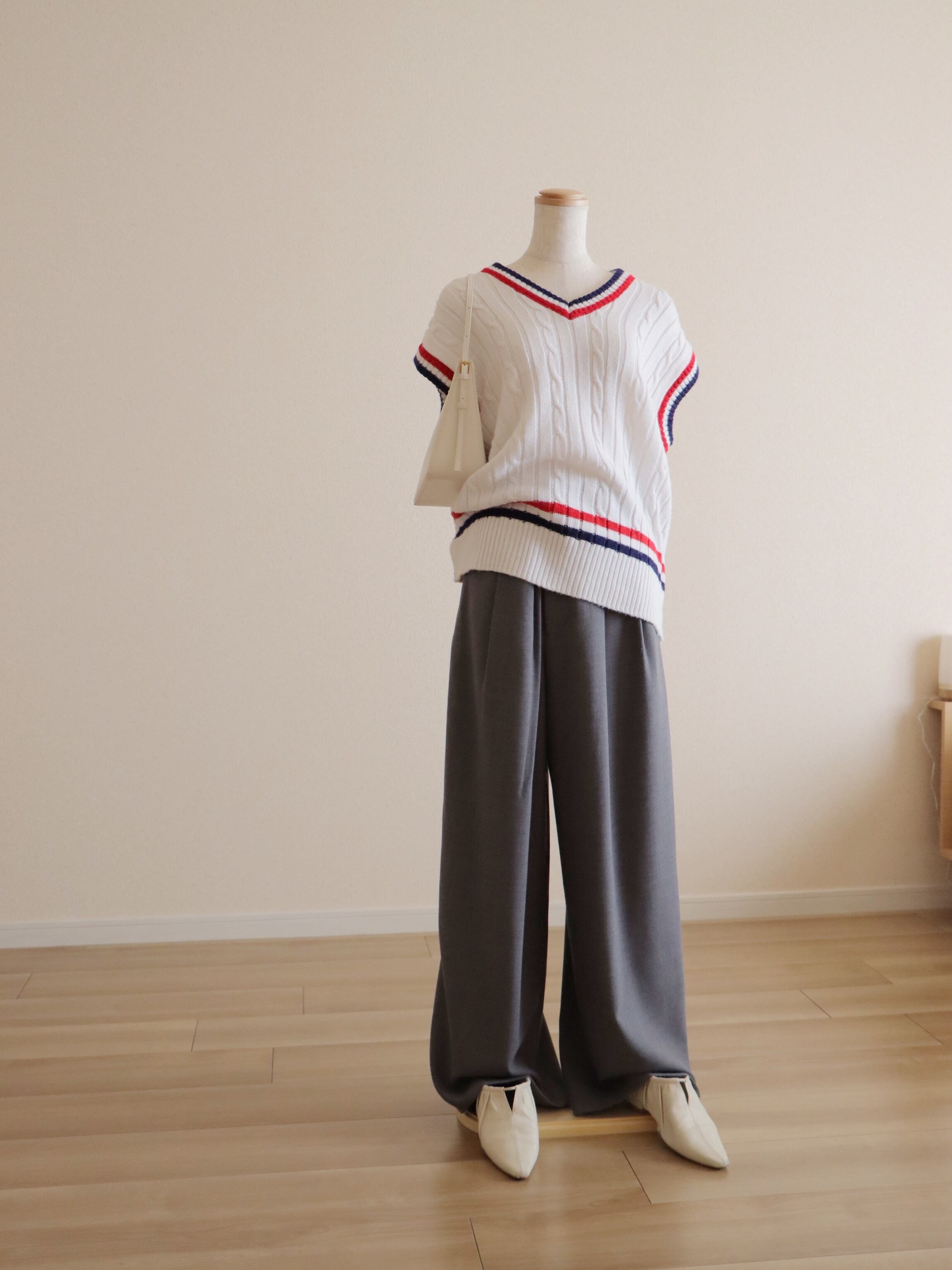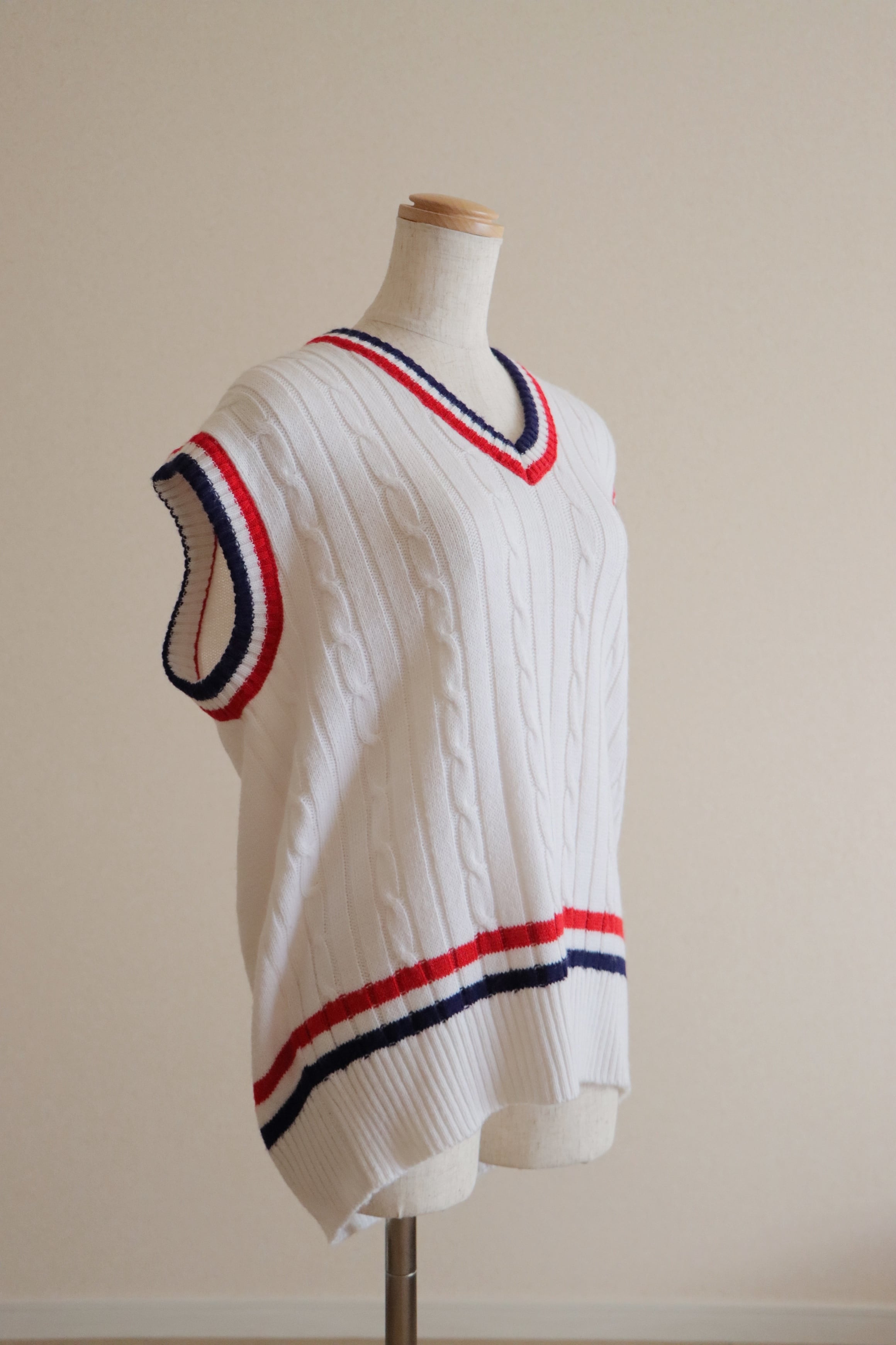 ●tricolor color college knitted vest