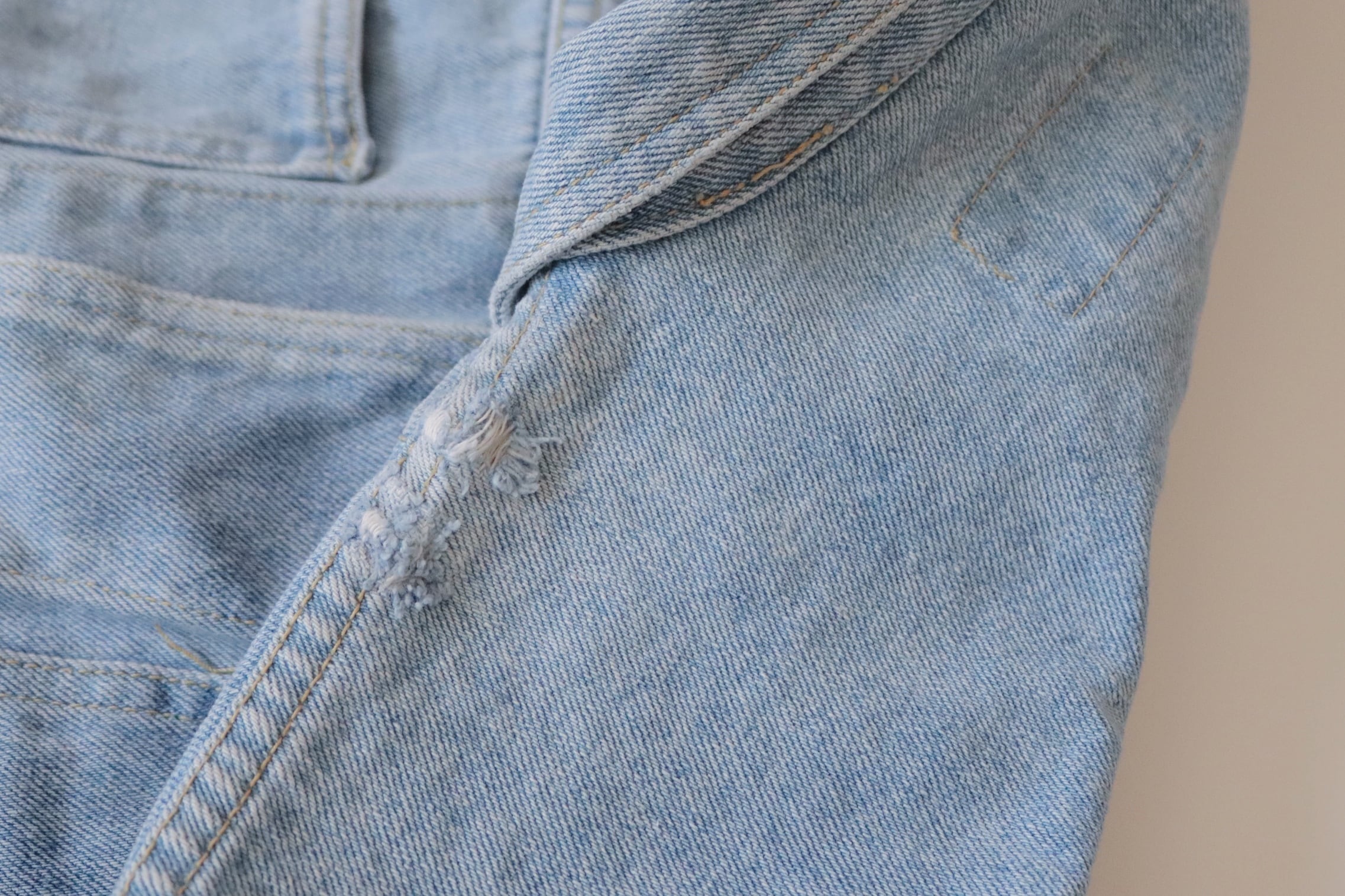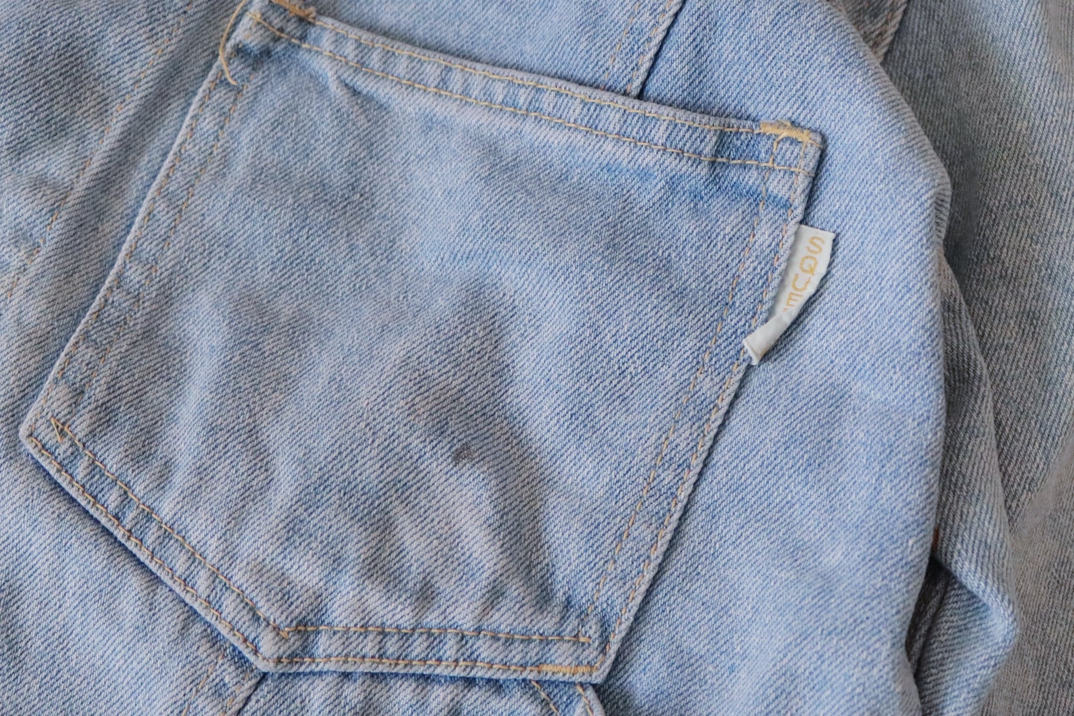 一部小さなインク汚れのような箇所、一部うっすら若干の同色くすみ、左肩線近くに擦れ傷がございますが、デニム特有の良い味となっていてあまり目立たず使用に影響はございません。