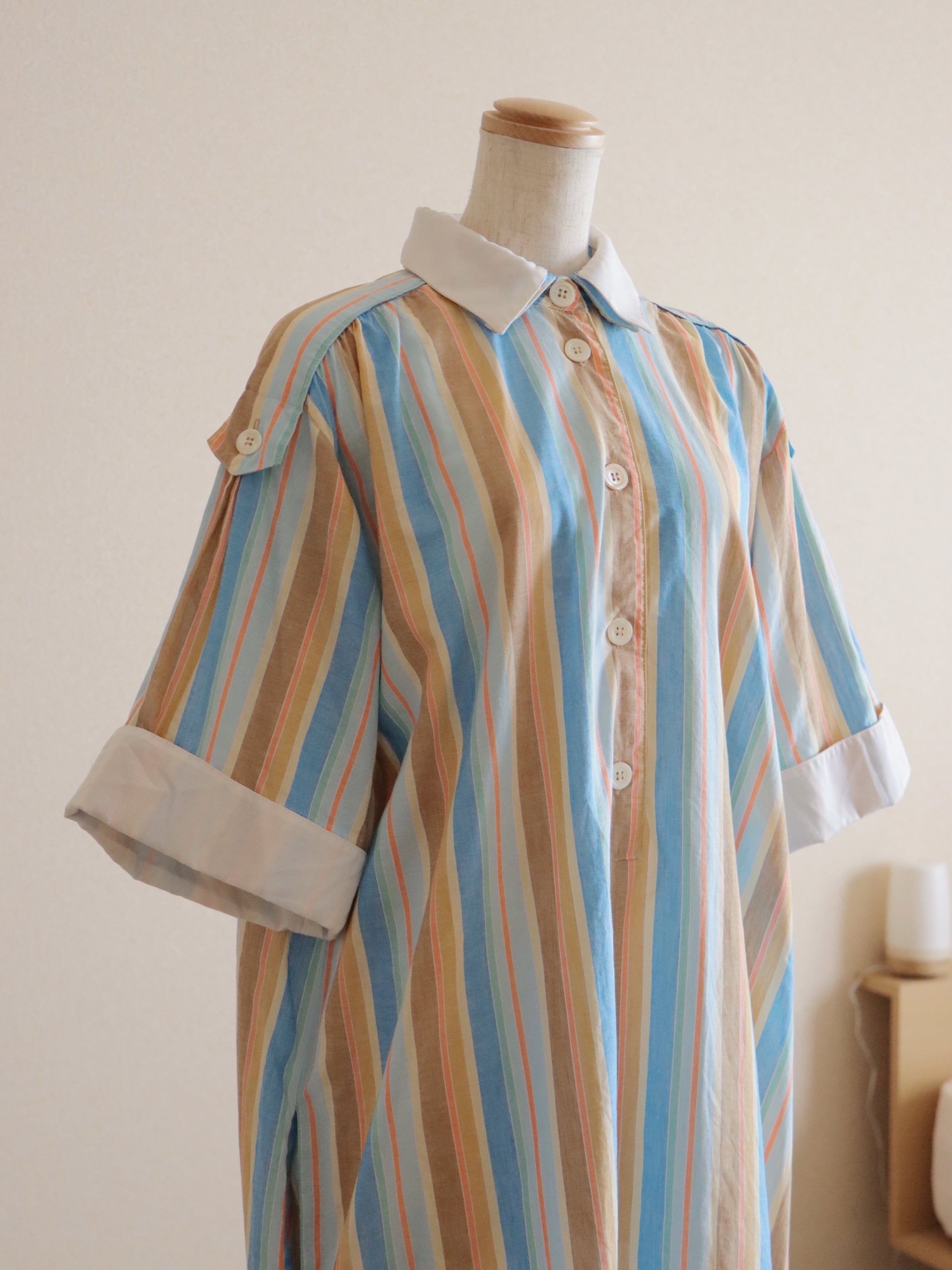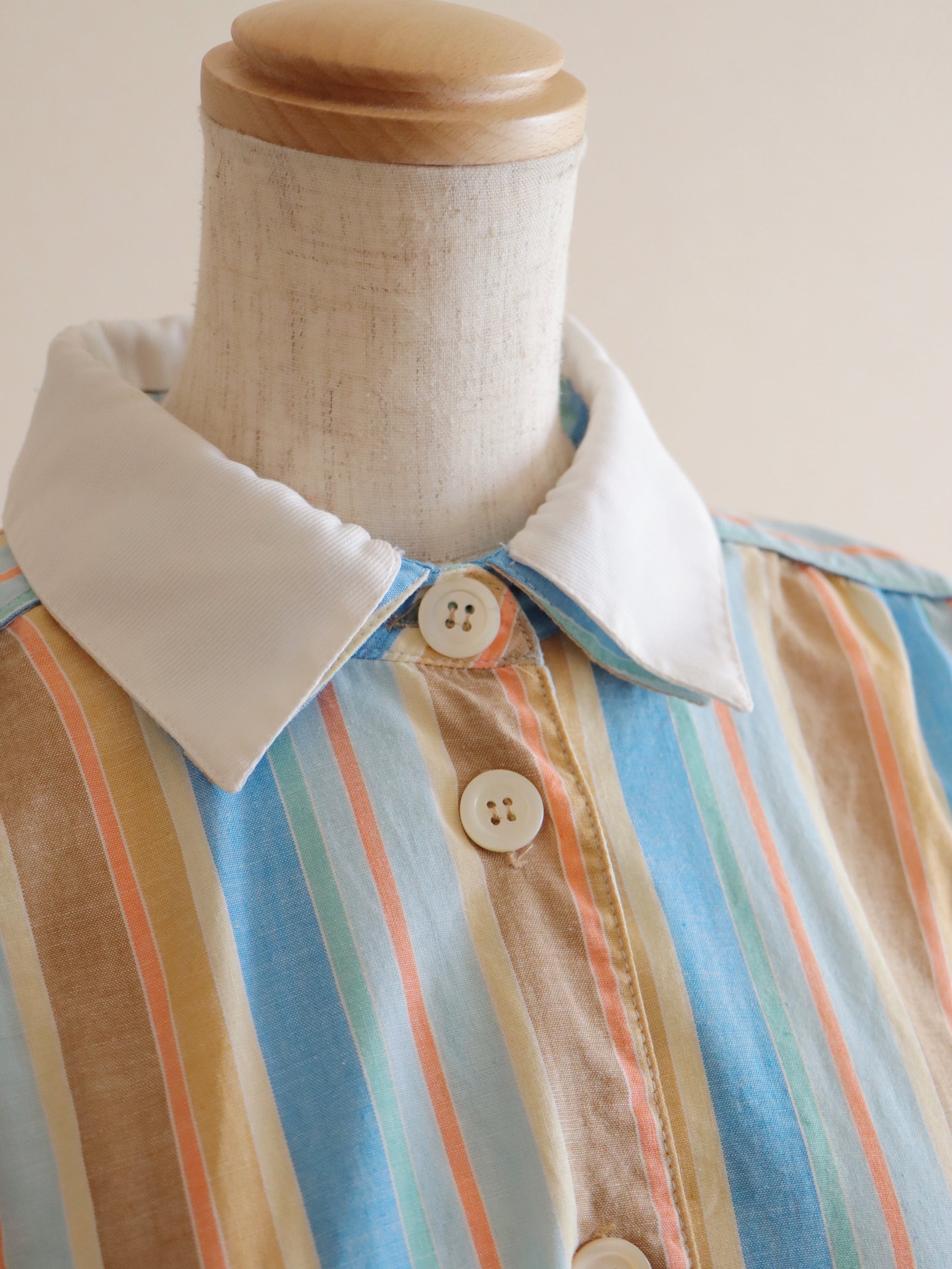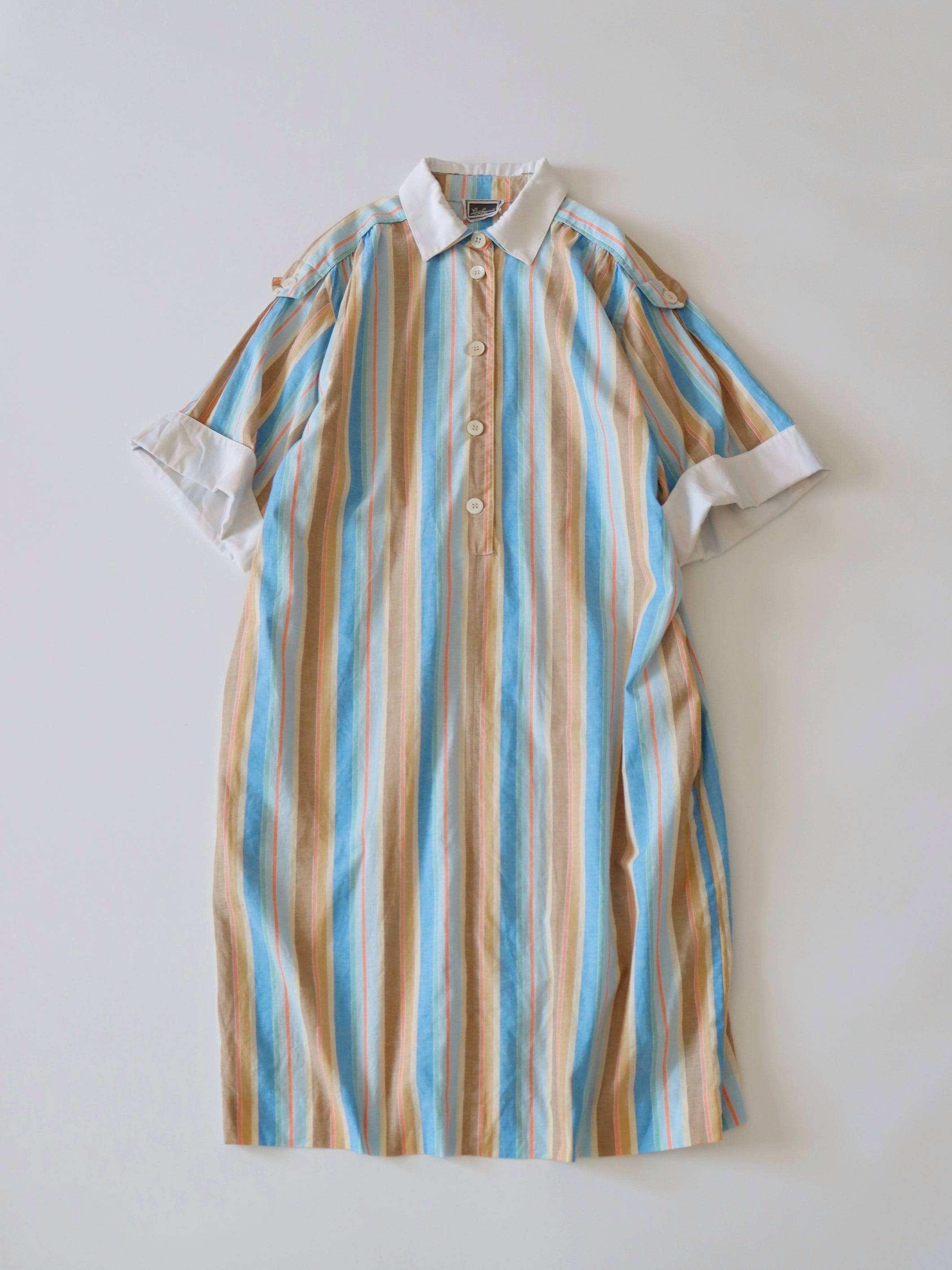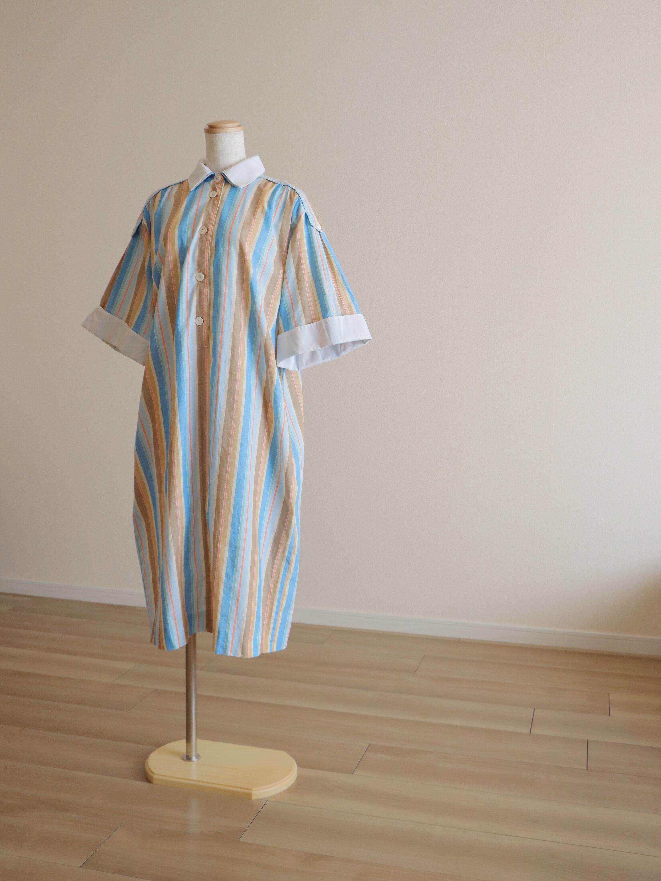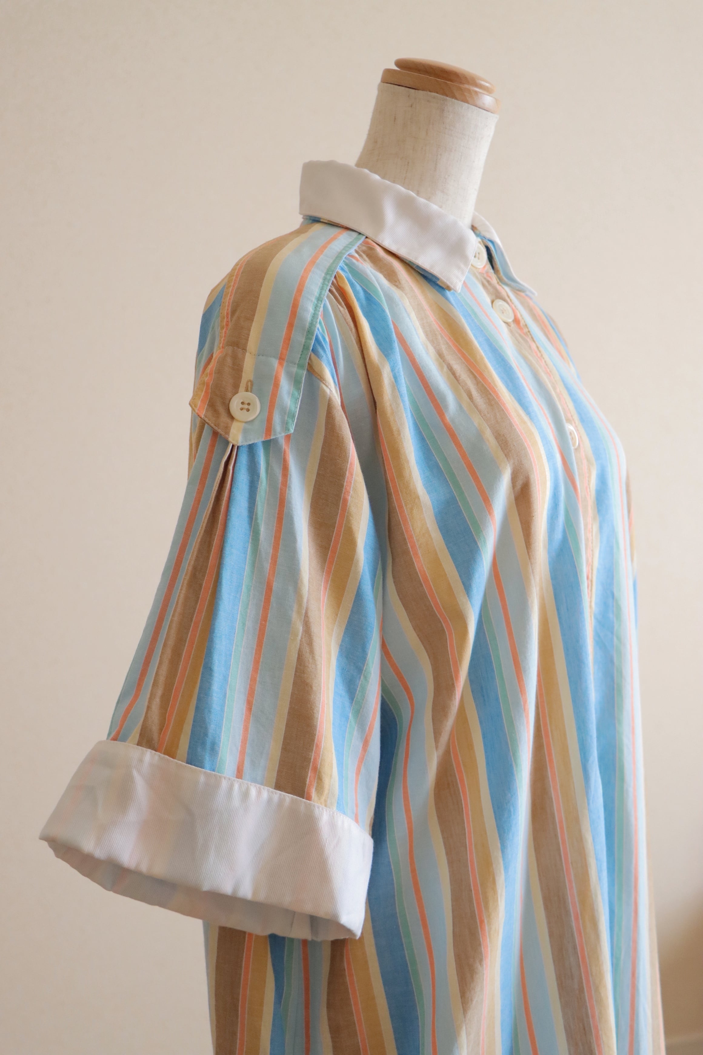 ●80s made in ITALY Luisa Spagnoli striped collared design cotton dress.