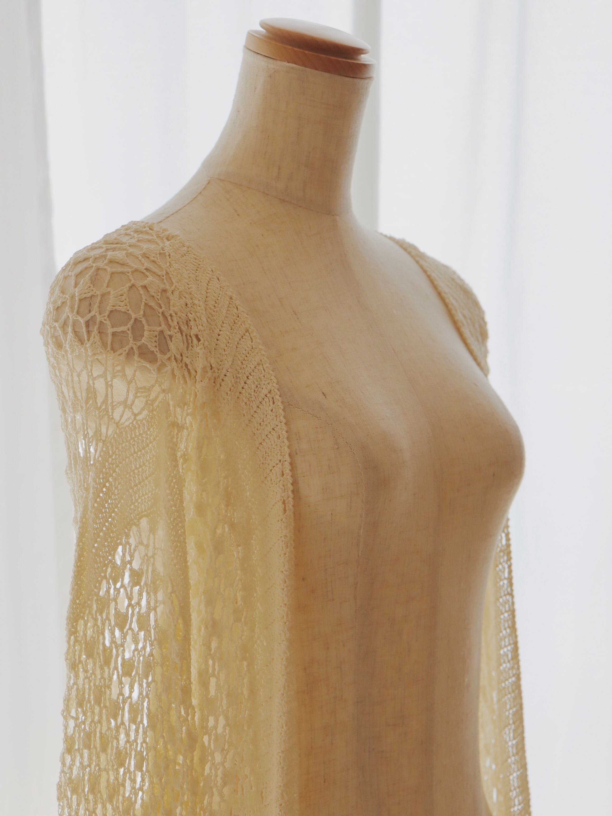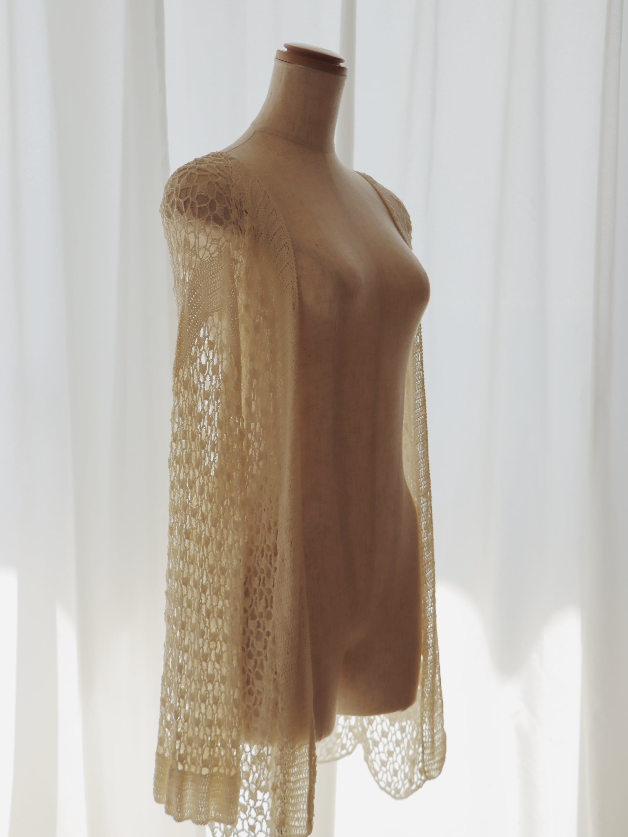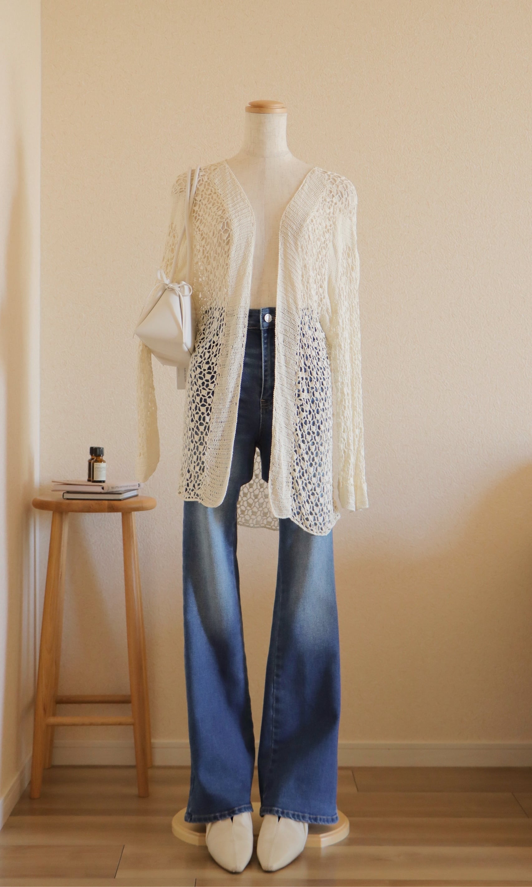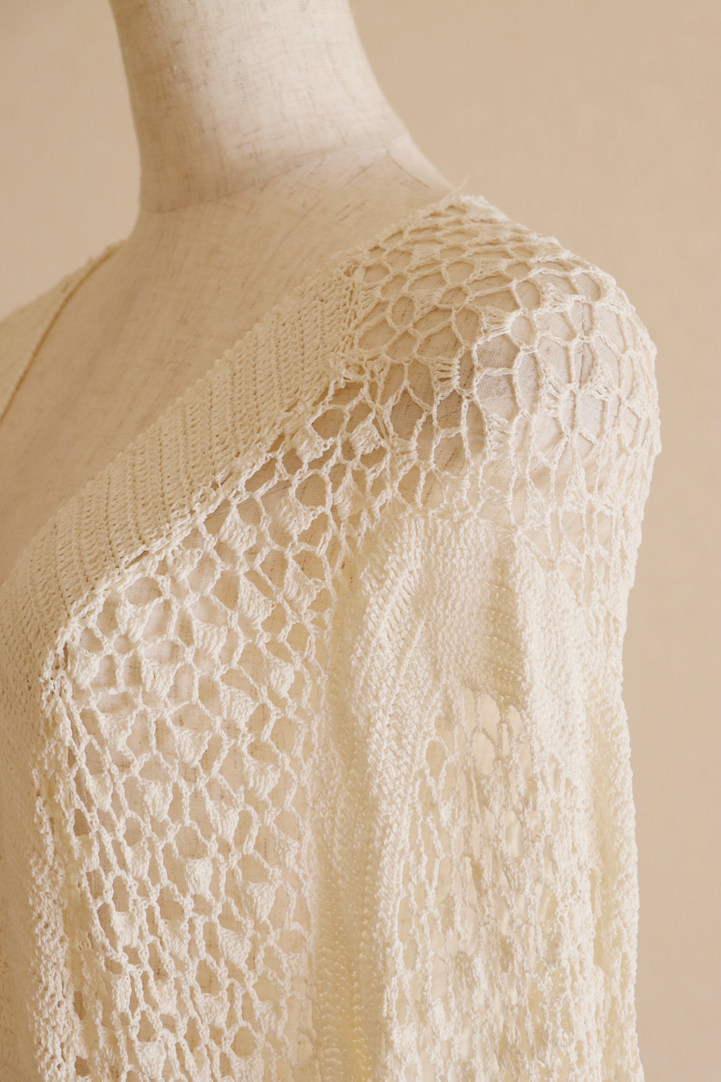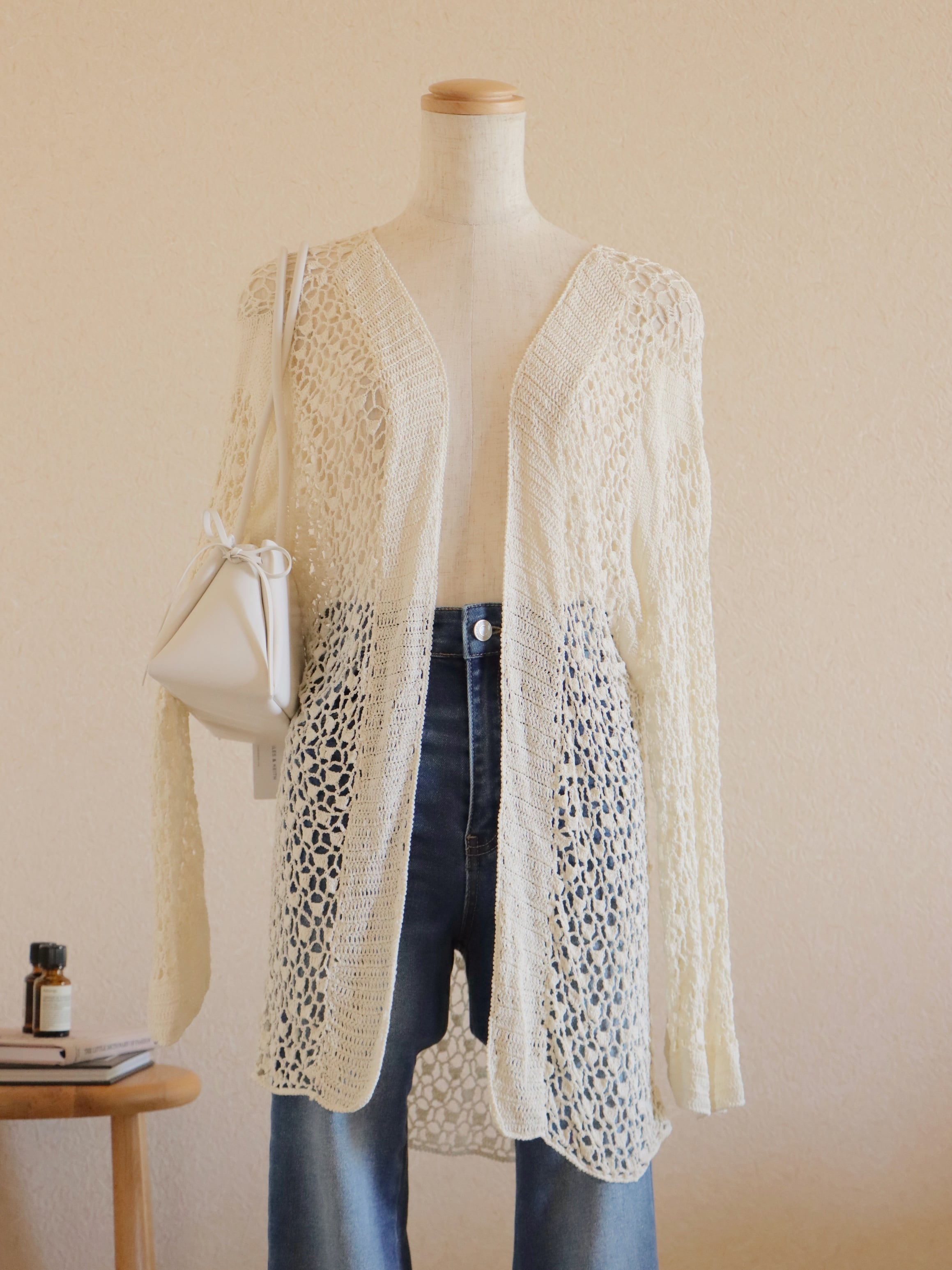 繊細に編まれたかぎ針編みが可愛いクロシェカーディガン。