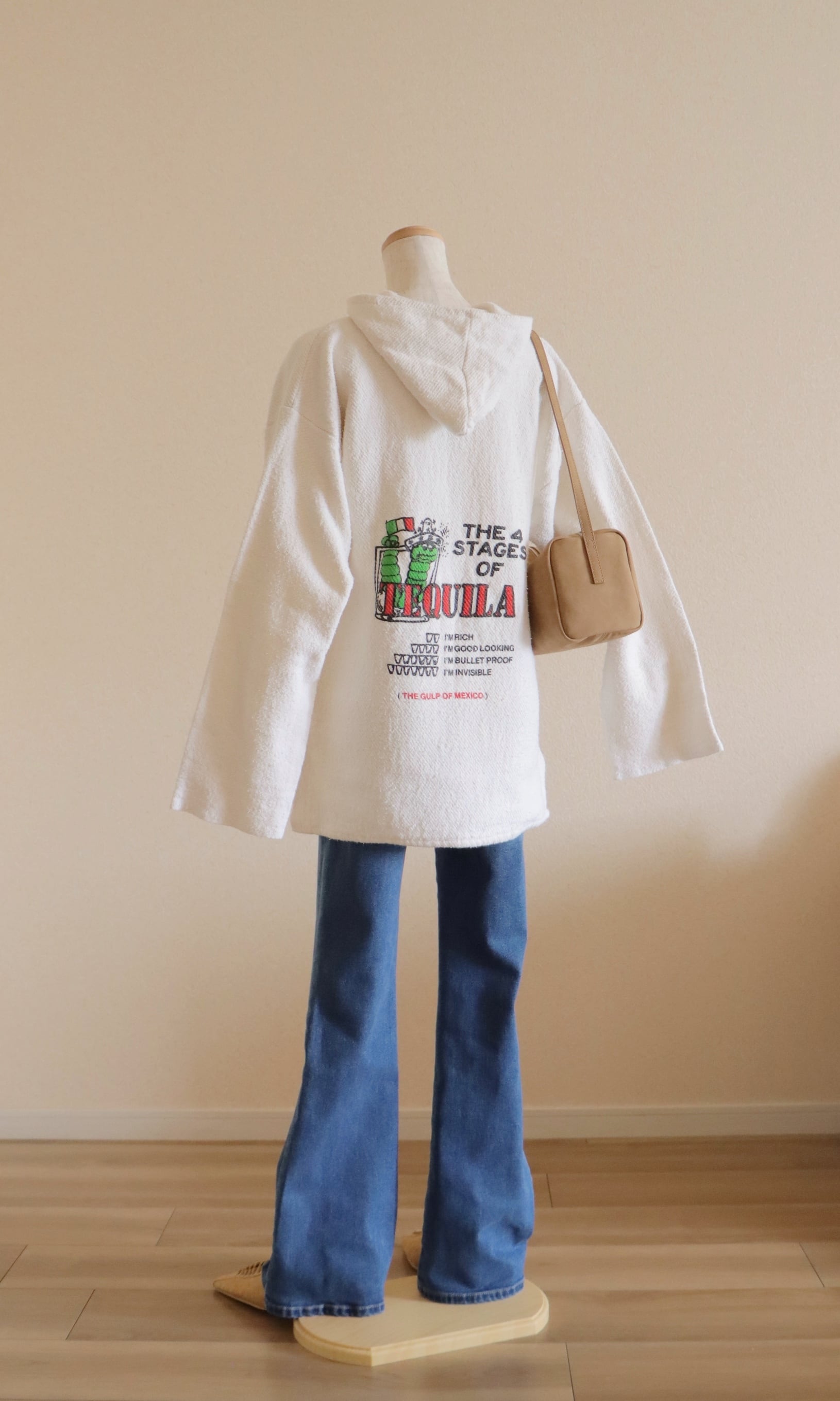 優しい生成りカラーで着回ししやすいメキシカンパーカー。