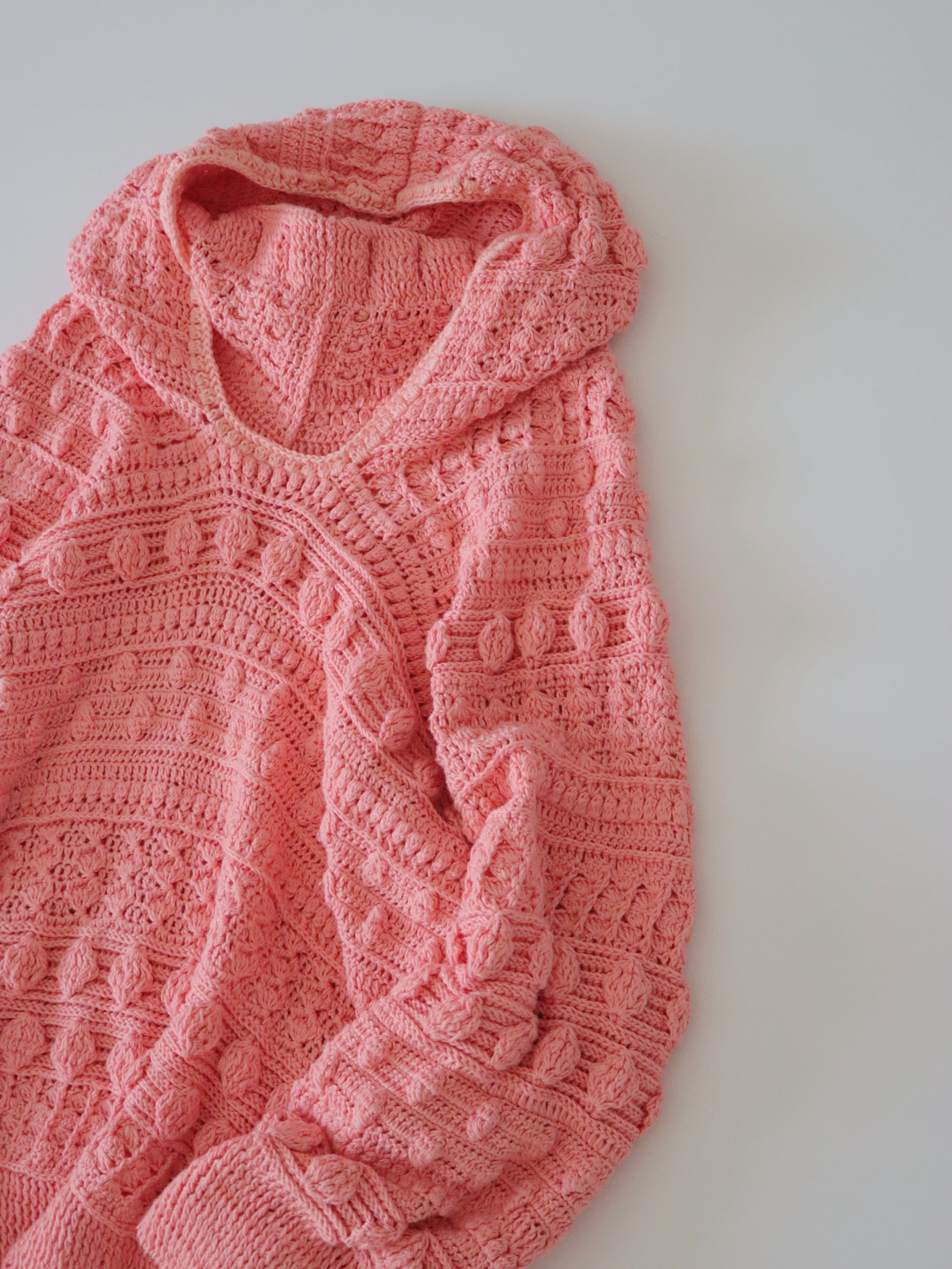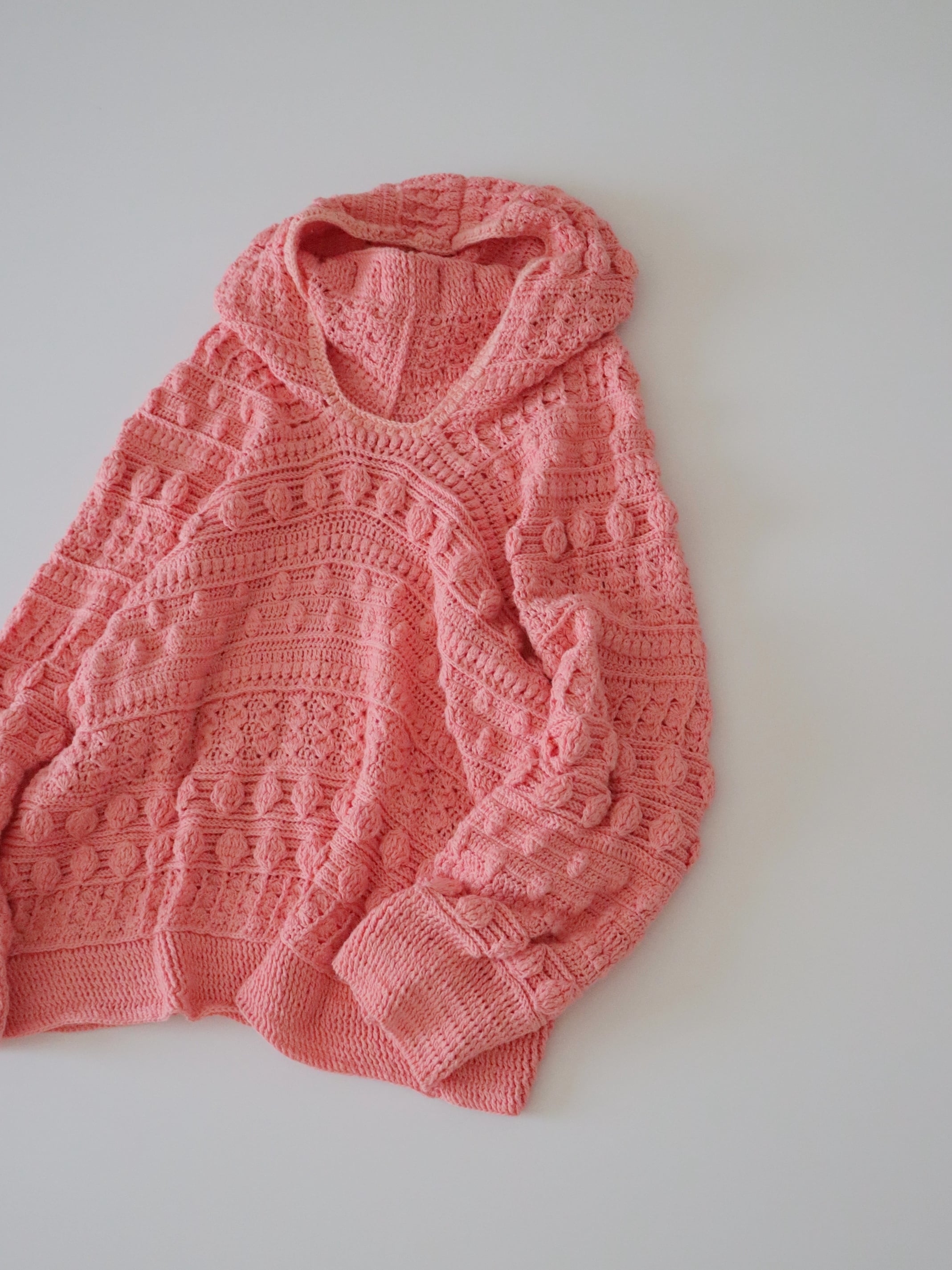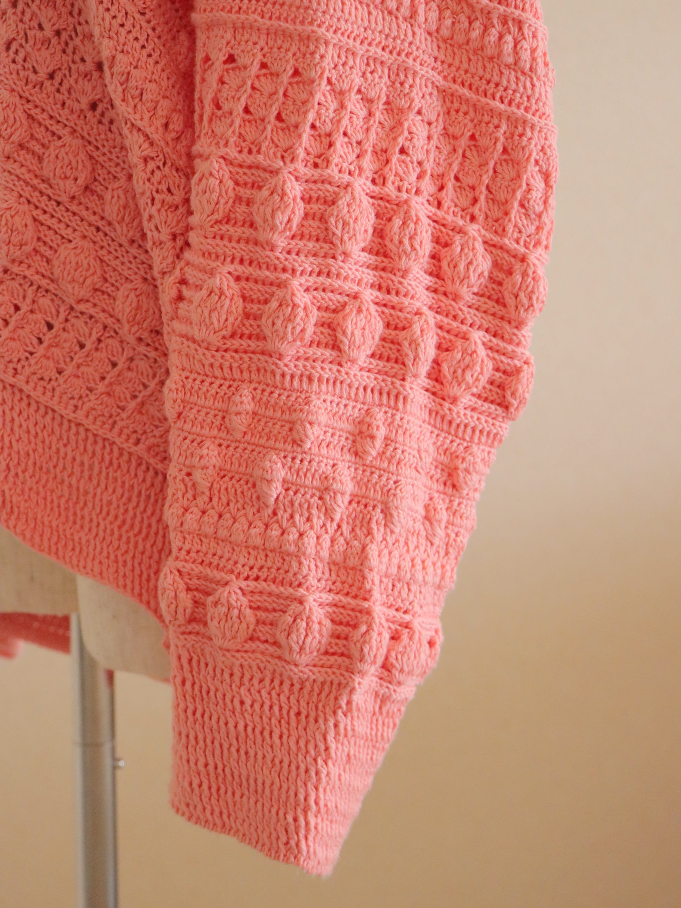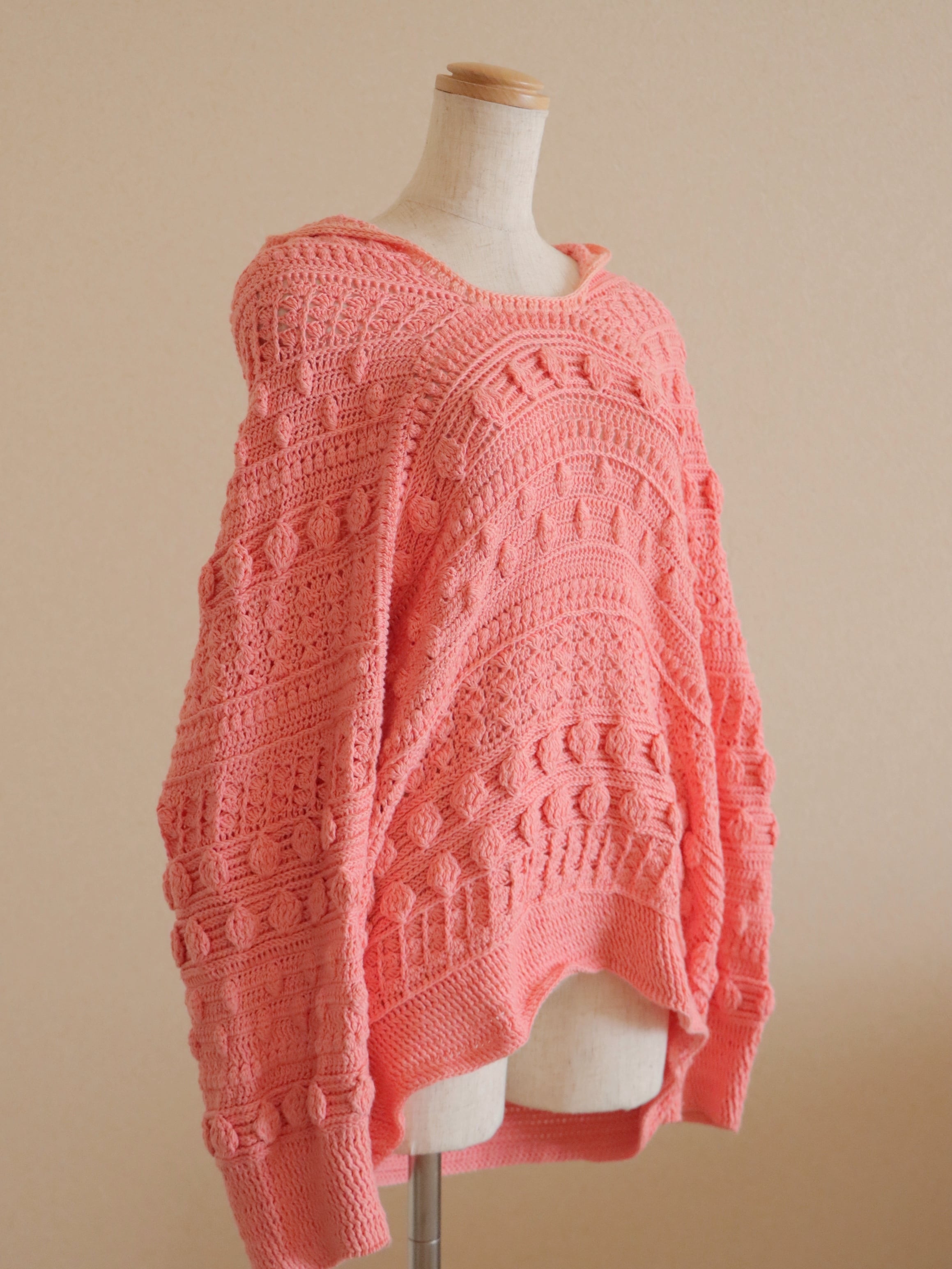 凹凸感のある立体的な編地に、スタイリングの主役になってくれる色味が可愛い1着。