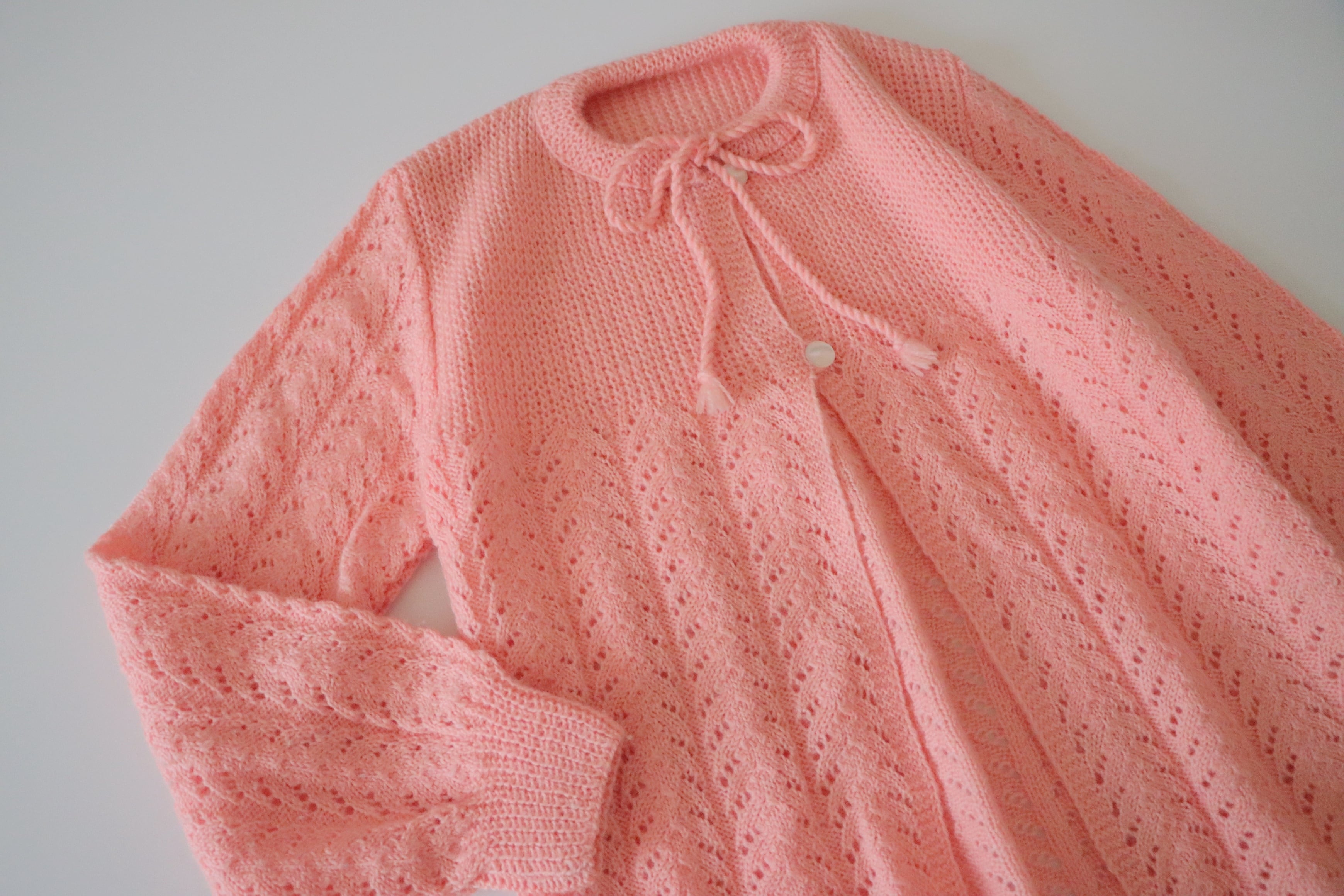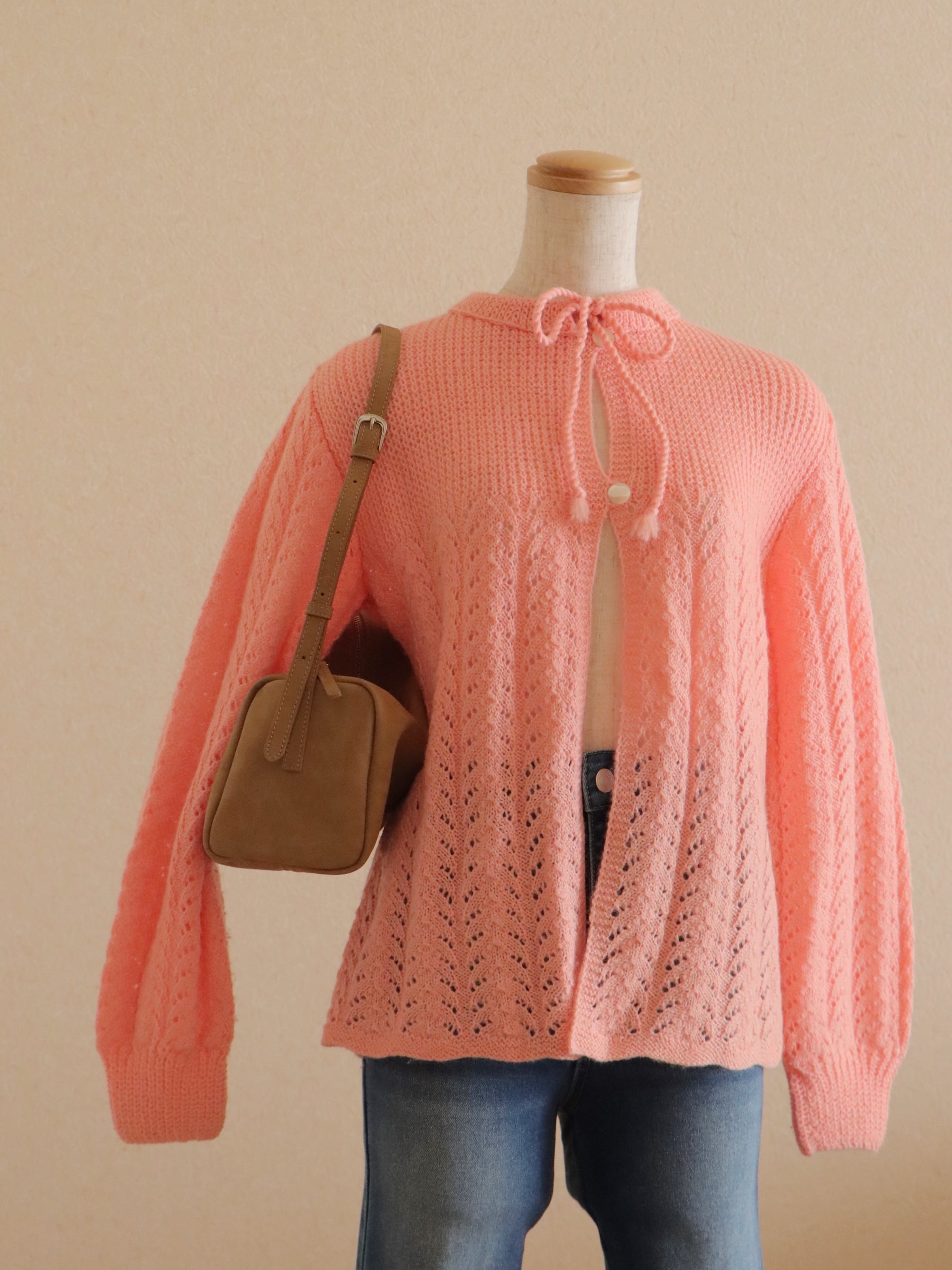 優しいコーラルピンク系の色味が可愛い、スタイリングの主役になってくれる1着です。