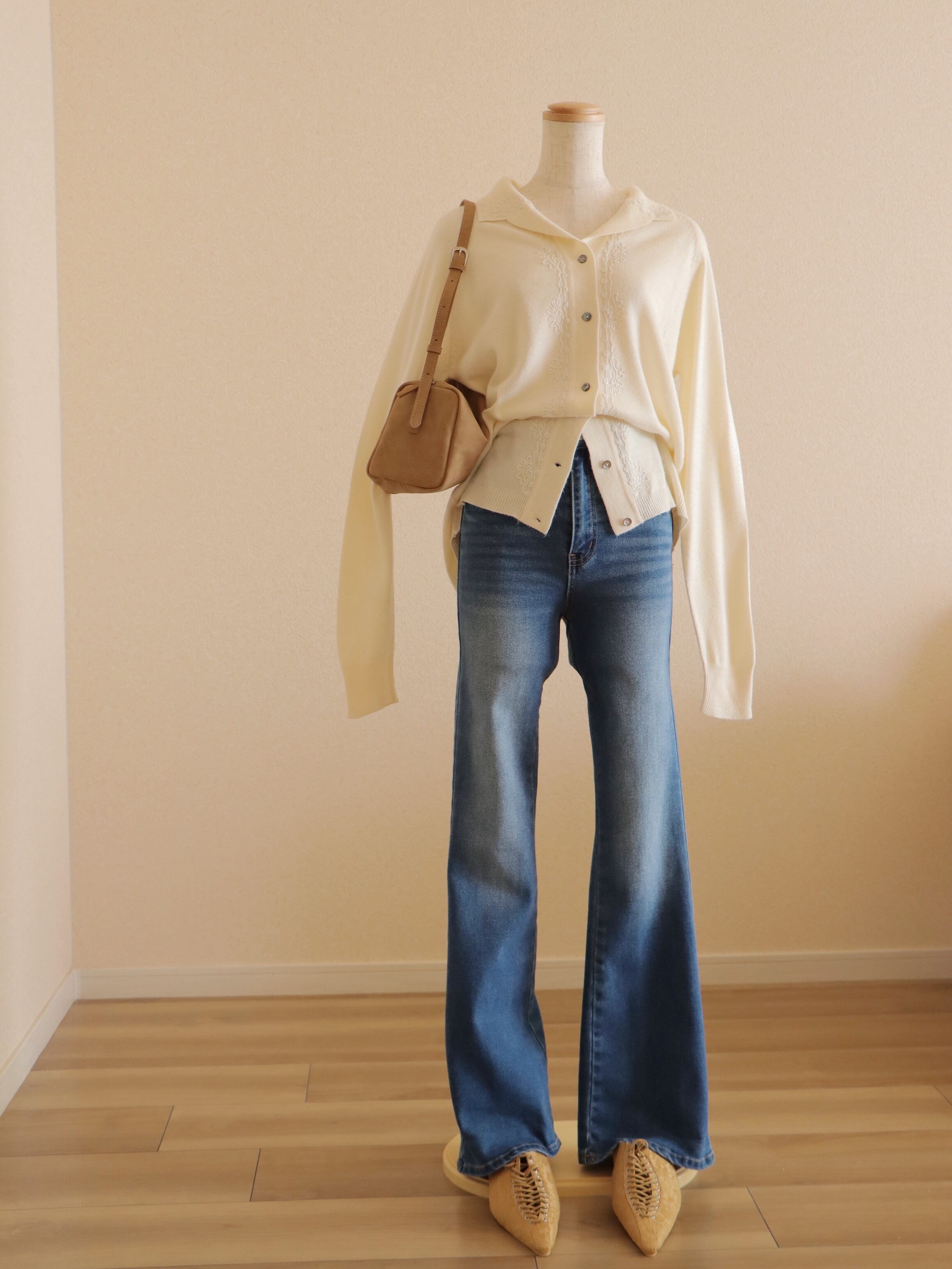 控えめな刺繍と淡く優しい色味で他のアイテムとも合わせやすい、秋口から長くご愛用いただける1着です。