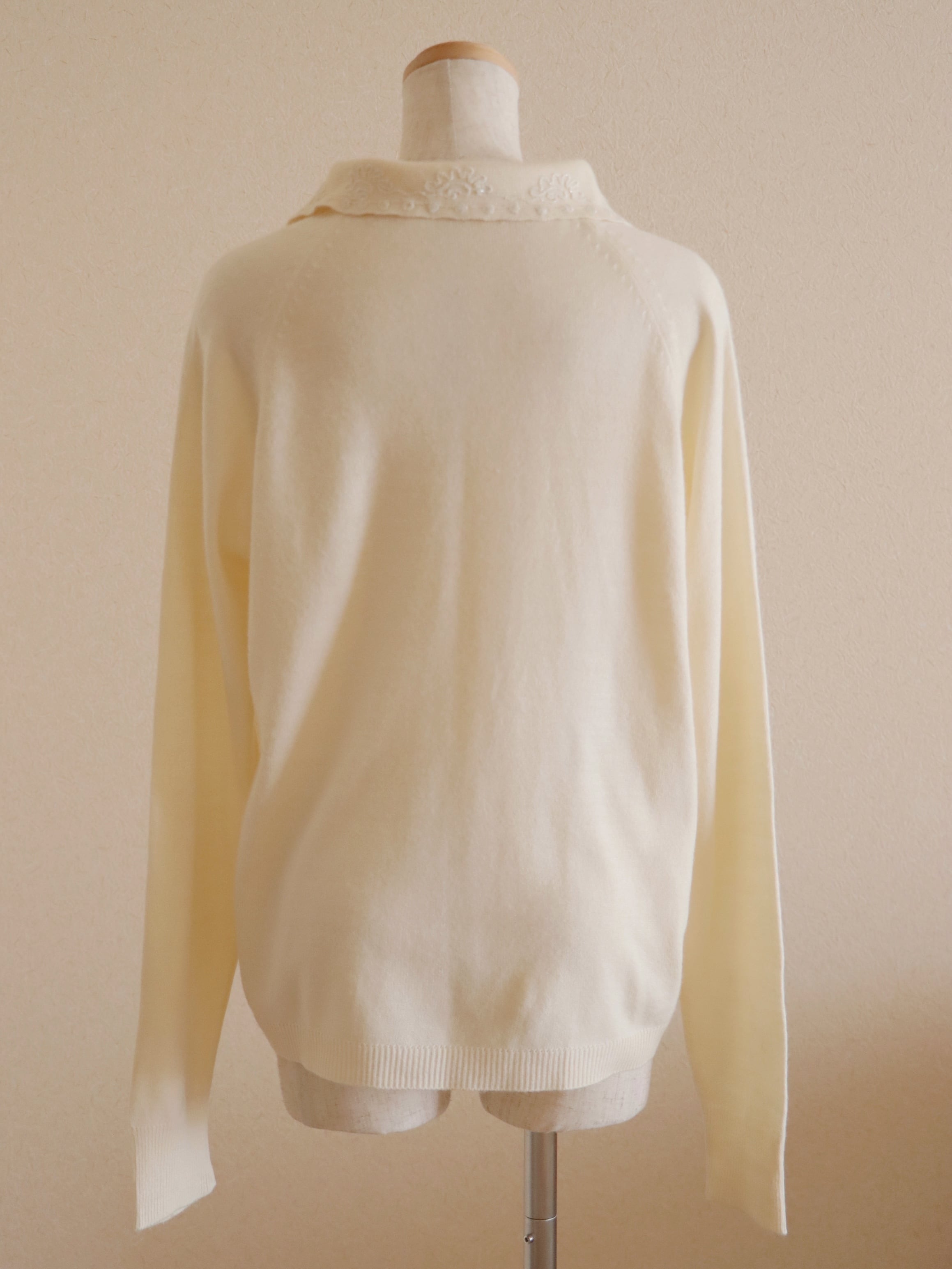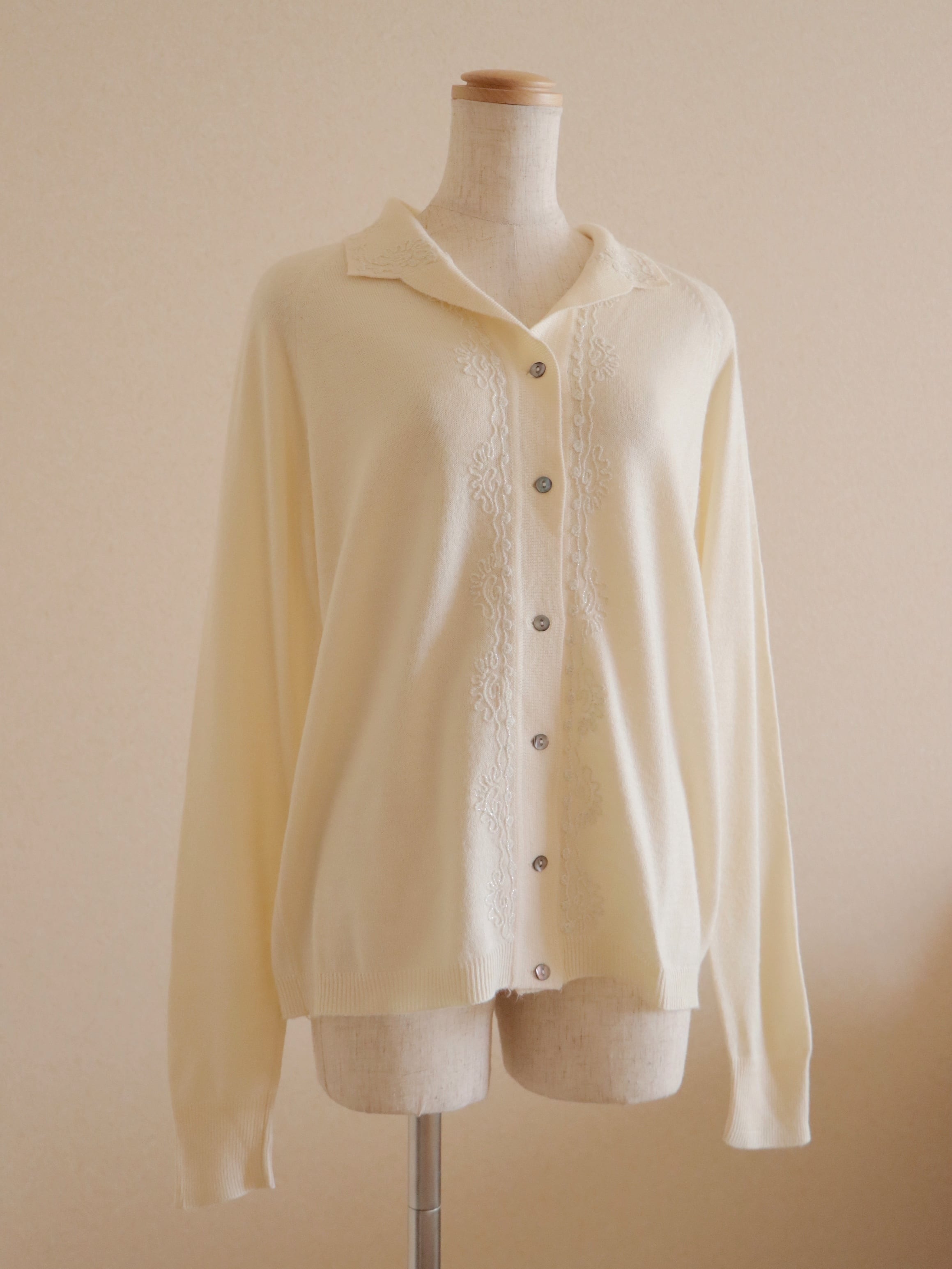 ●embroidery collared design knitted cardigan(ivory).