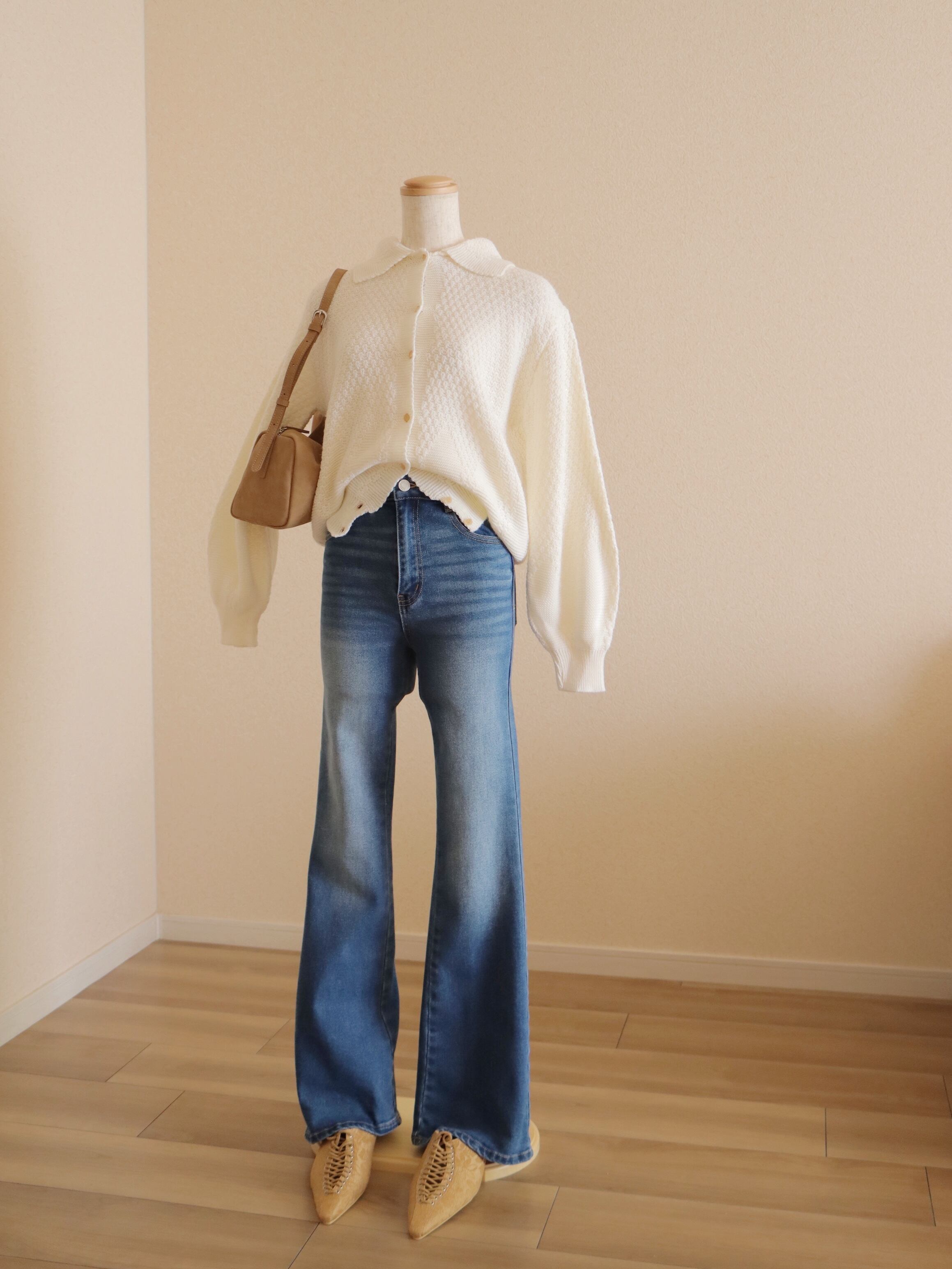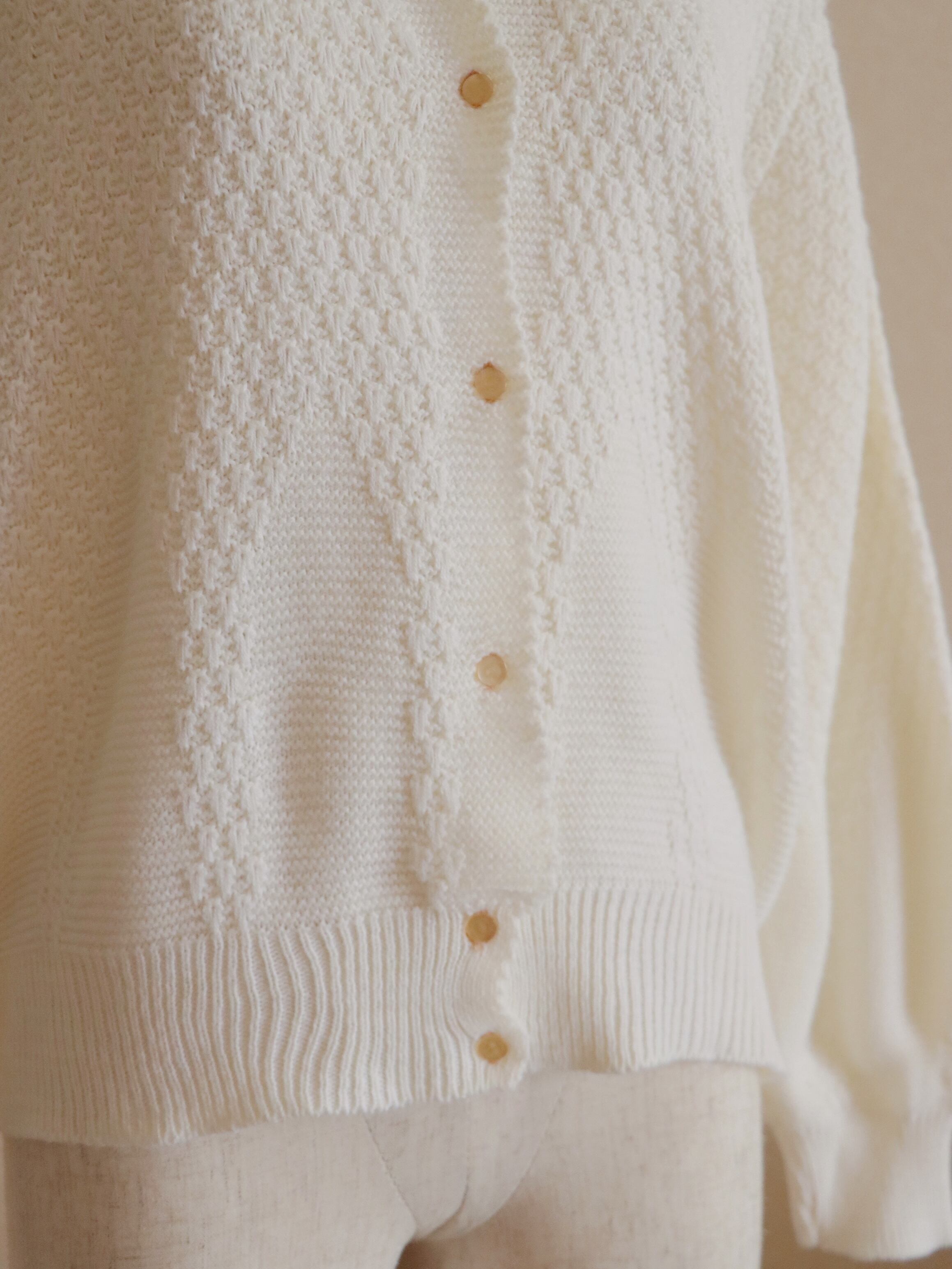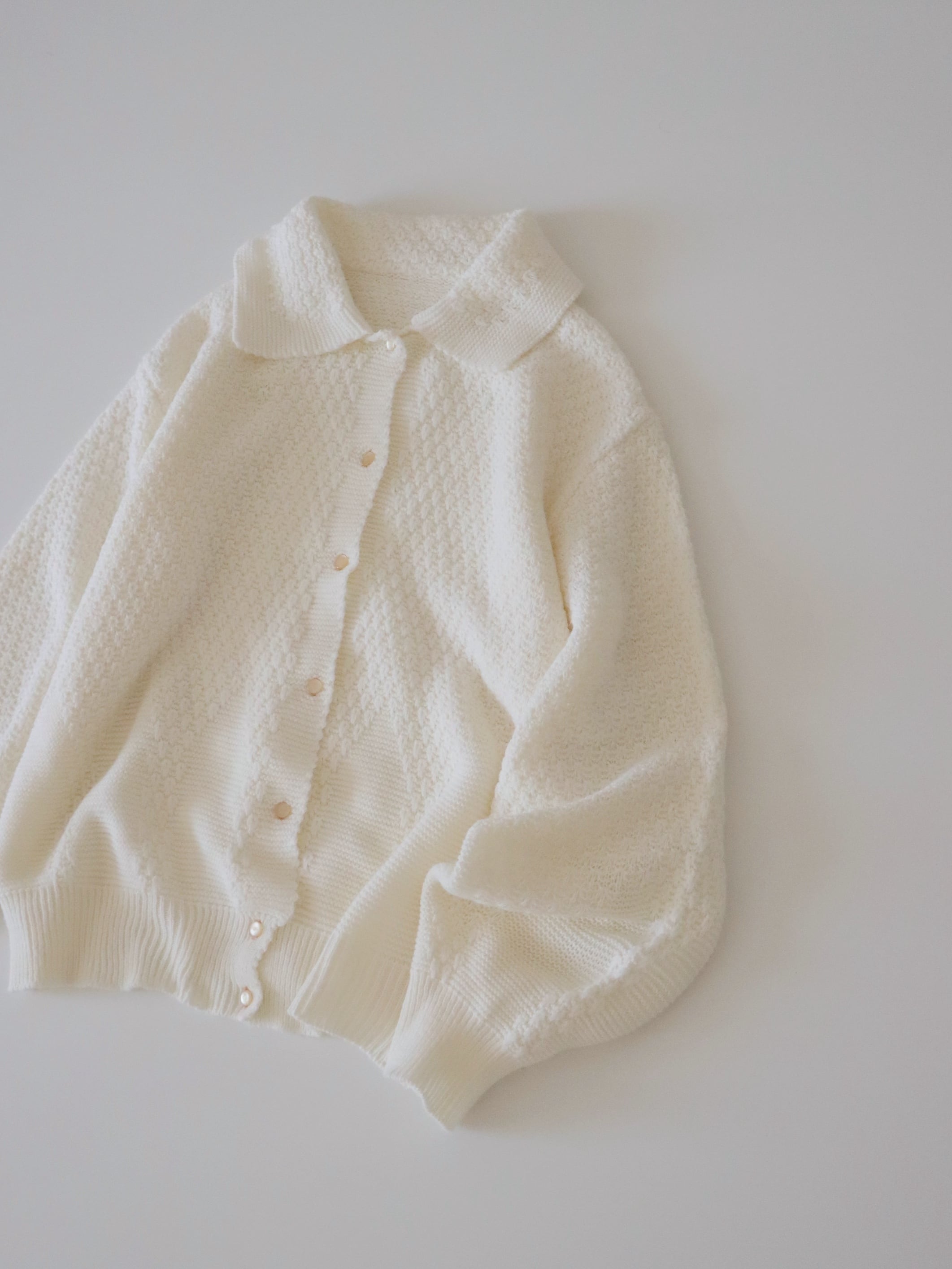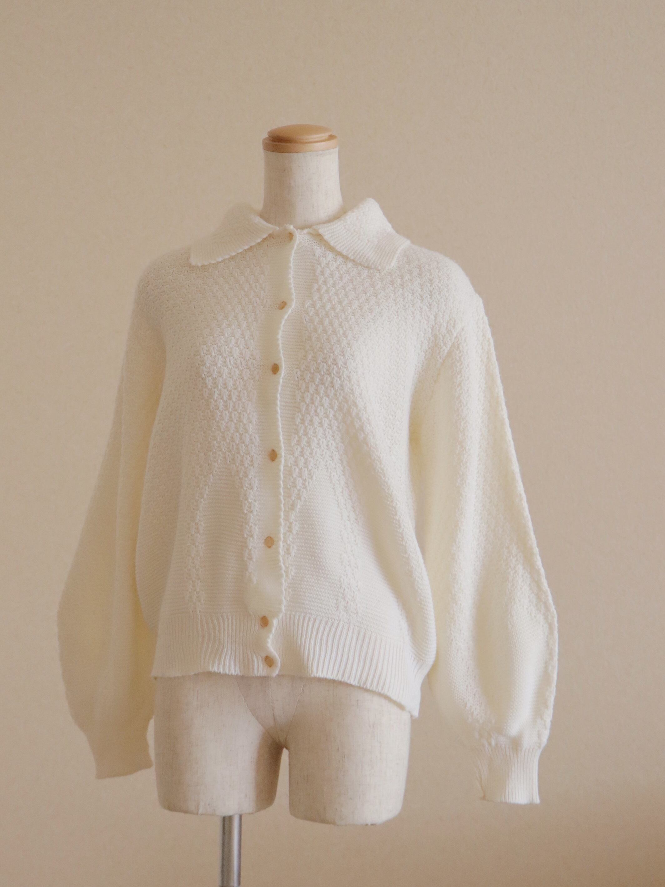 ふんわりとしたお袖が可愛いジャガード編みニットカーディガン。