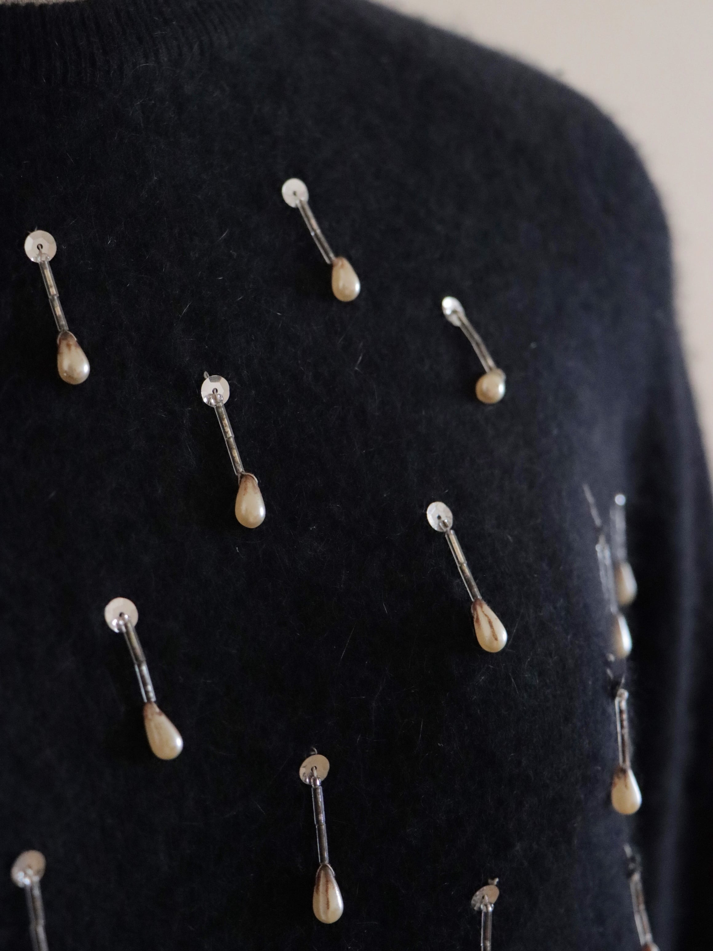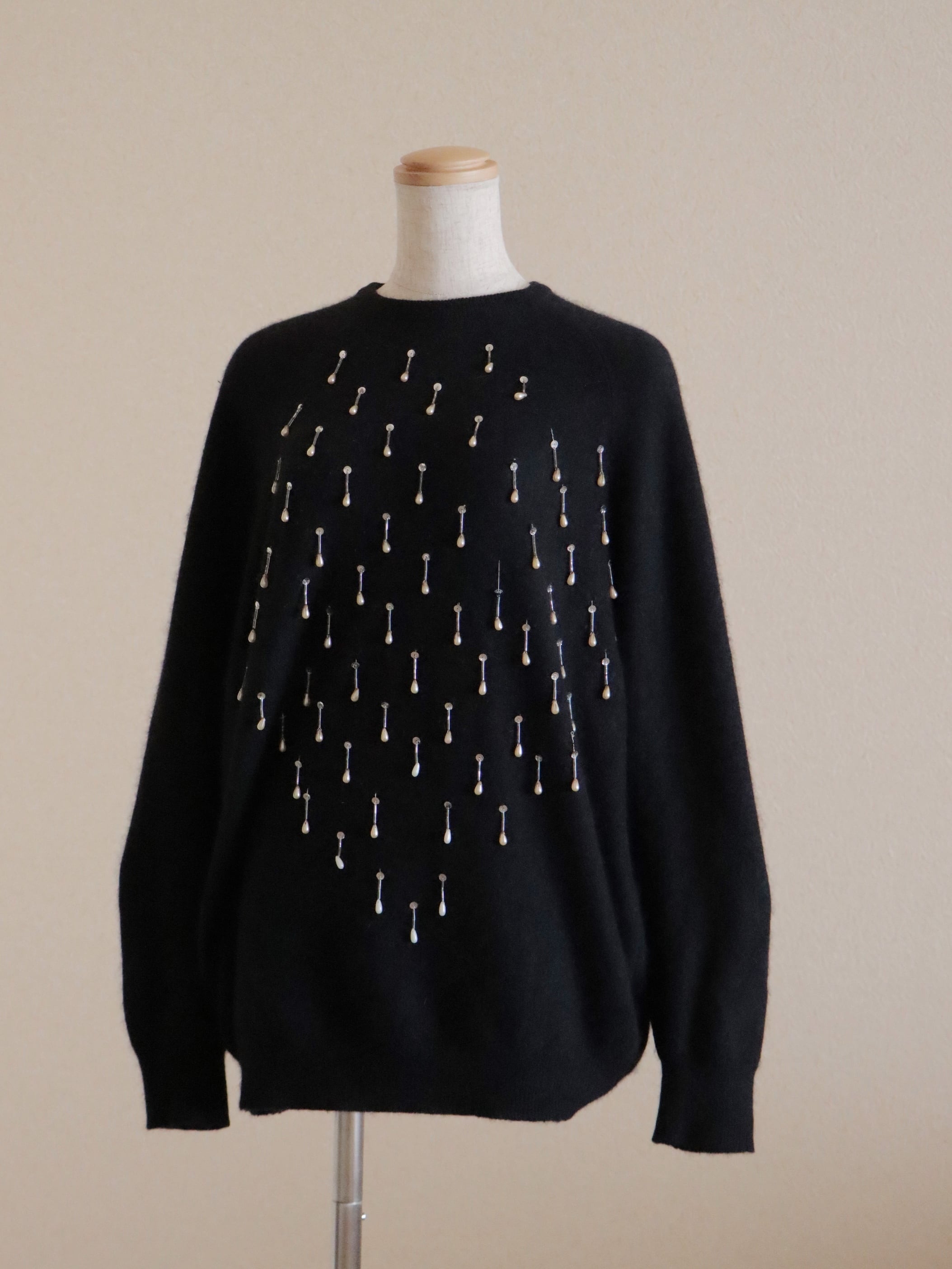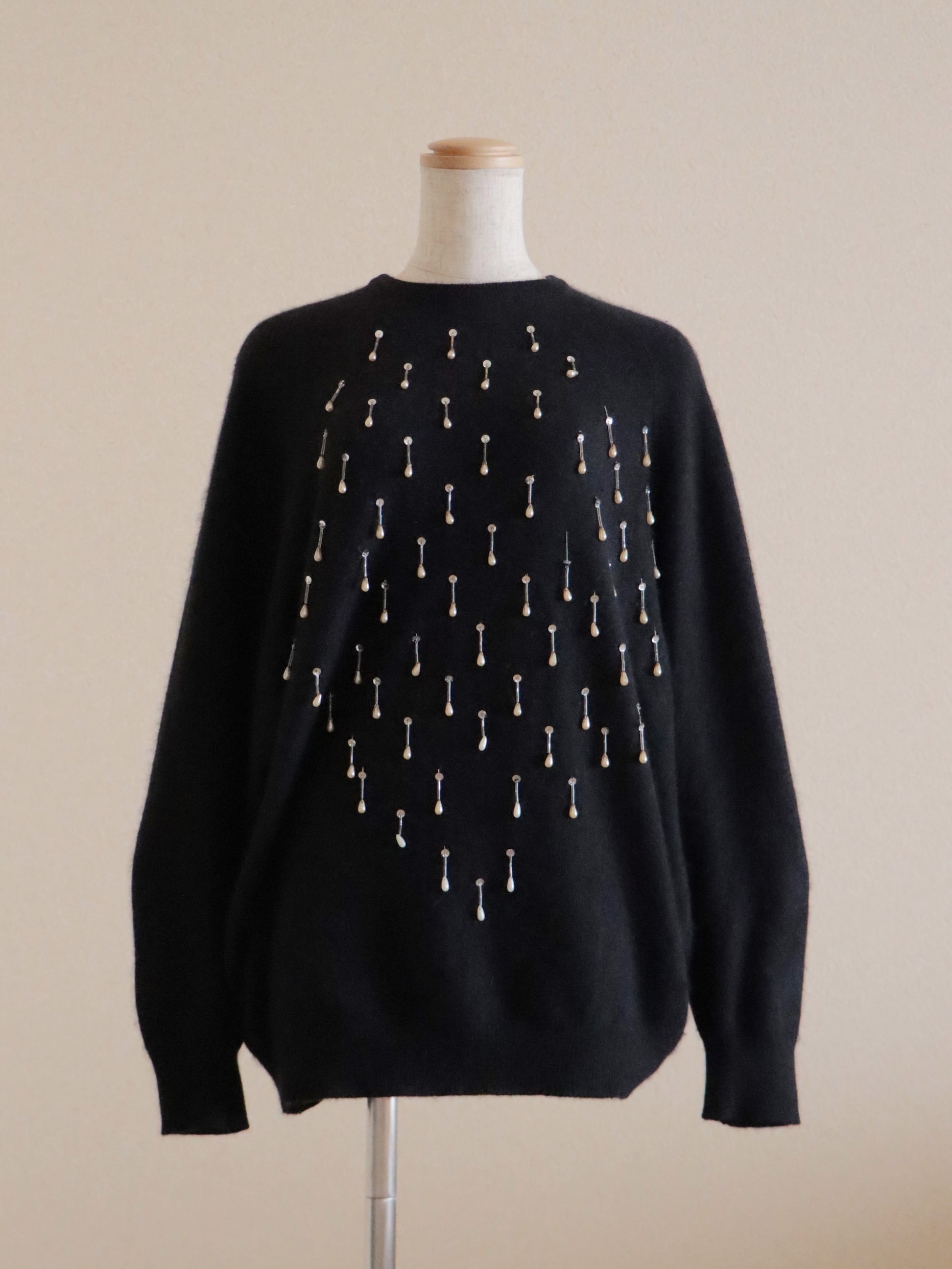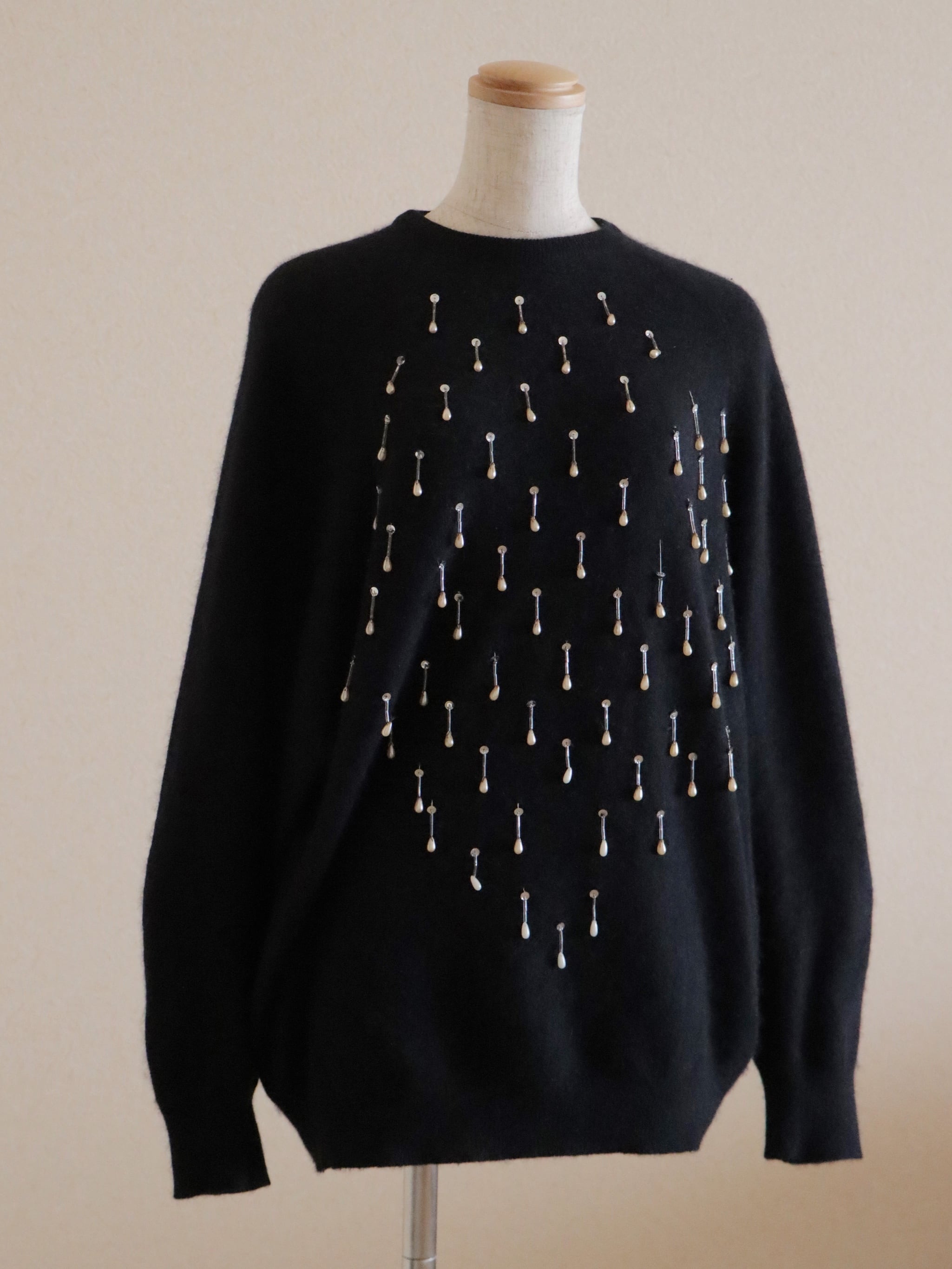 涙形の立体的なパールが繊細に施された、高級感溢れるアイテムです。