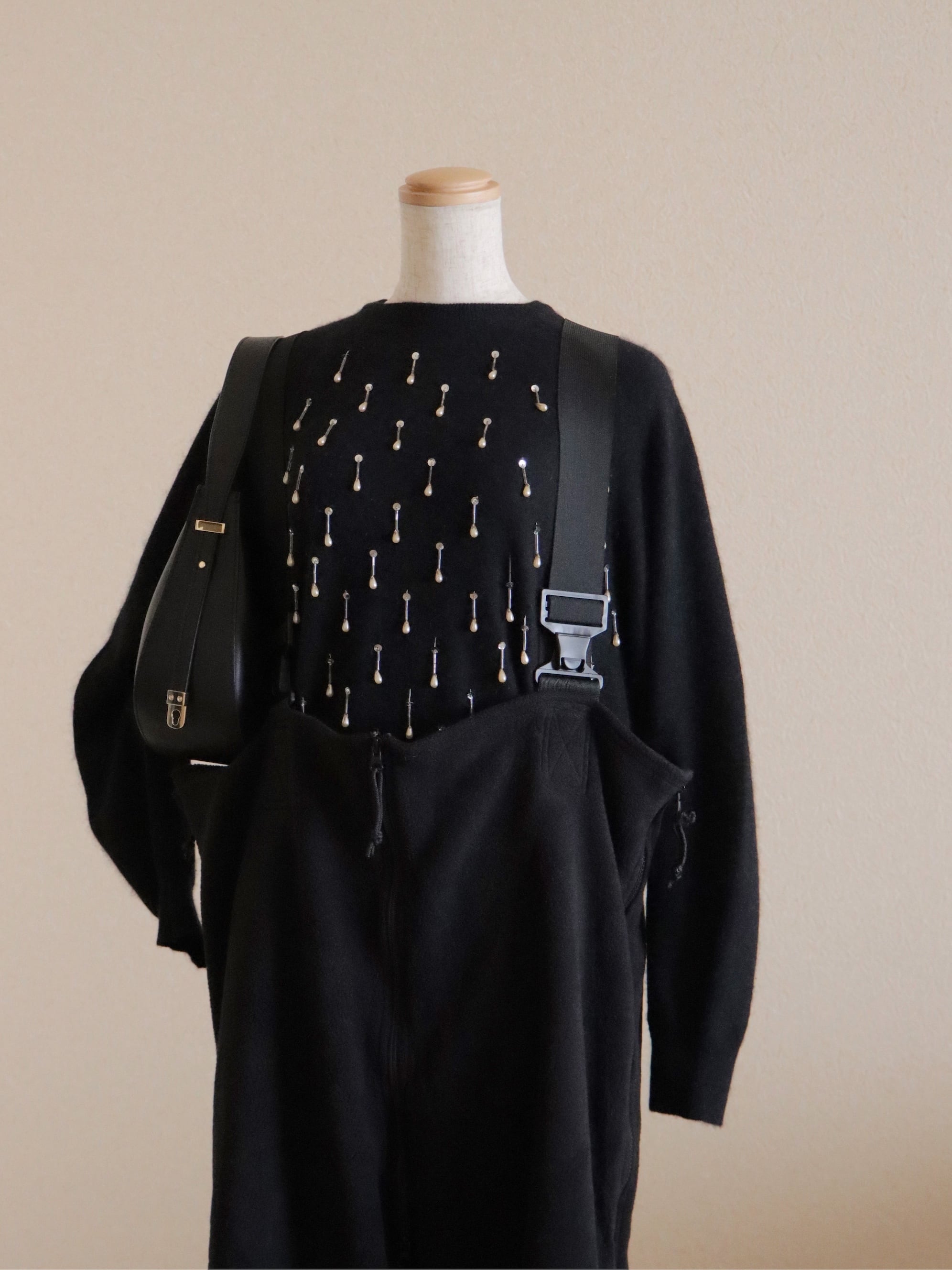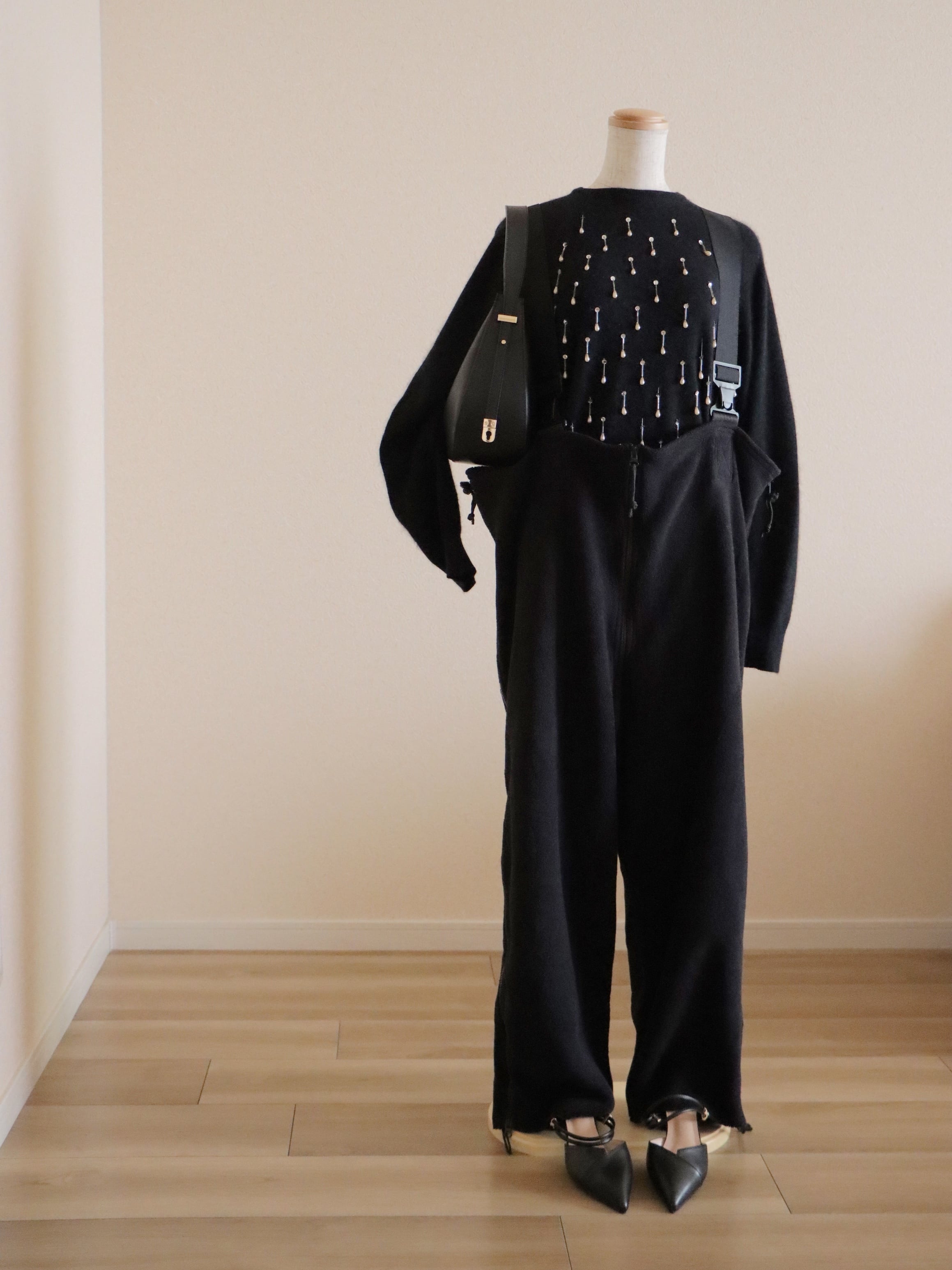 ゆったりリラックス感のあるシルエットと定番カラーのブラックで、甘くなりすぎず大人の上品さがございます。