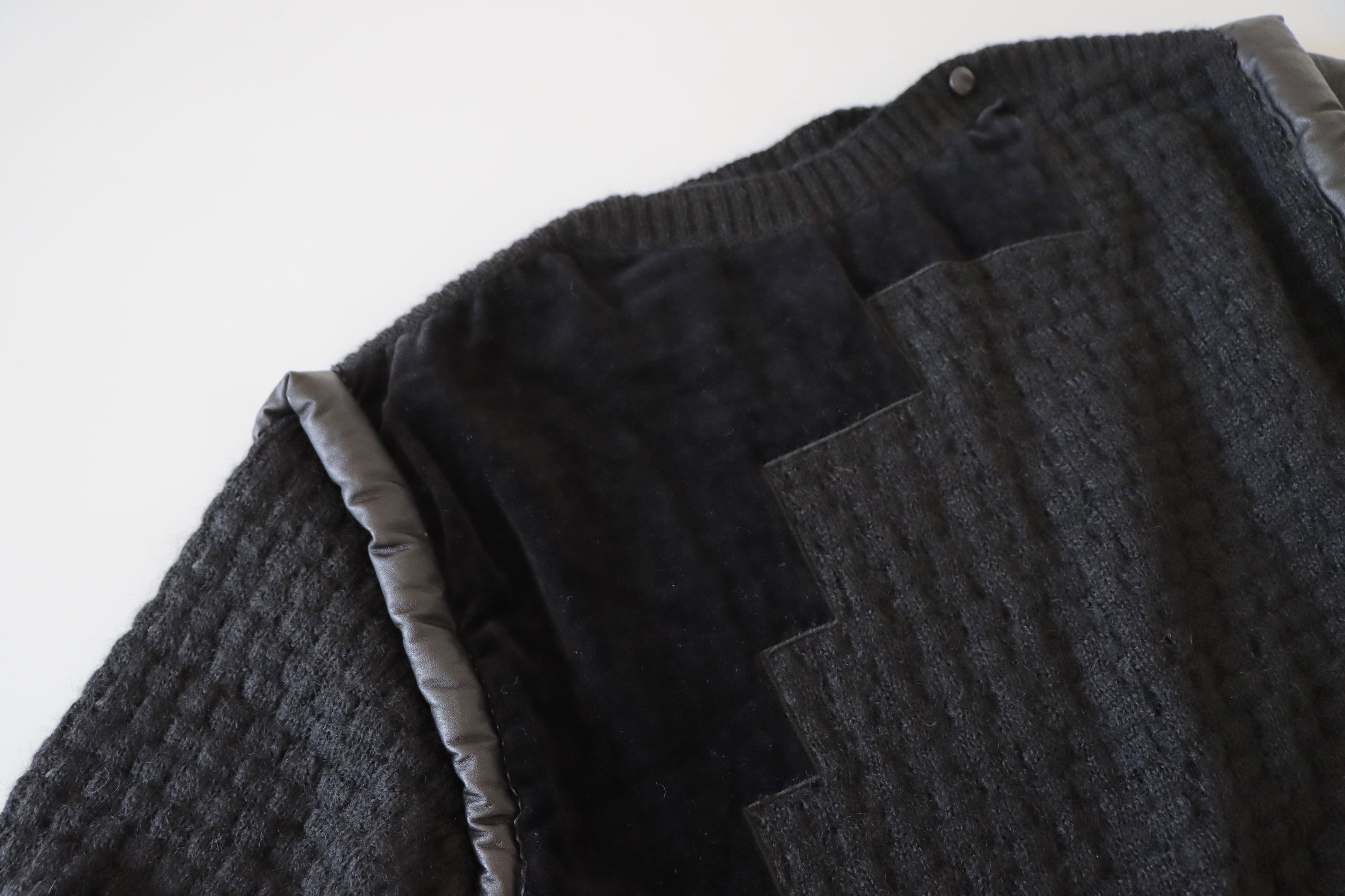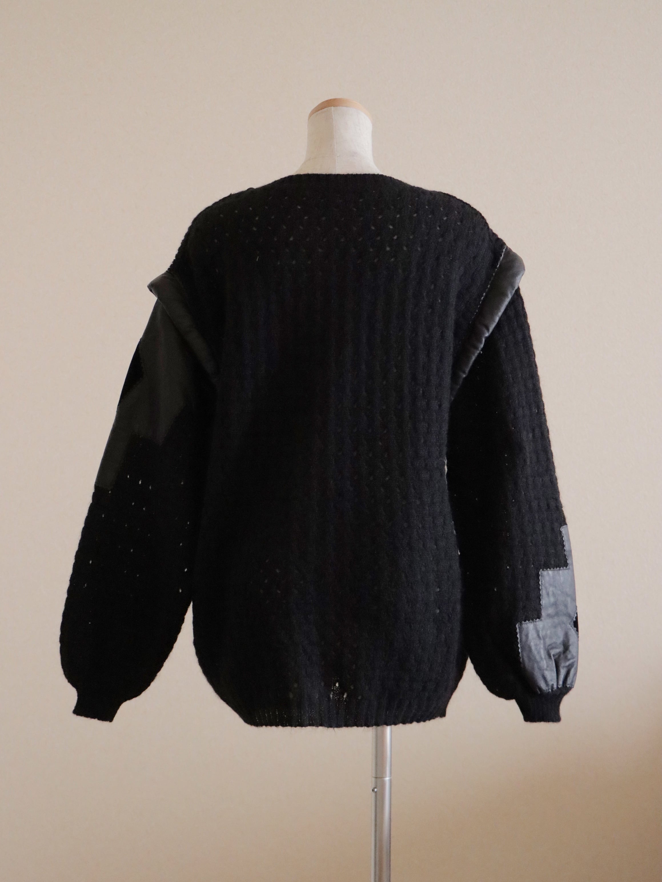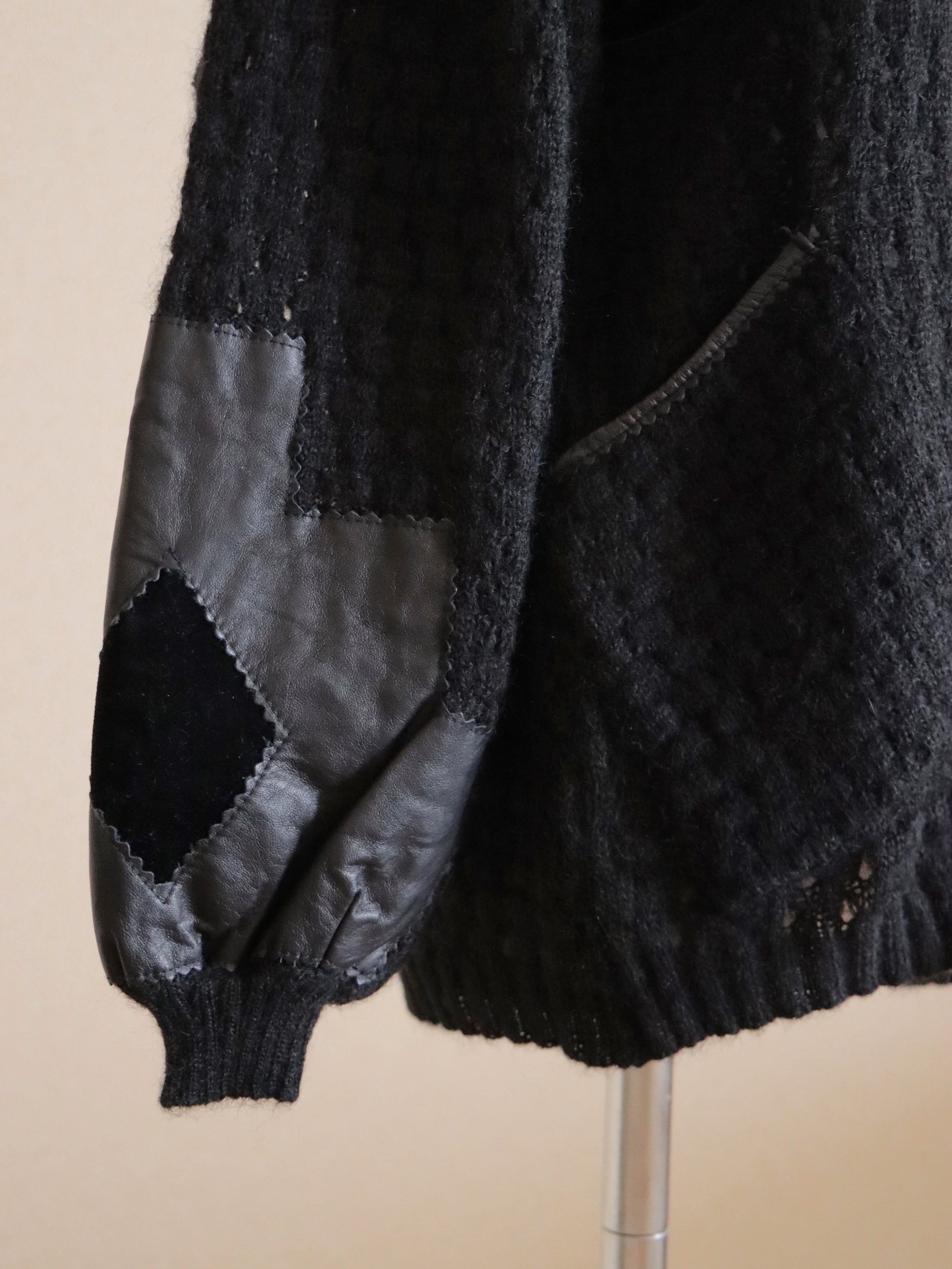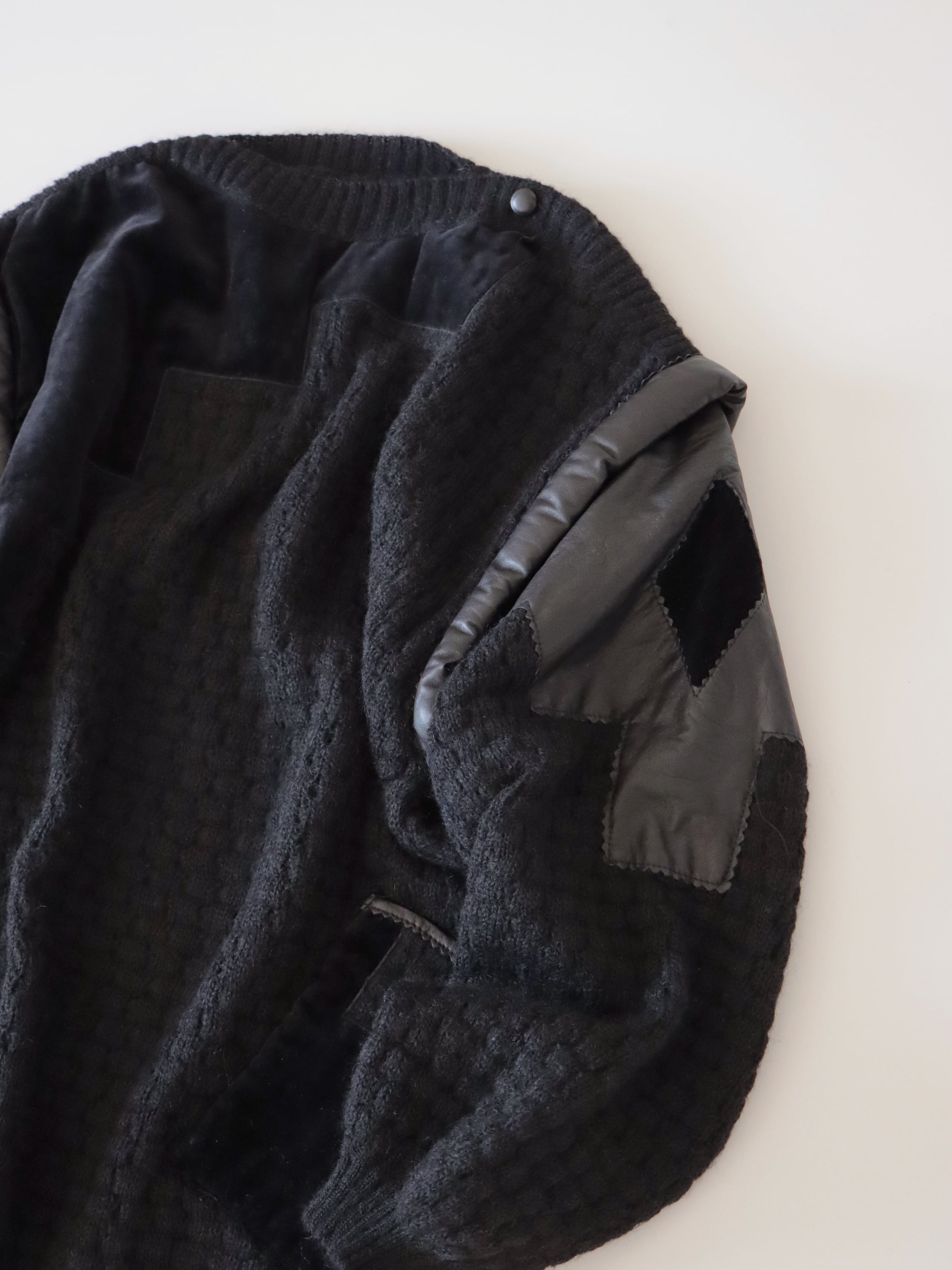 ●Kid mohair & leather & velour patchwork design pocket detail sweater.