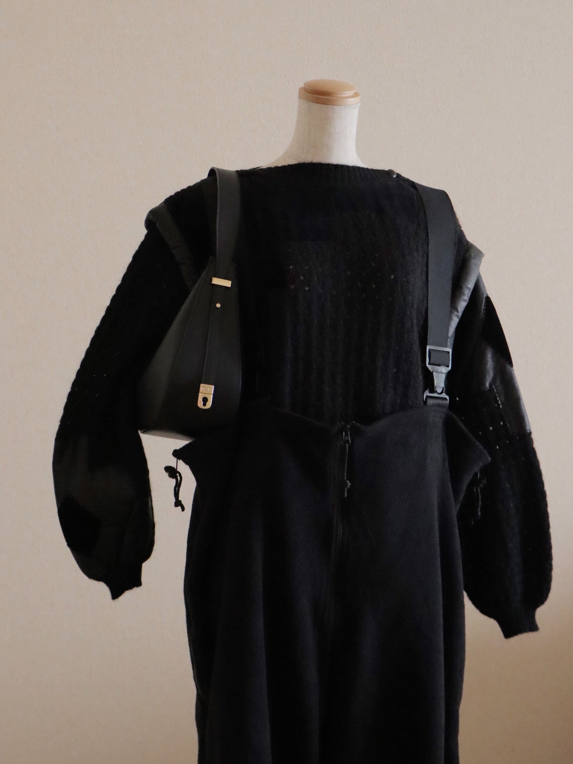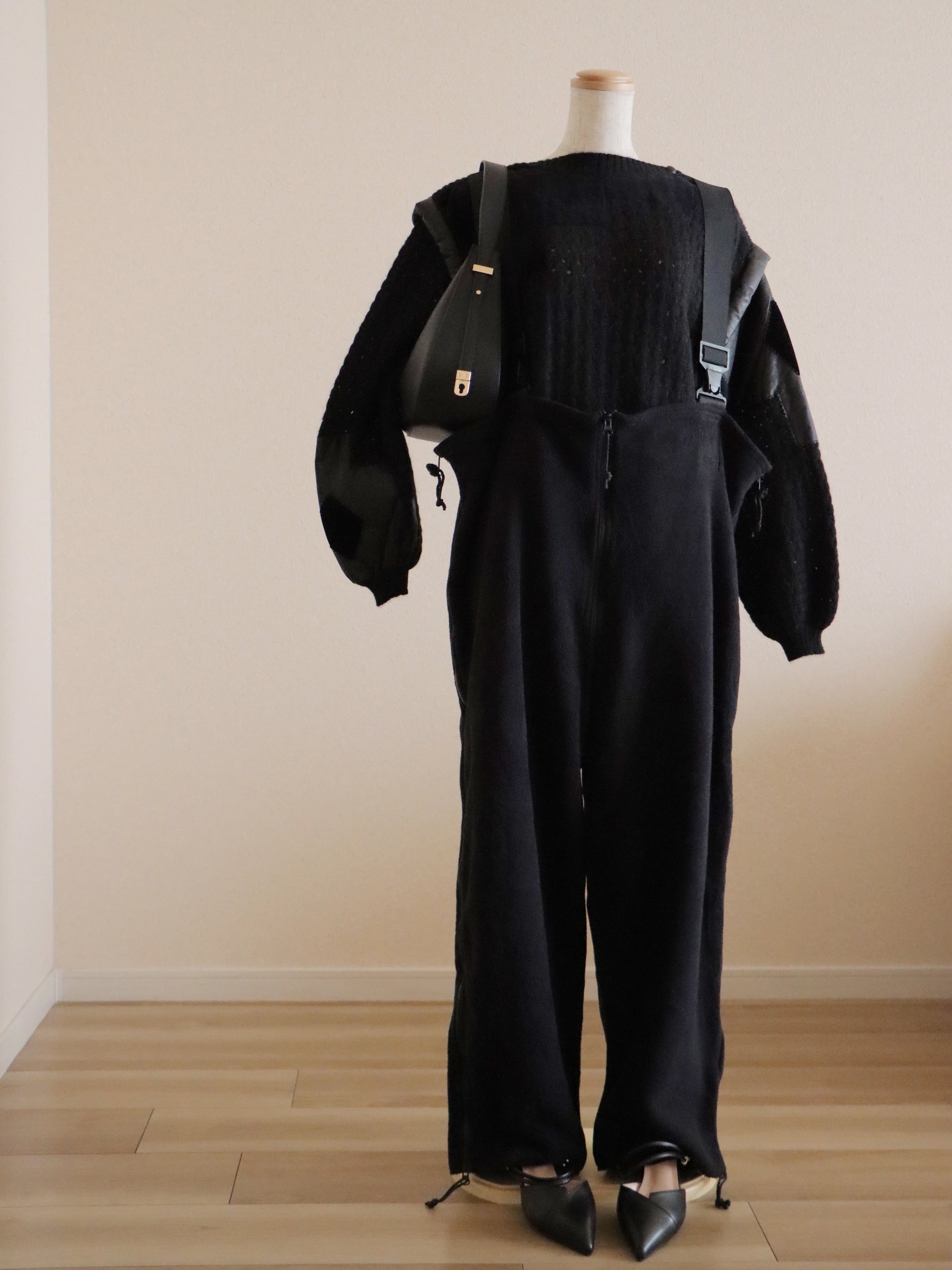 遊び心のあるディテールですが、落ち着いたブラックの色味で統一されているので大人な印象に◎