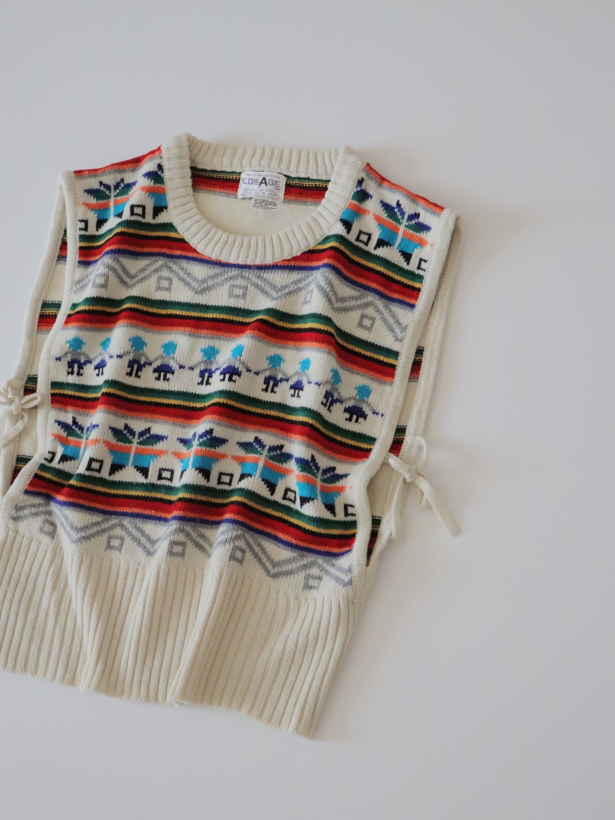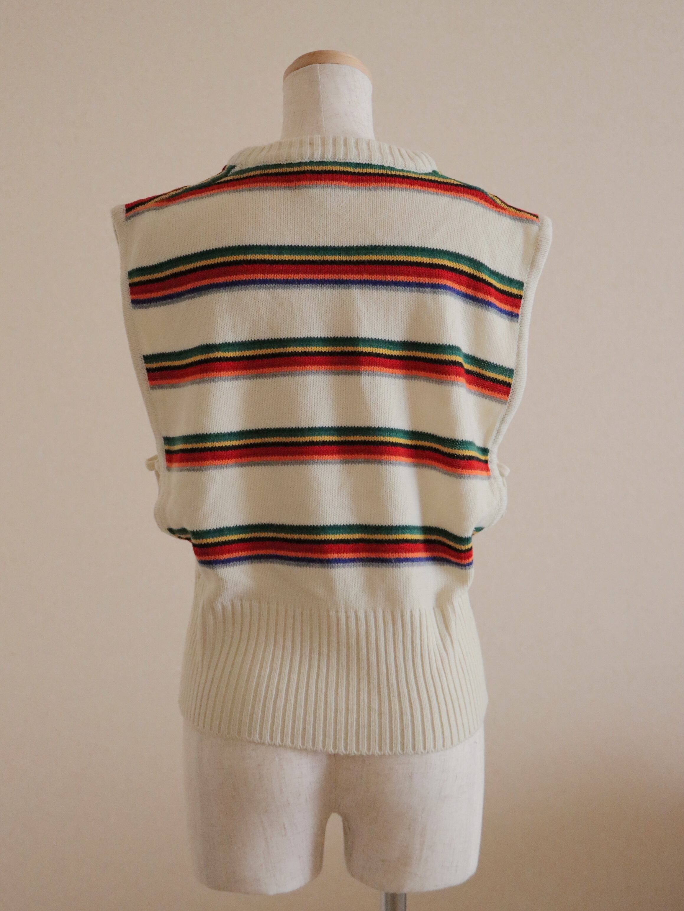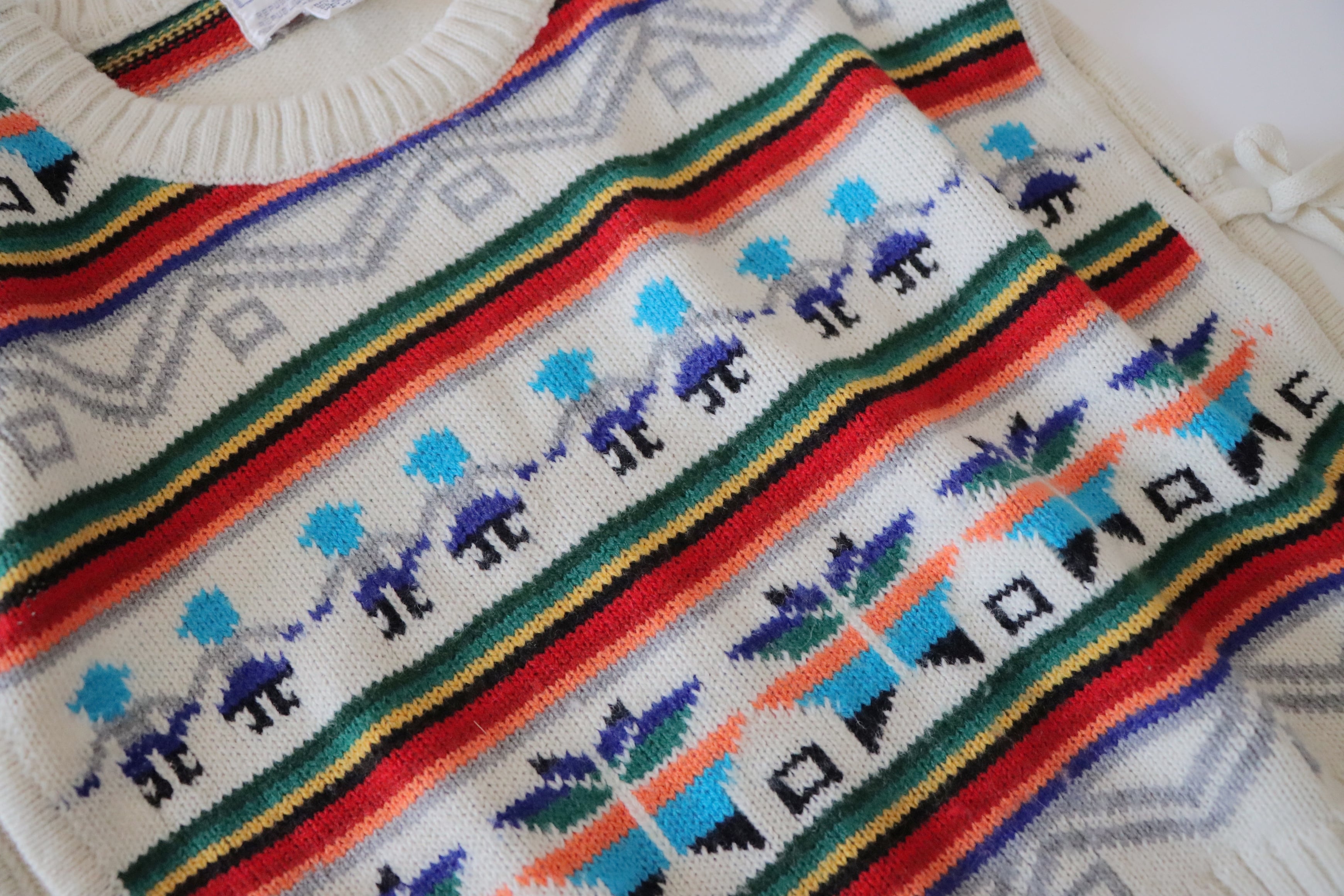 ●80s twin & snowflake jacquard ribbon detail knitted vest.