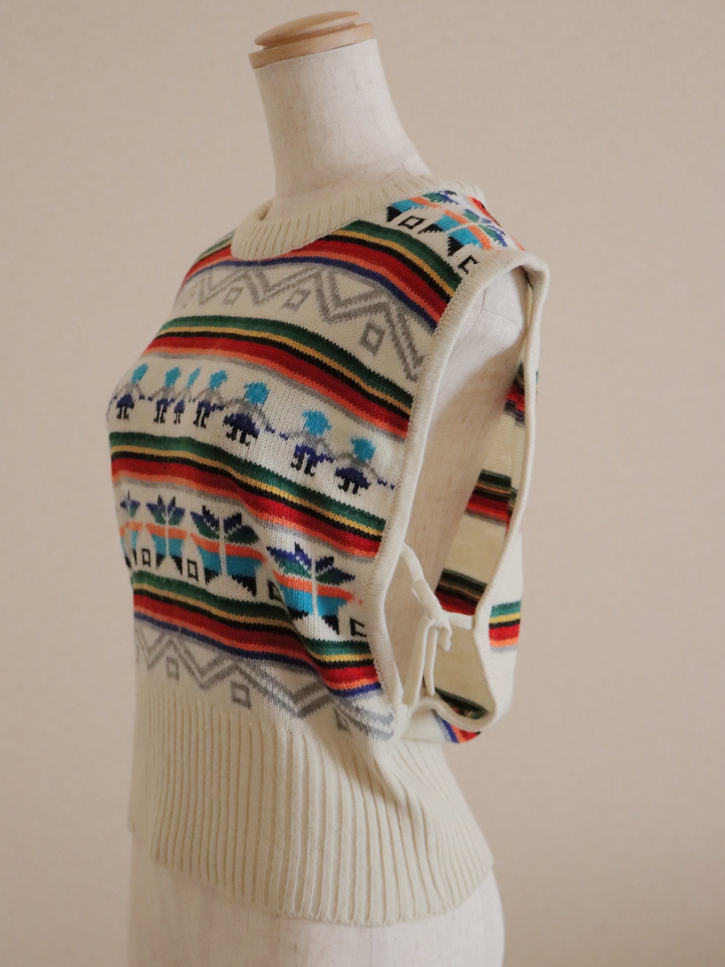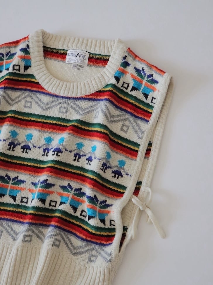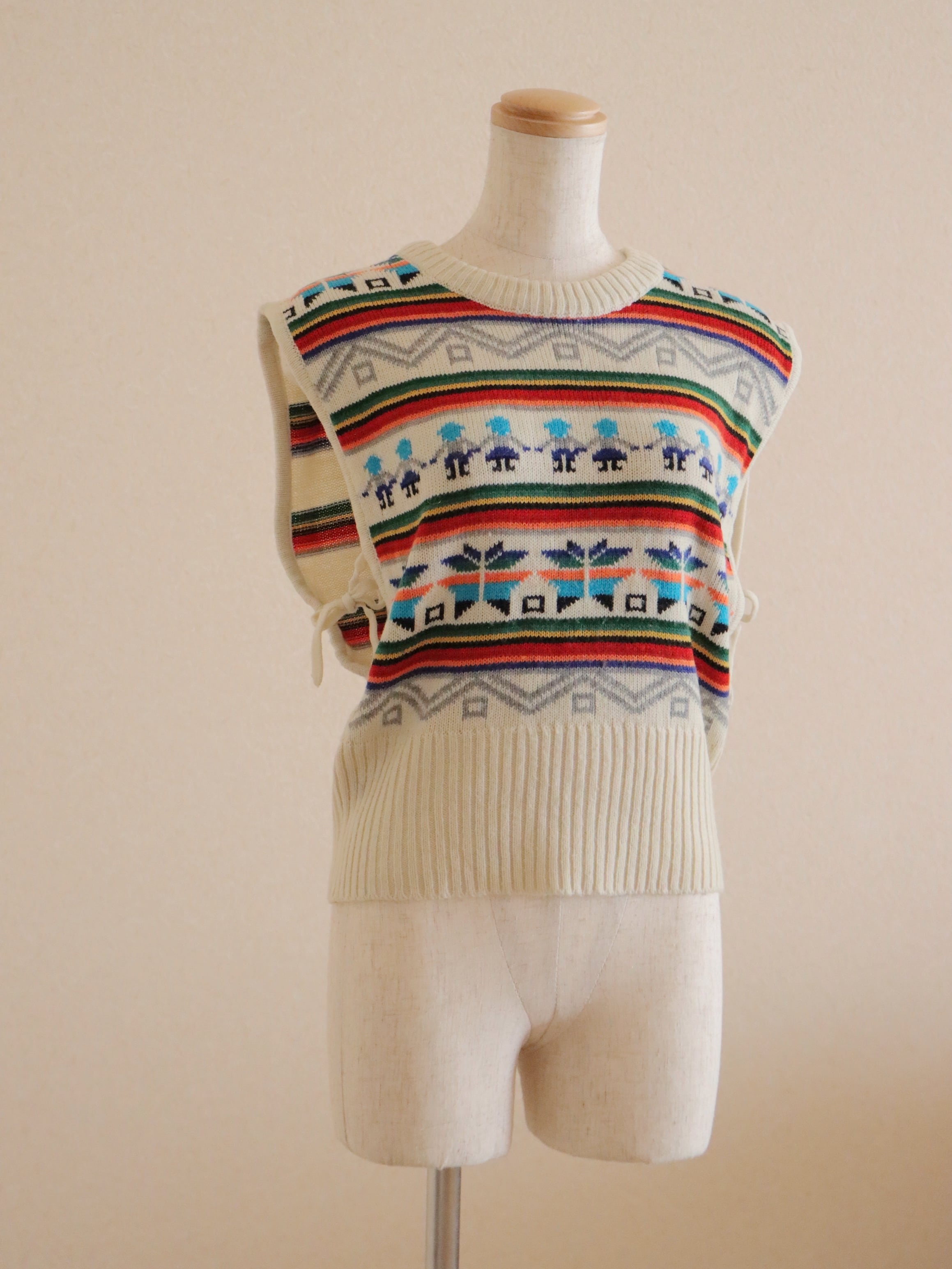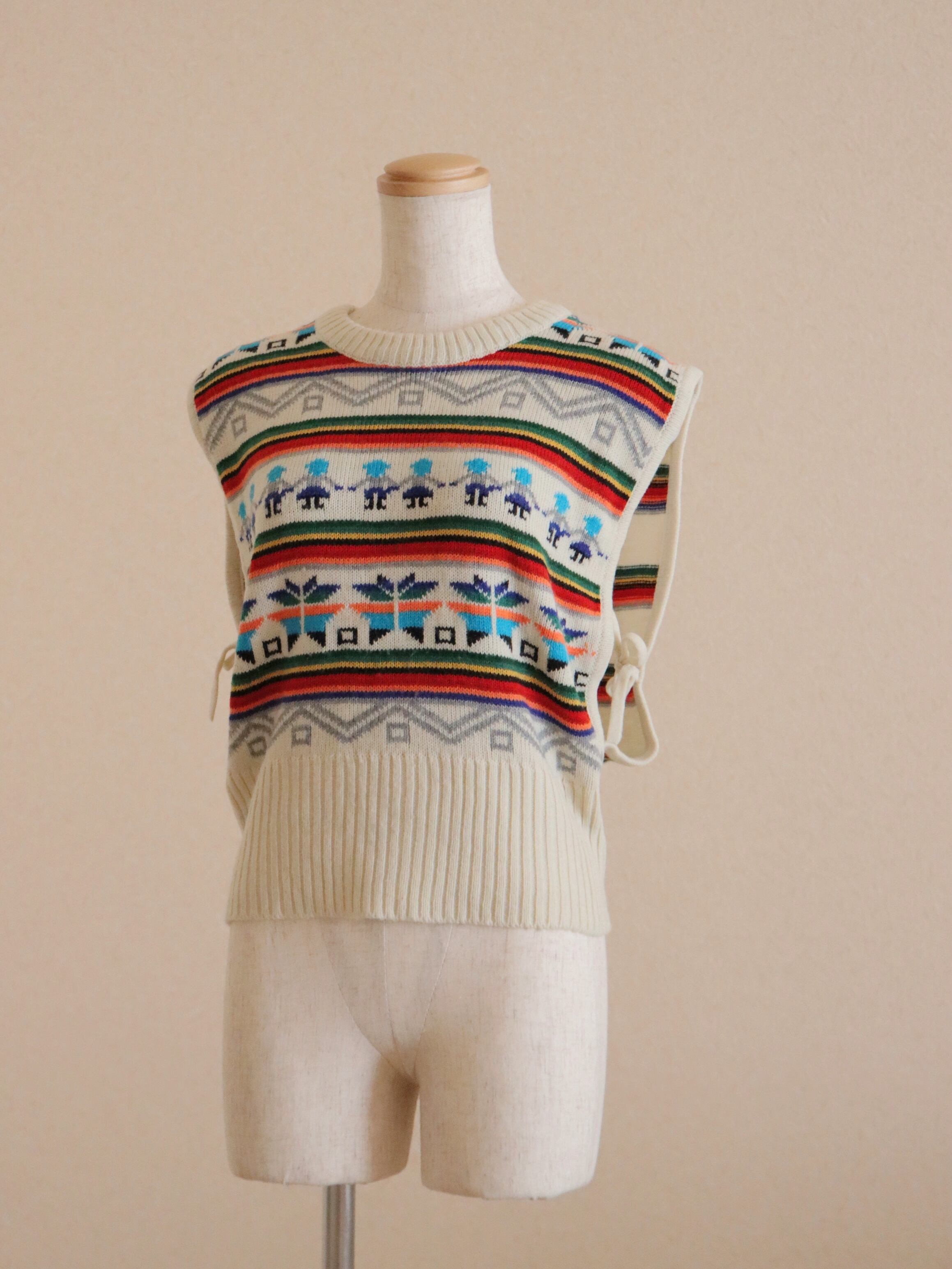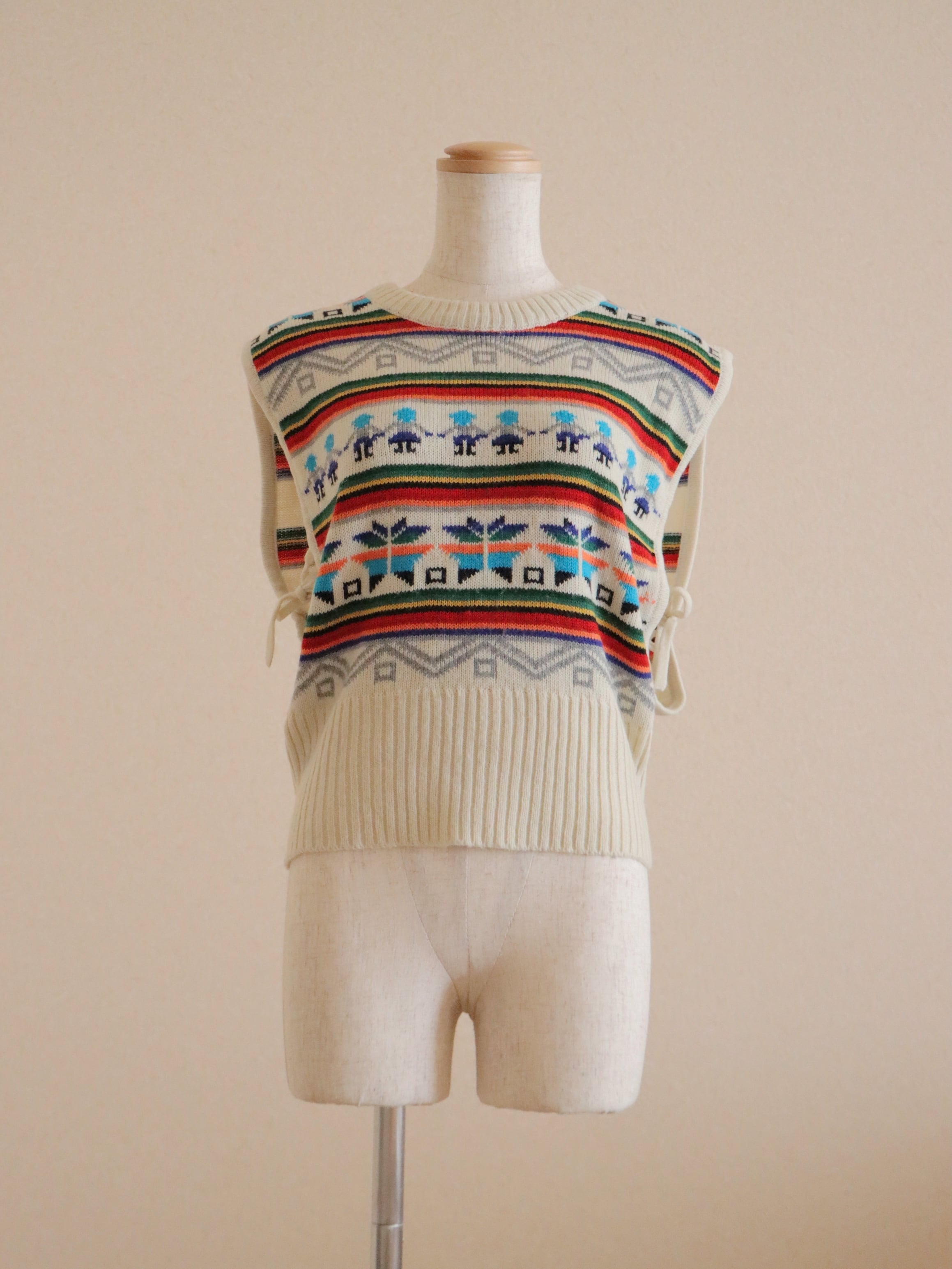 ●80s twin & snowflake jacquard ribbon detail knitted vest