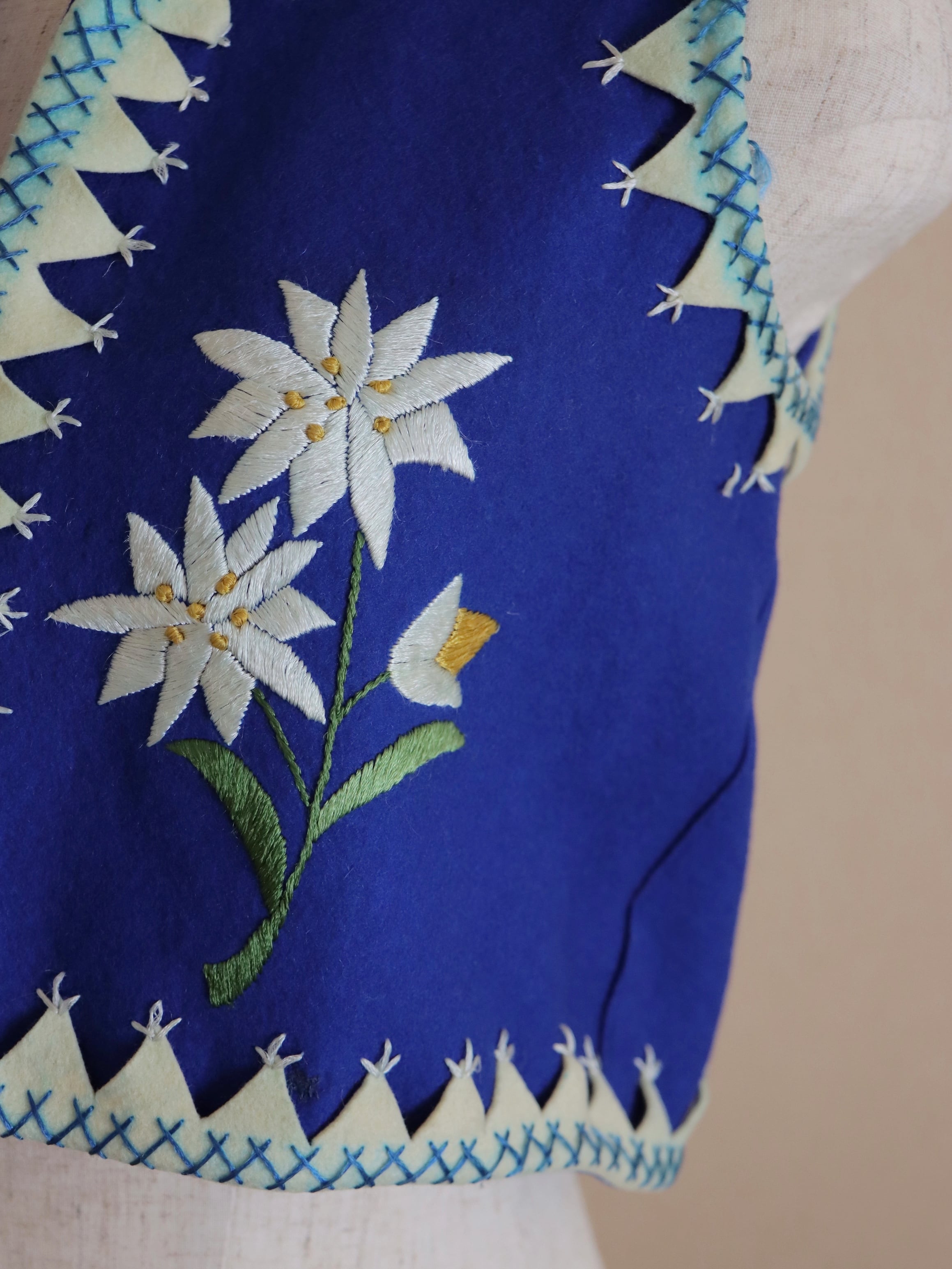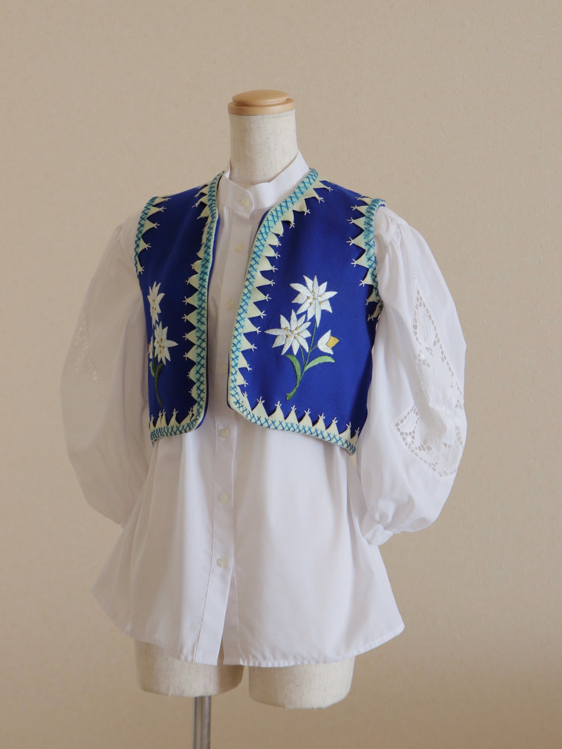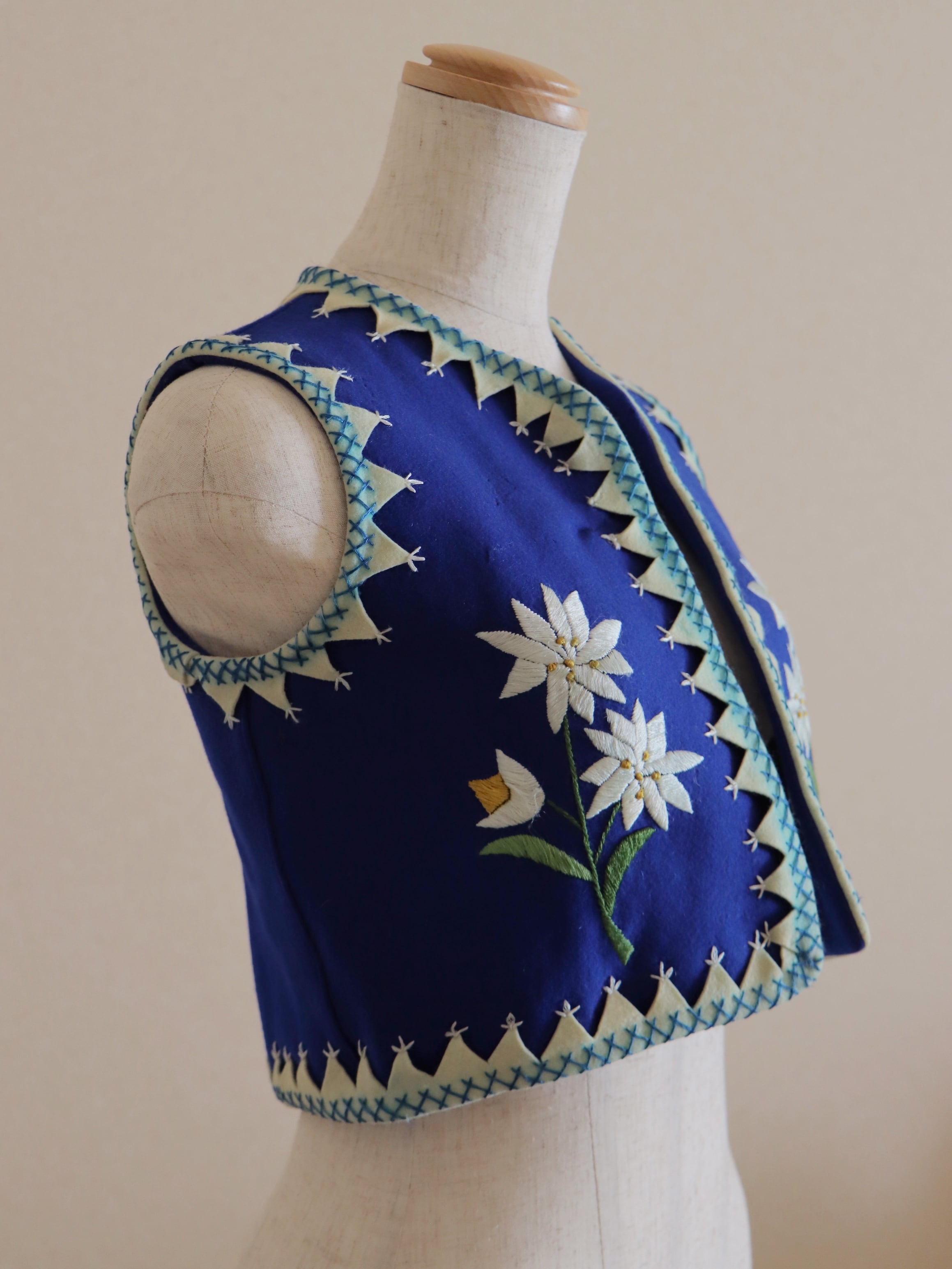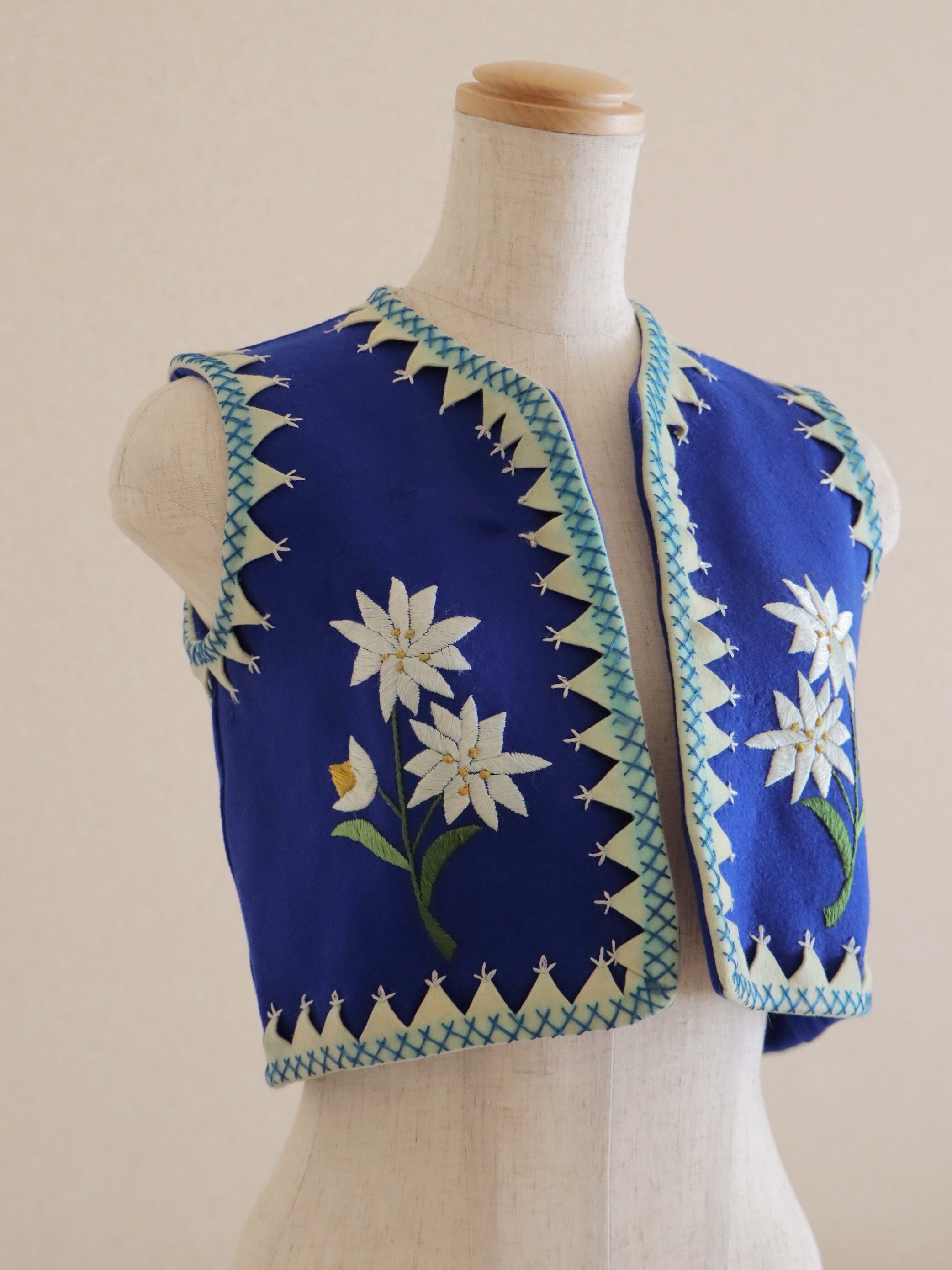 ブラウスやワンピースにプラスすると可愛い、存在感溢れる豪華な刺繍が施されたチロリアンベスト。