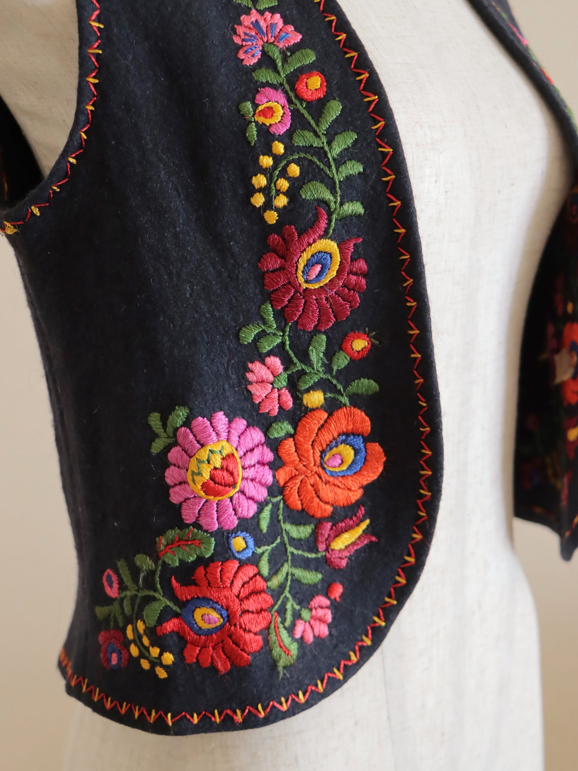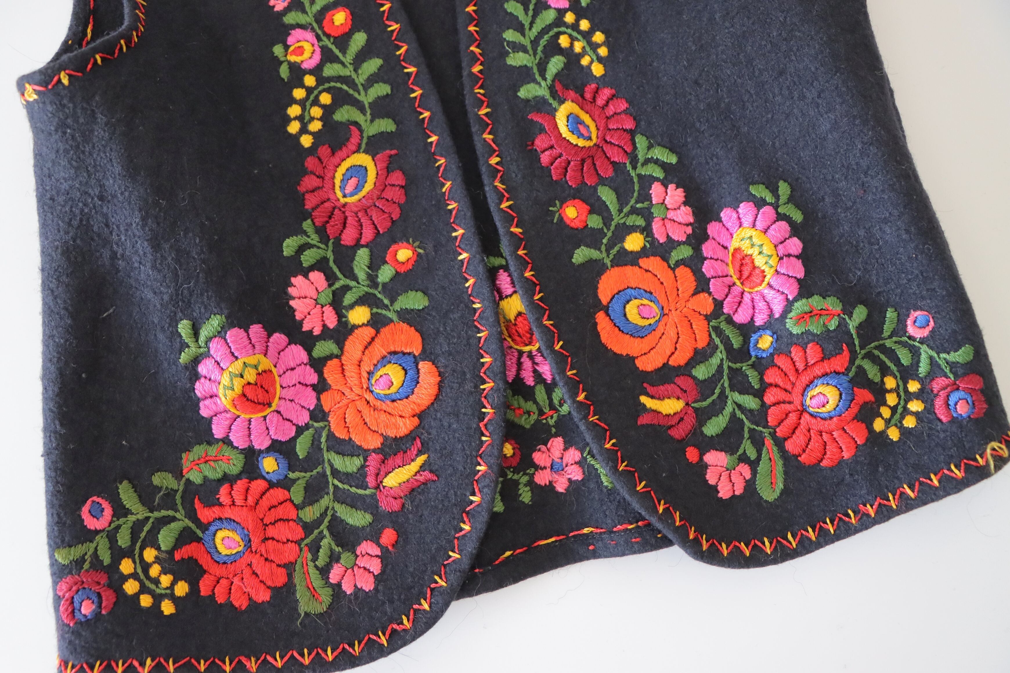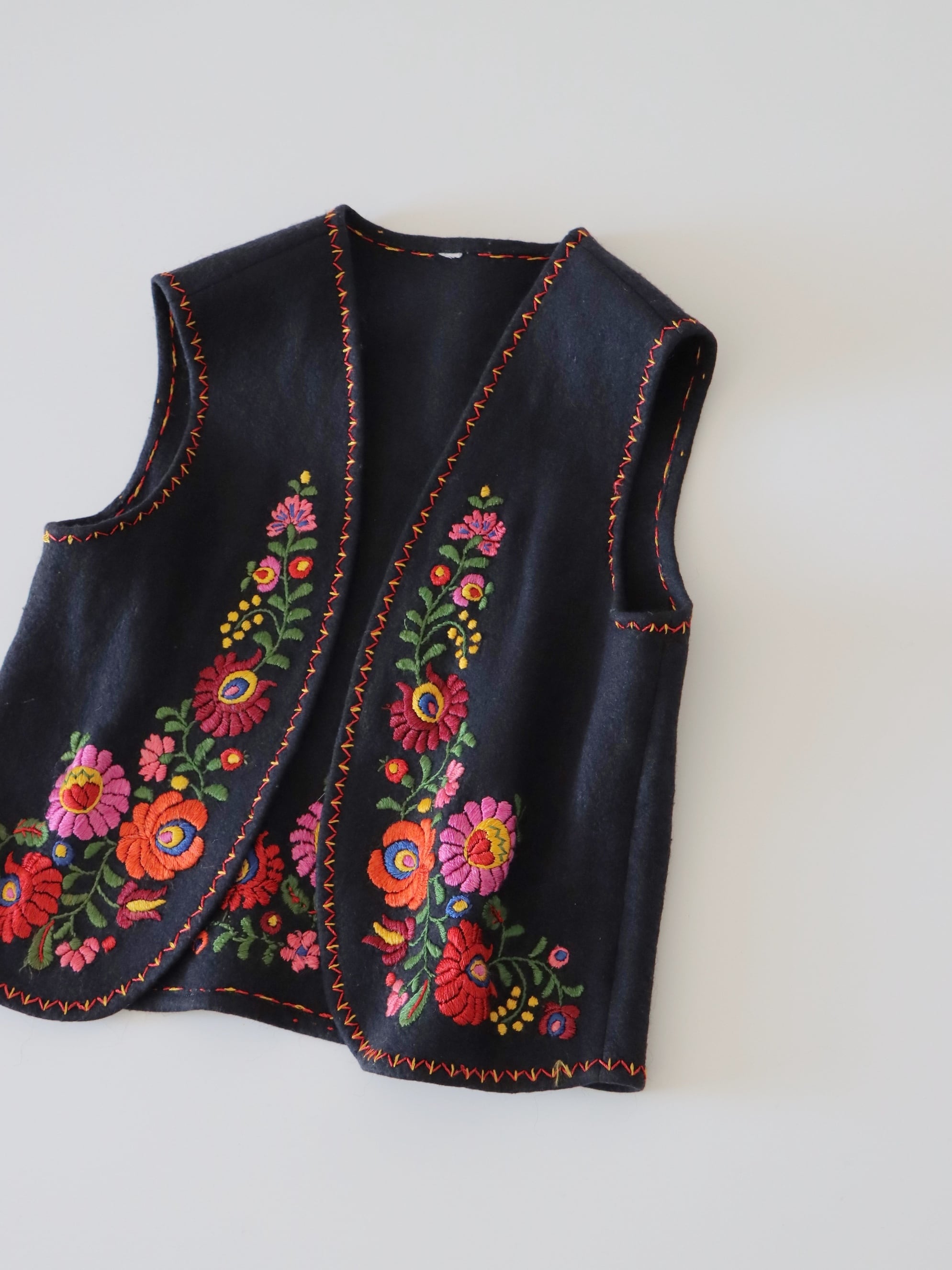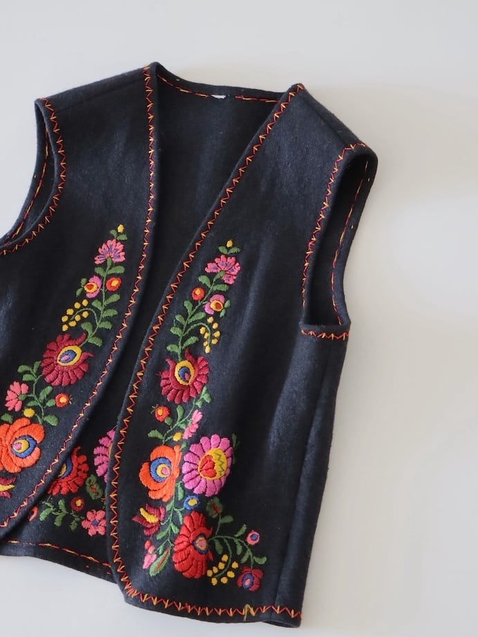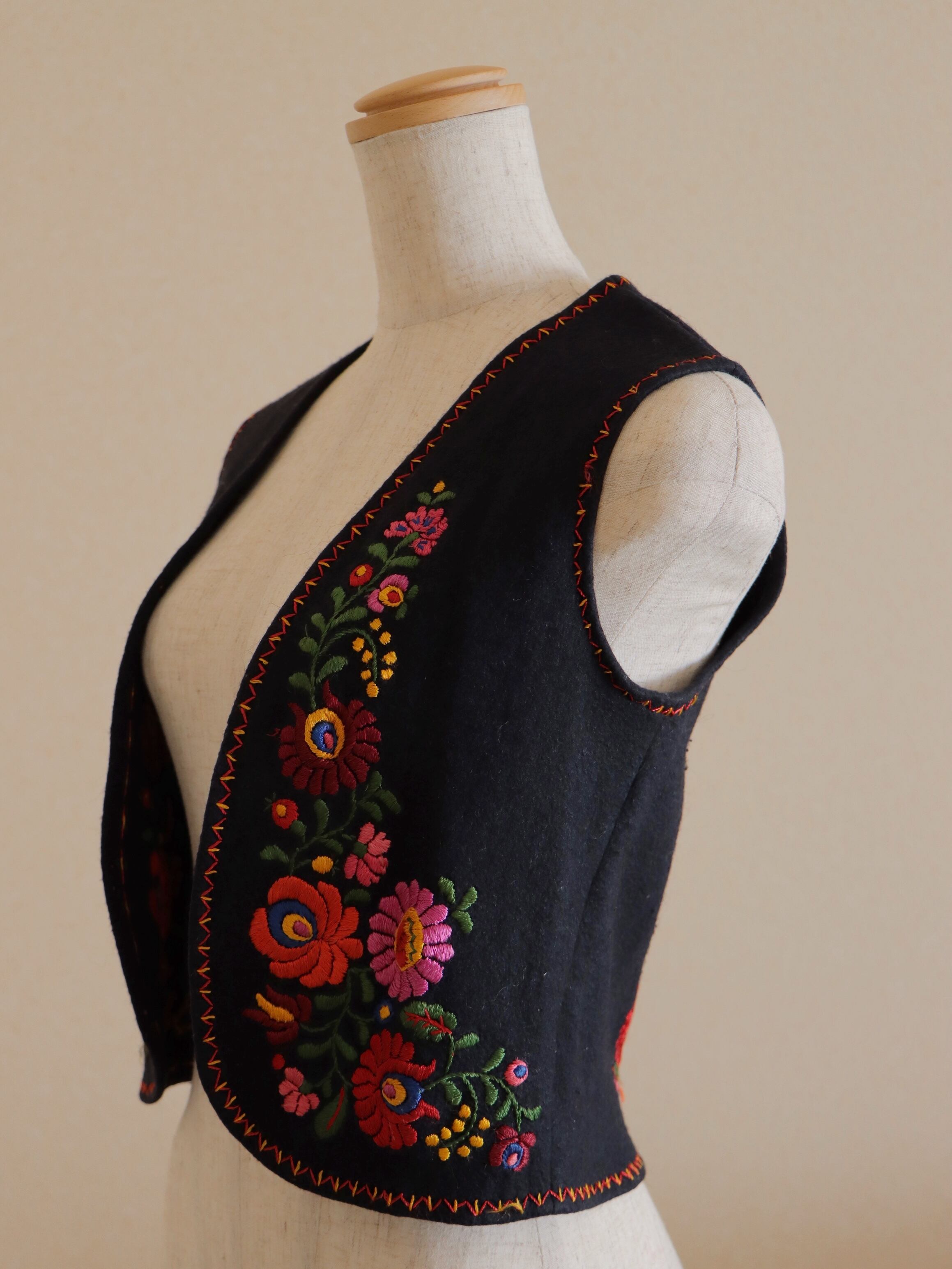 ブラウスやワンピースにプラスすると可愛い、存在感溢れる豪華な刺繍が施されたチロリアンベスト。