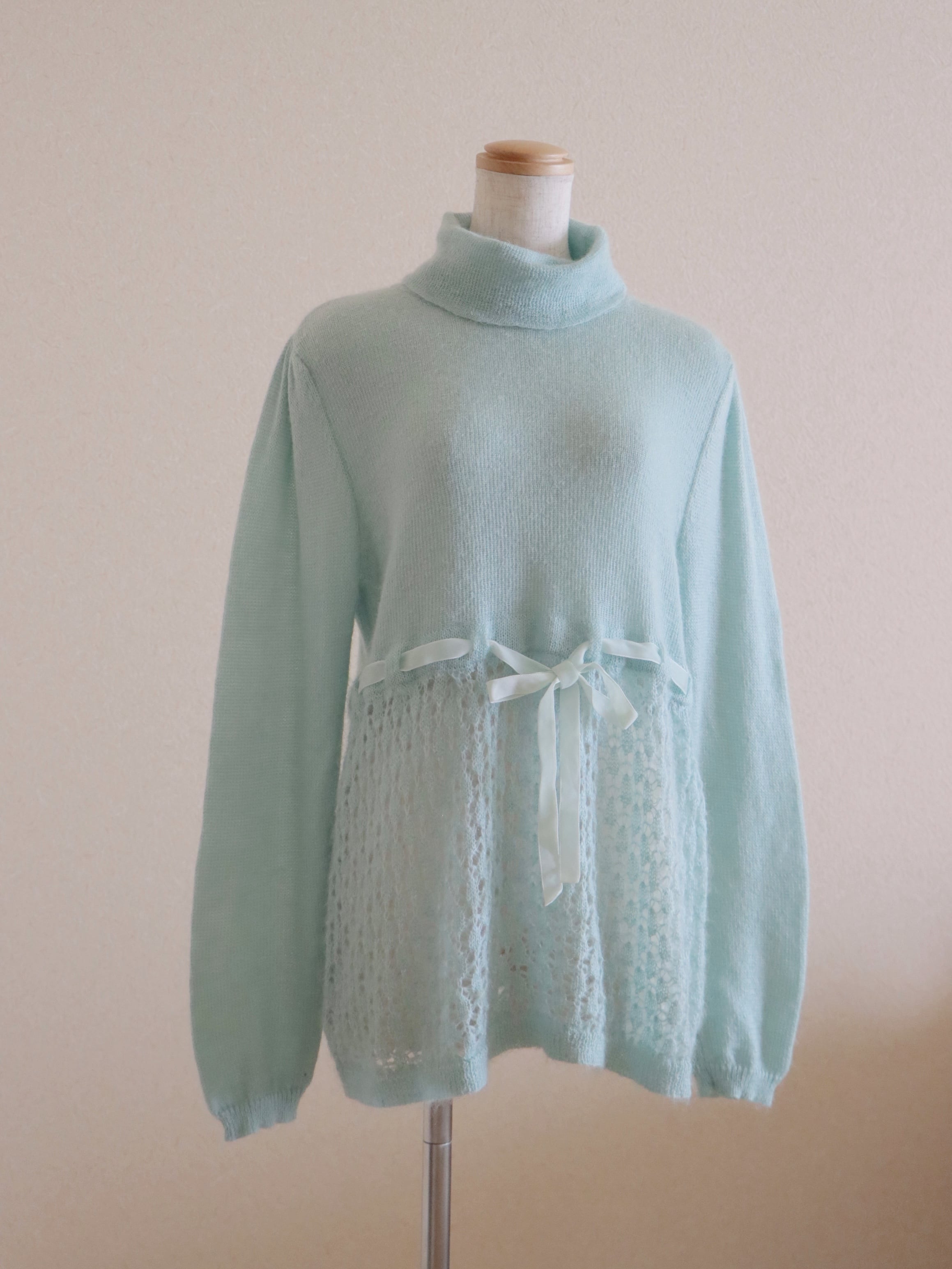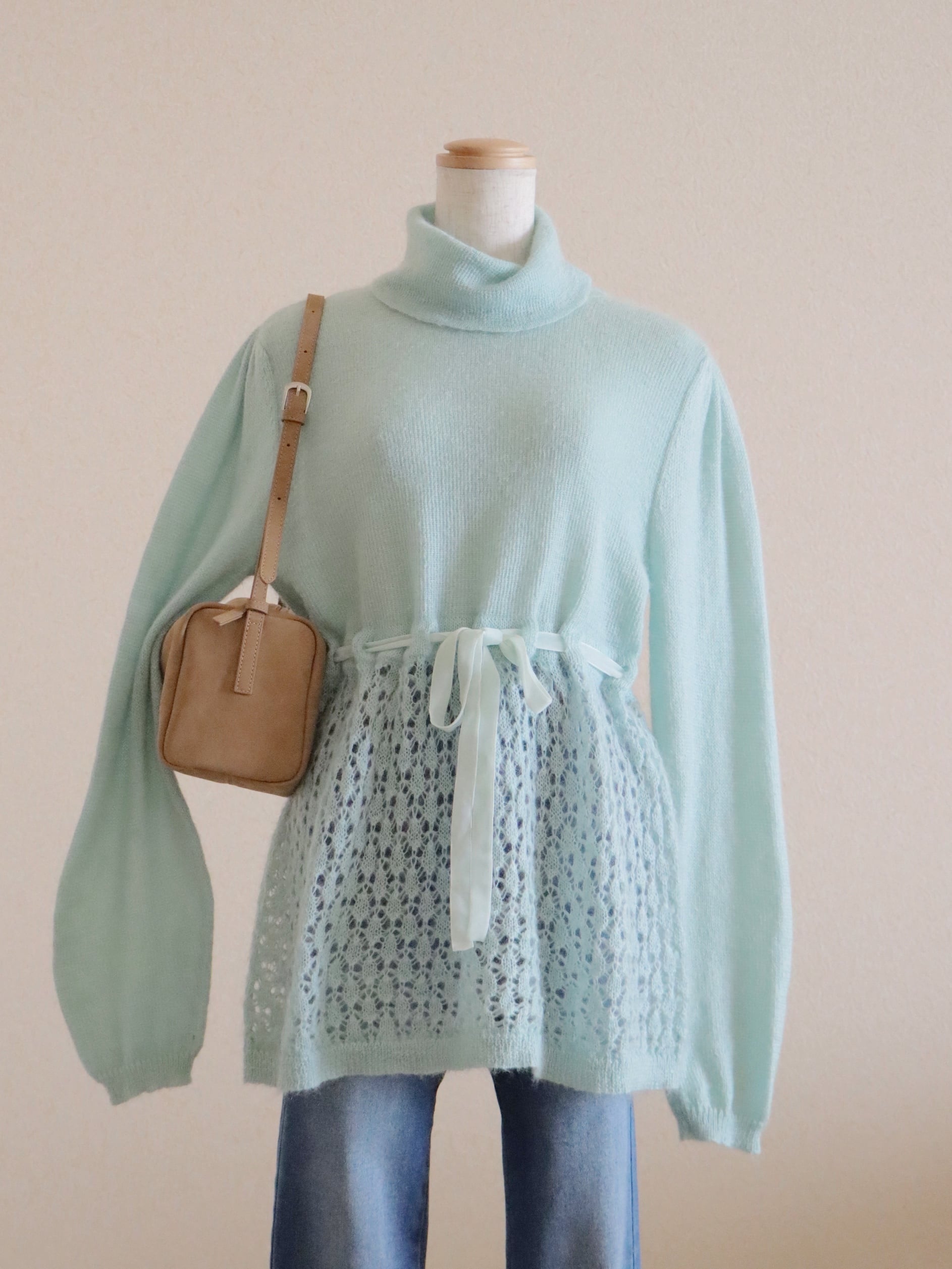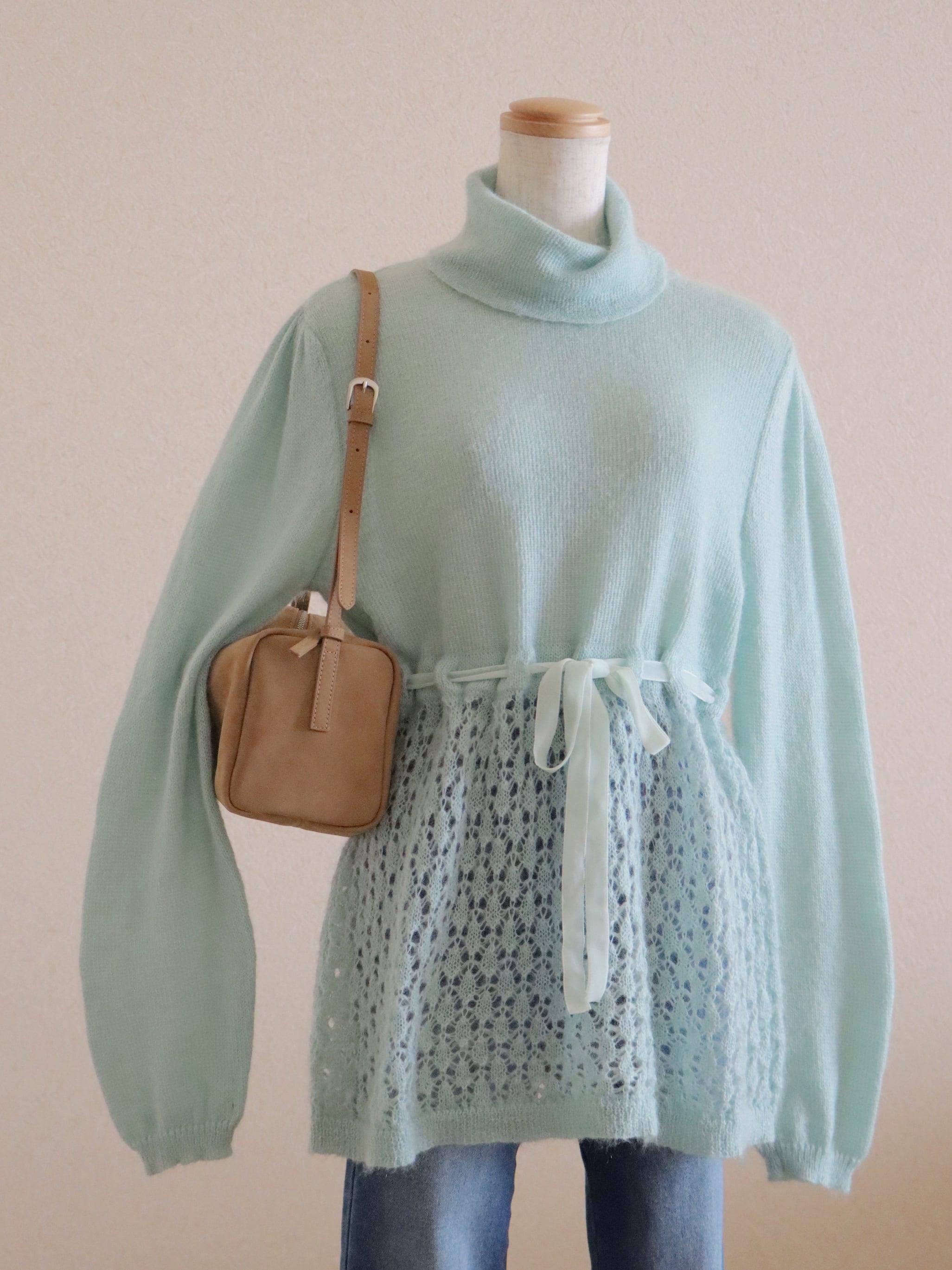 ふんわり柔らかなキッドモヘア素材を贅沢に使用した、これからの季節にお勧めのデザインニット。