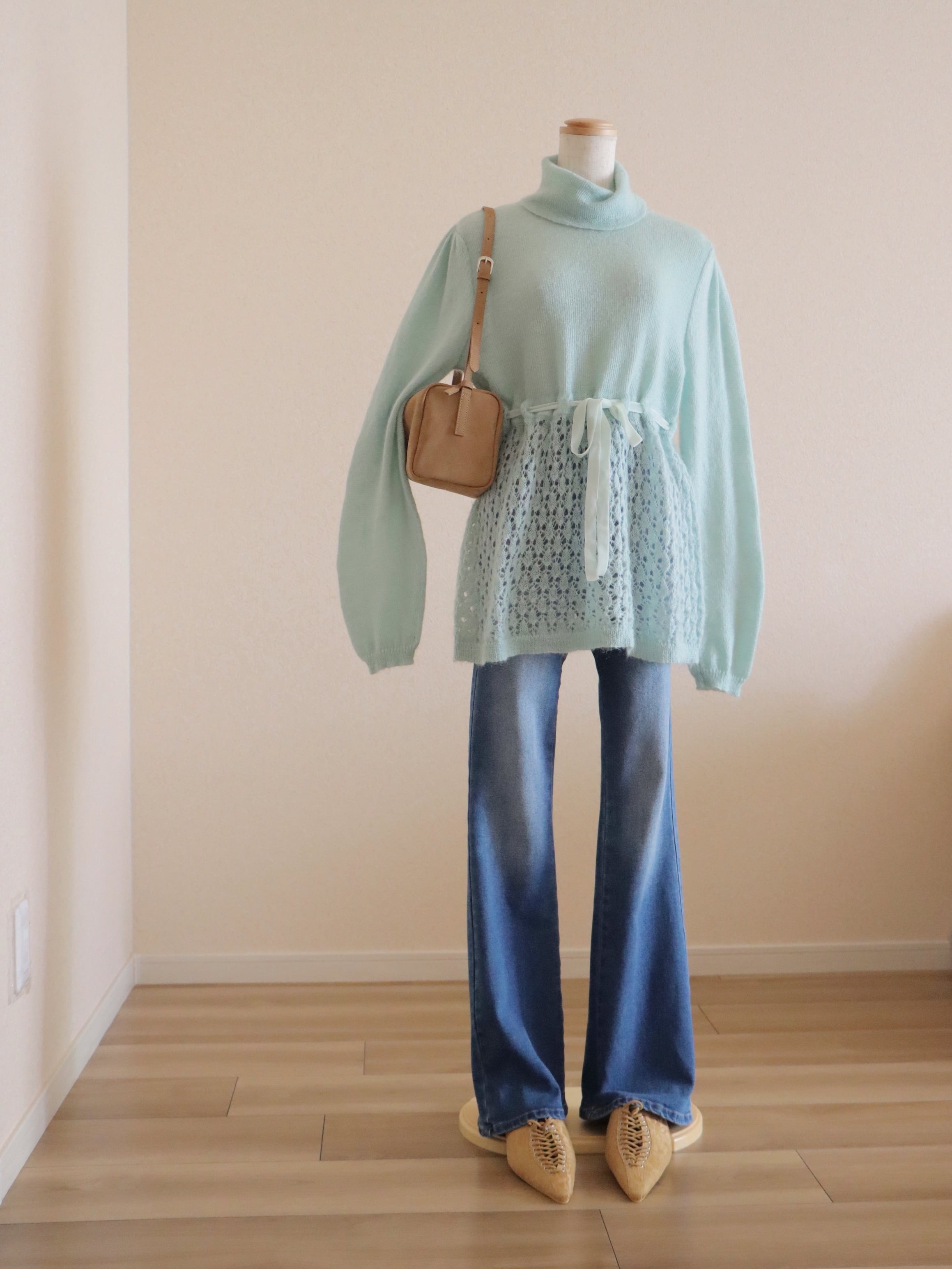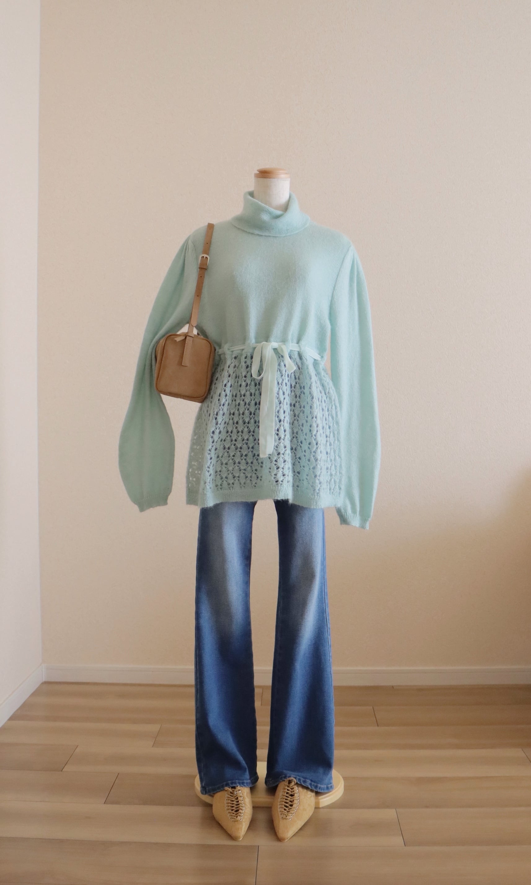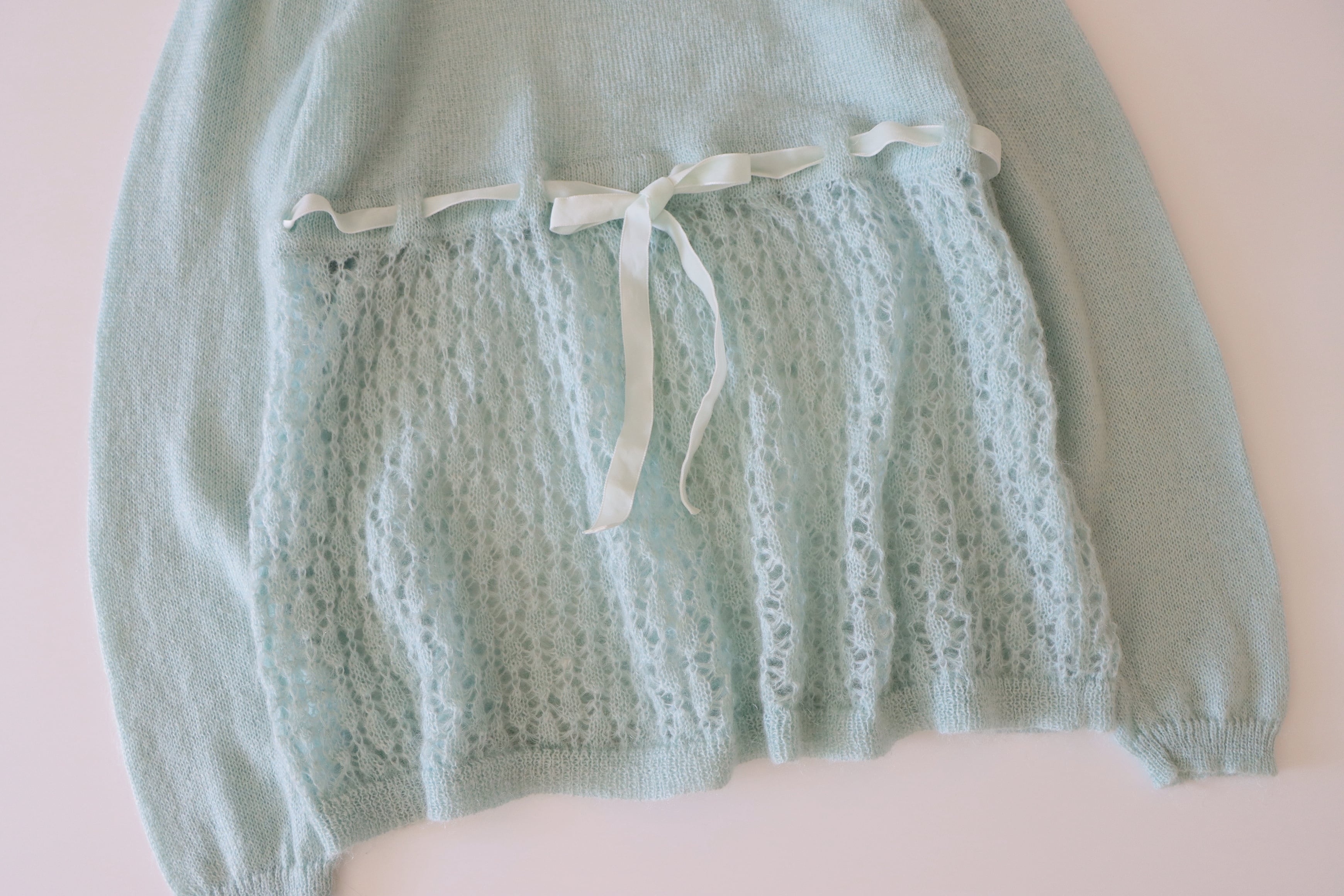 ふんわり柔らかなキッドモヘア素材を贅沢に使用した、これからの季節にお勧めのデザインニット。