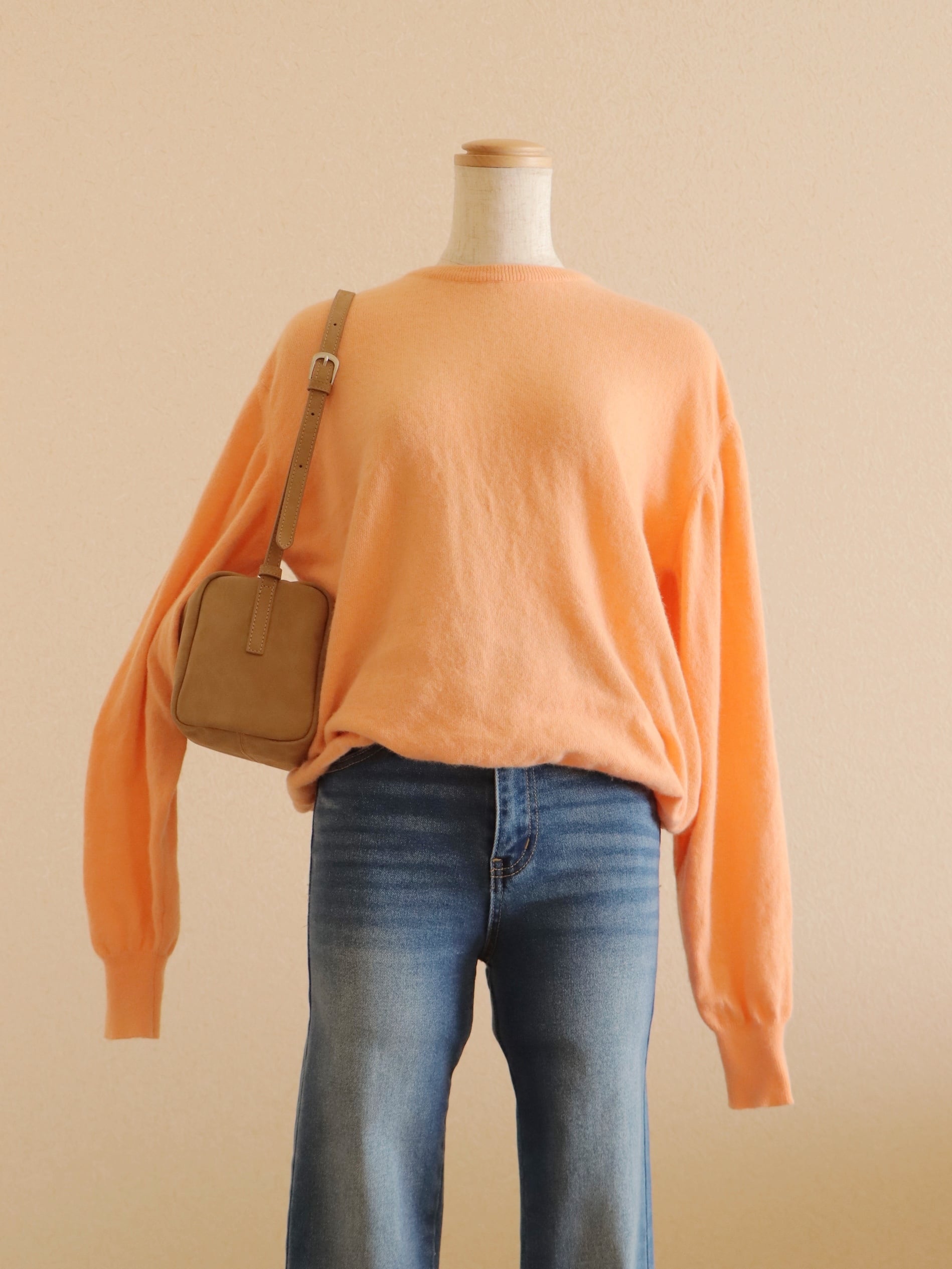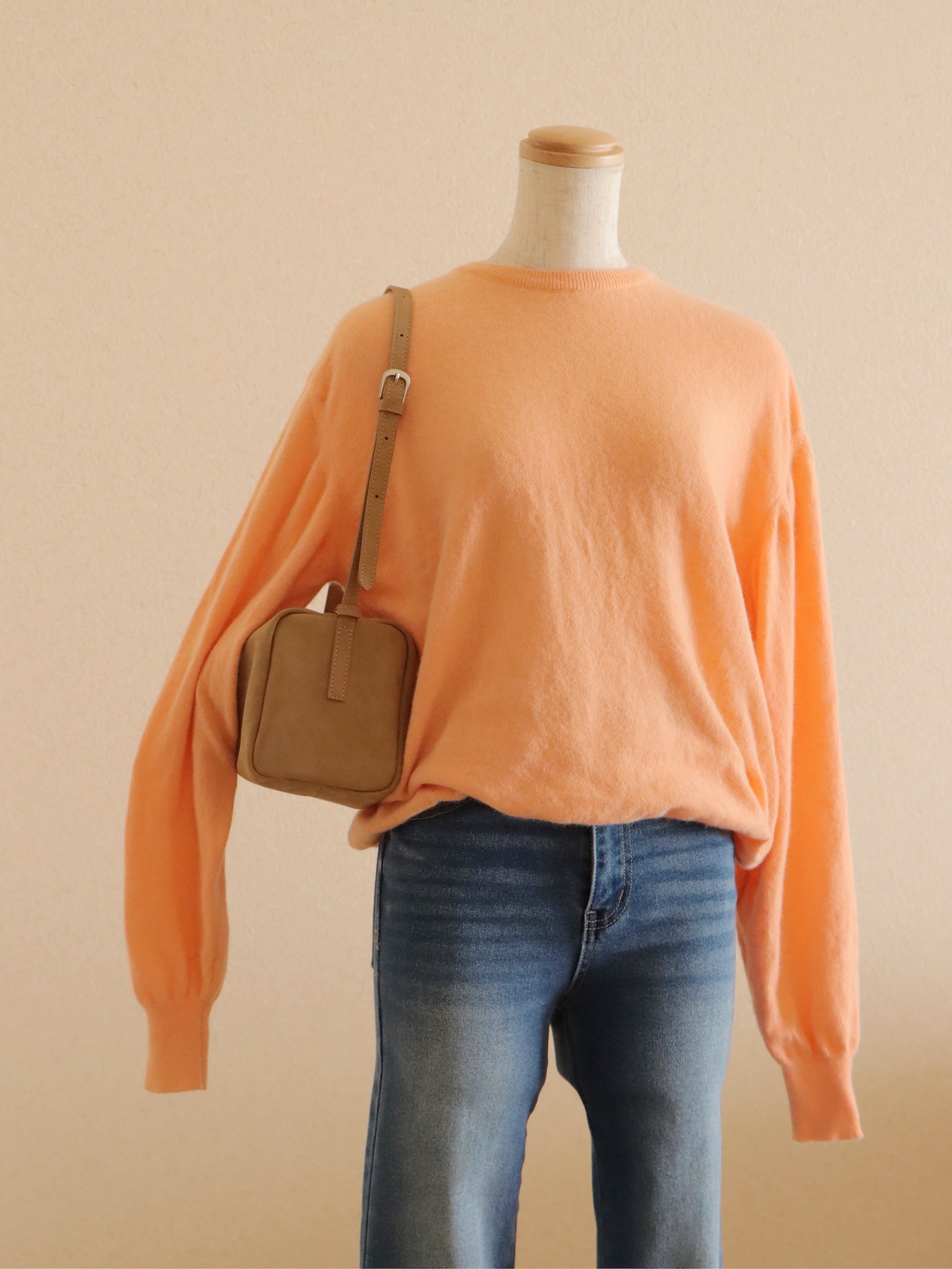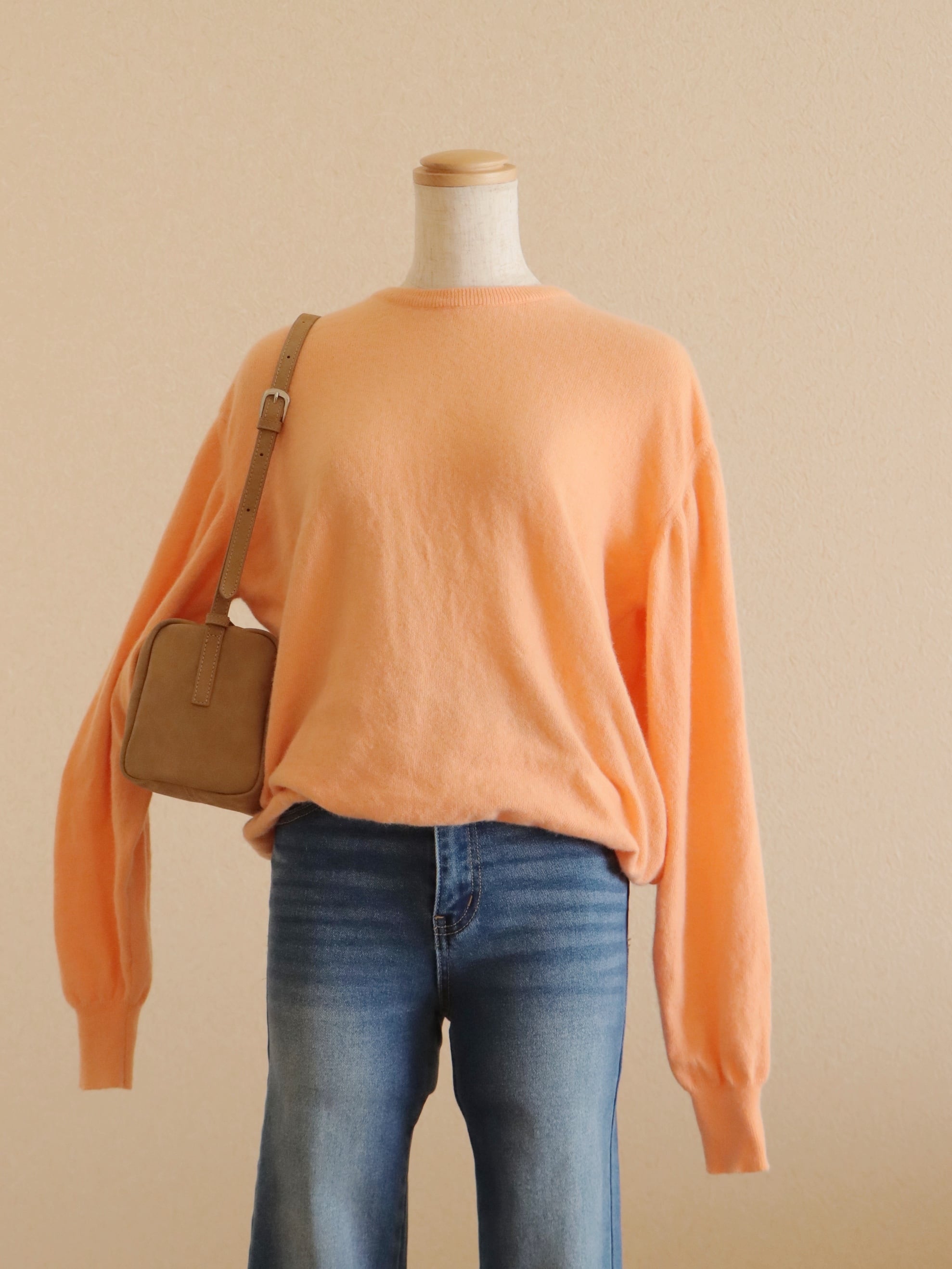 アンゴラ素材特有のふんわり空気を含んだような柔らかでソフトな風合いが着心地良く、シンプルなディテールだからこそ素材の良さが引き立った1着です。