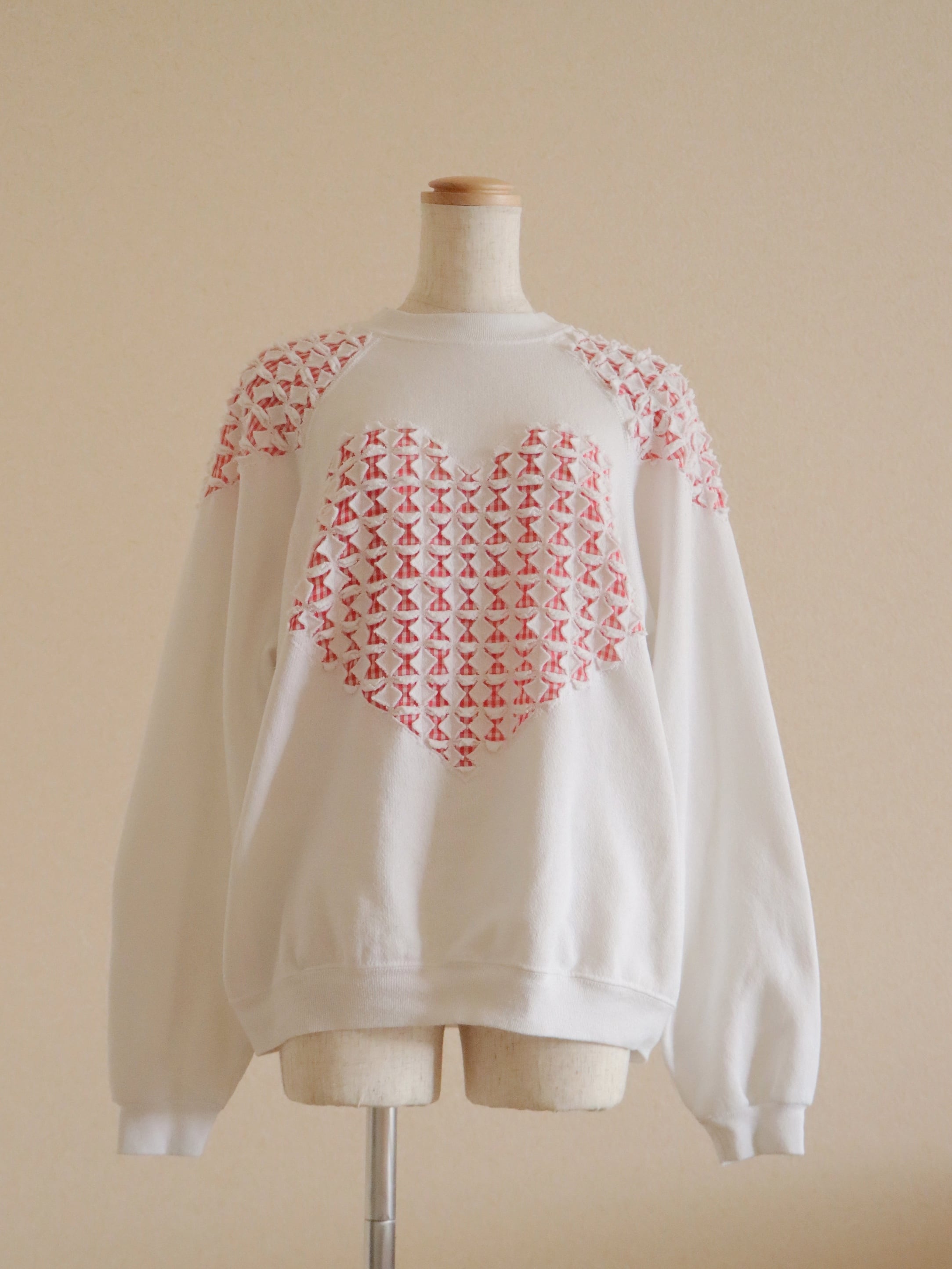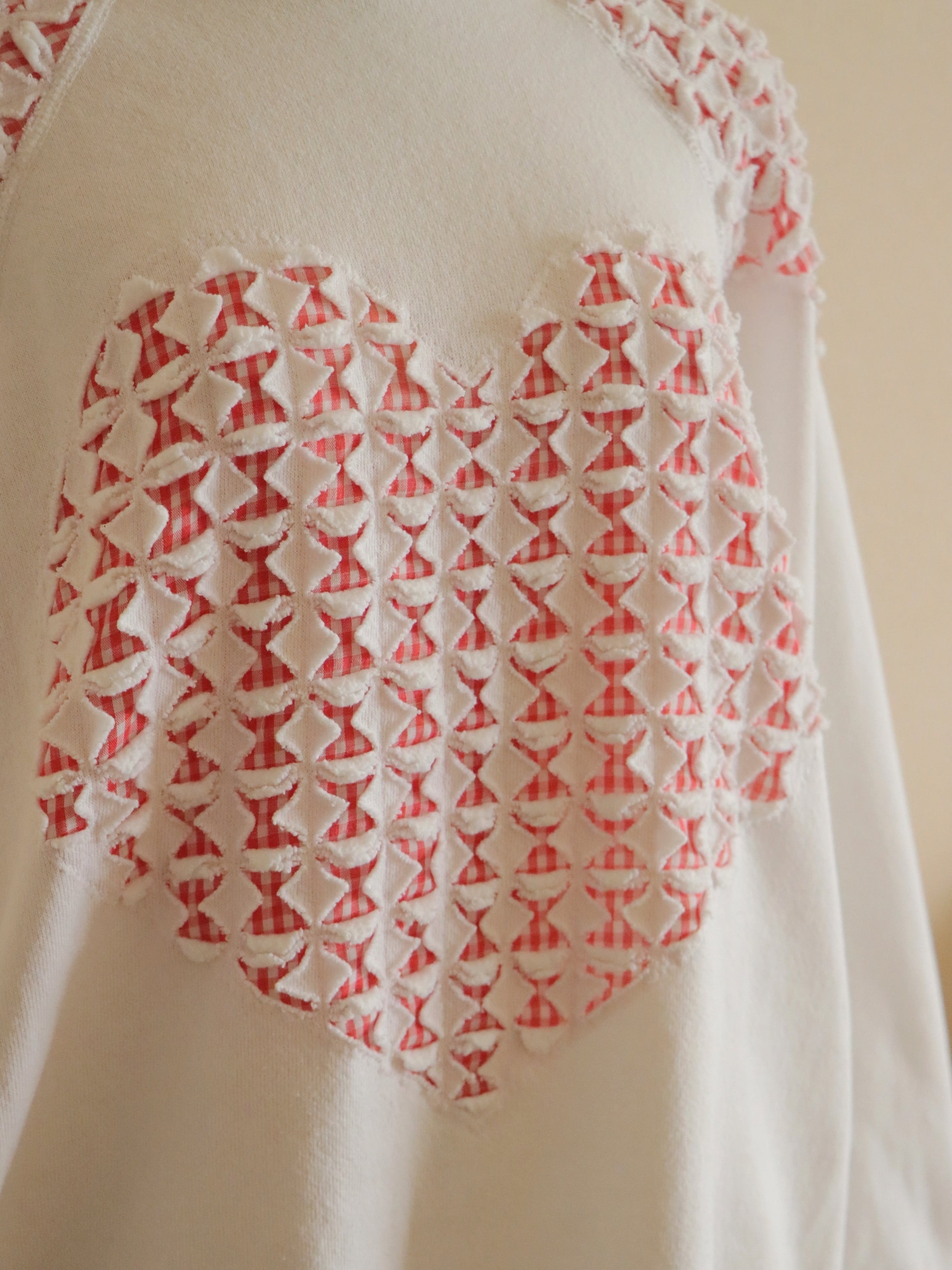 繊細なカットワークの中からちらっと覗くギンガムチェックが可愛い、90sのUSA製デザインスウェット。