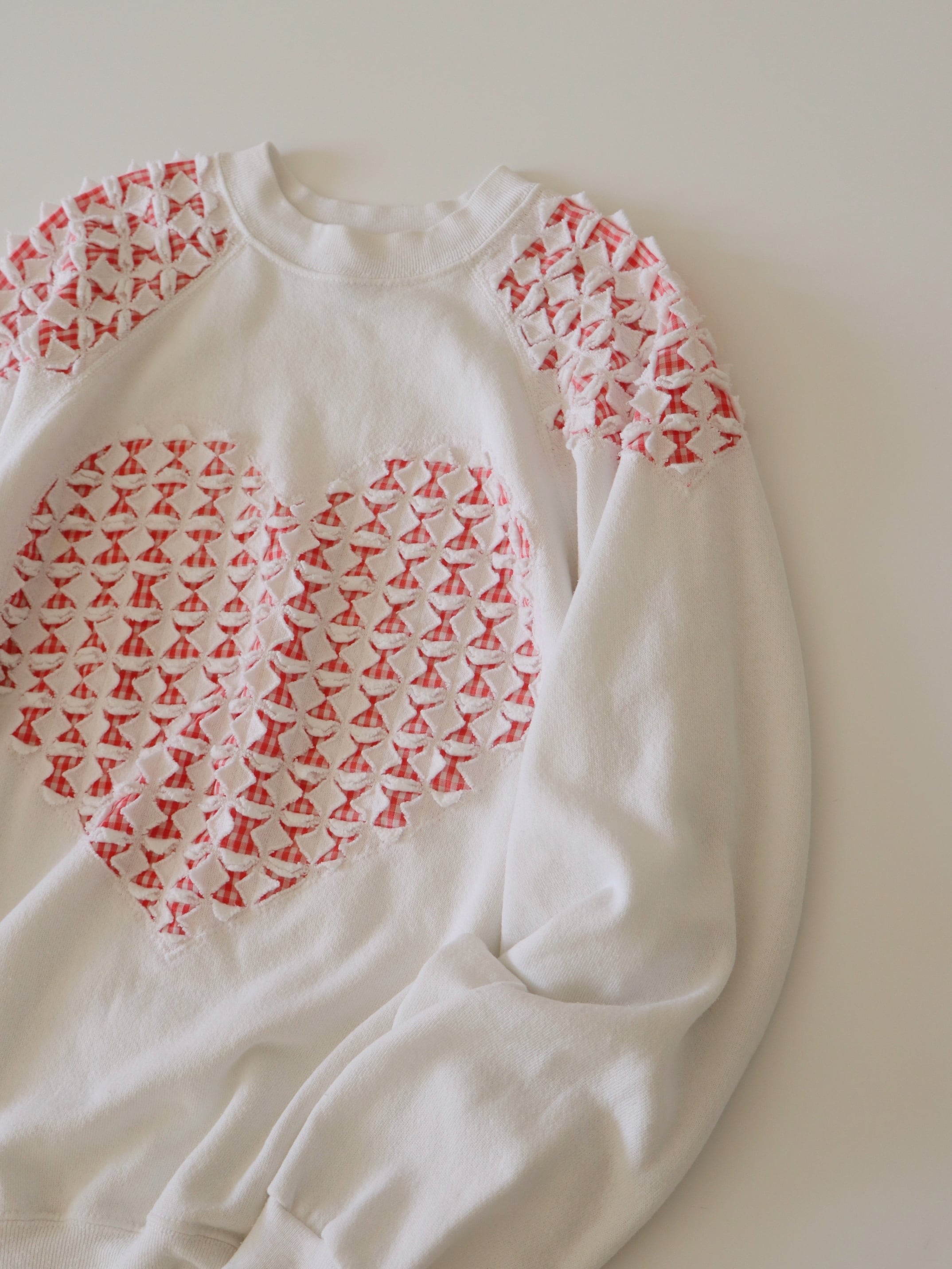 ●90s made in USA gingham plaid & heart heart design sweatshirt