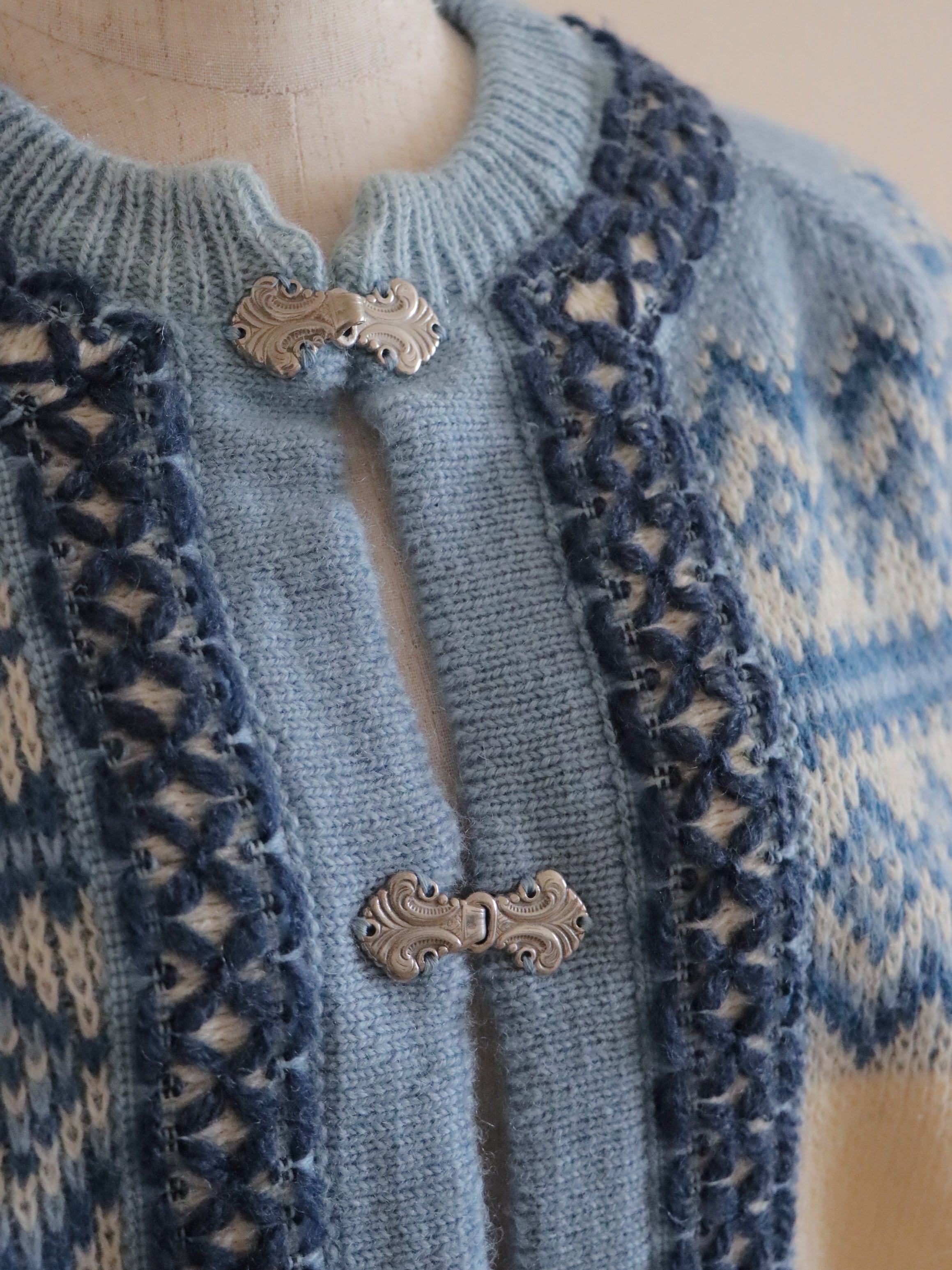 ●made in NORWAY wool 100% blue color nordic cardigan.