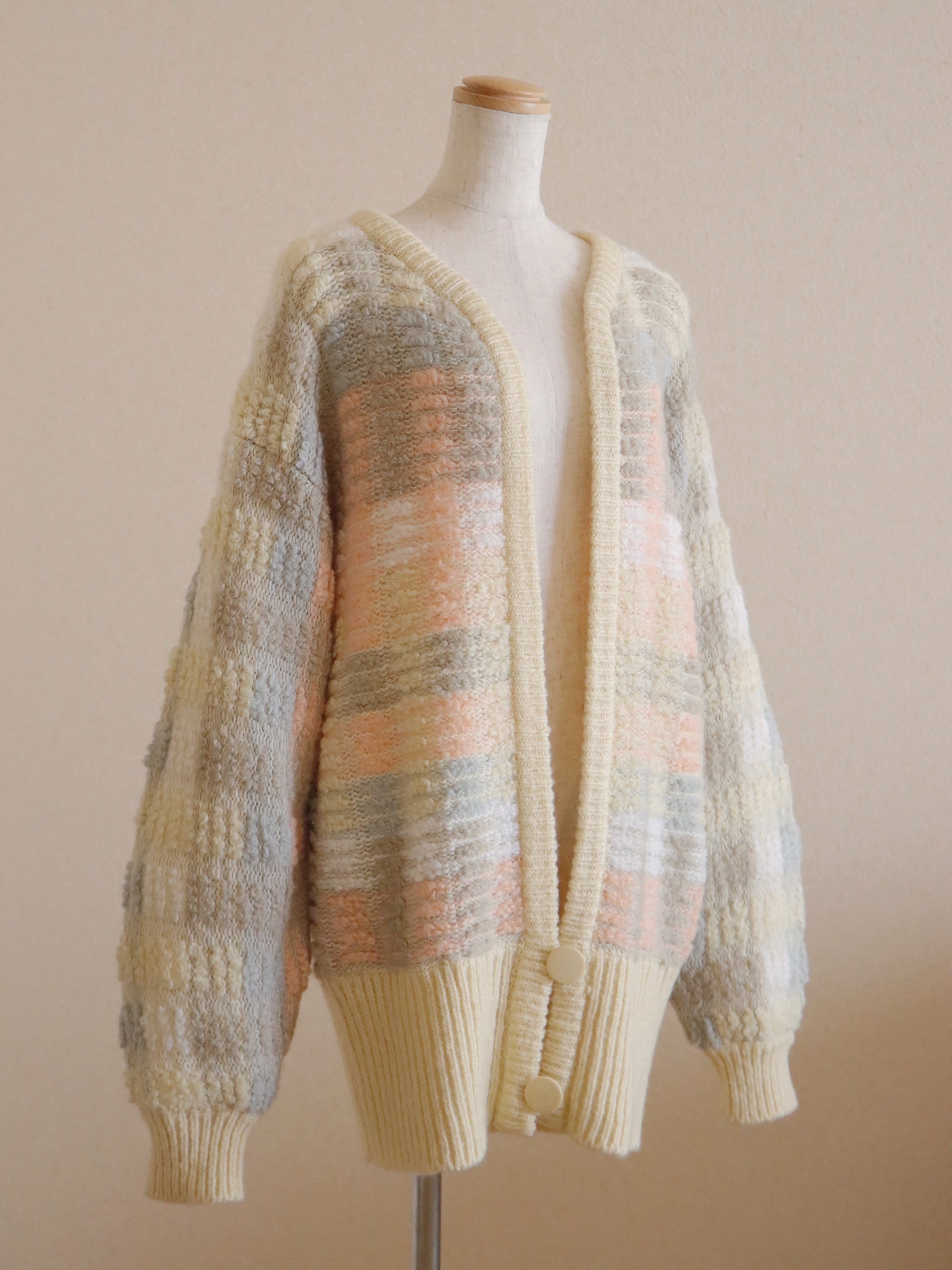 ●80-90s loop yarn knitted design pink color cardigan.