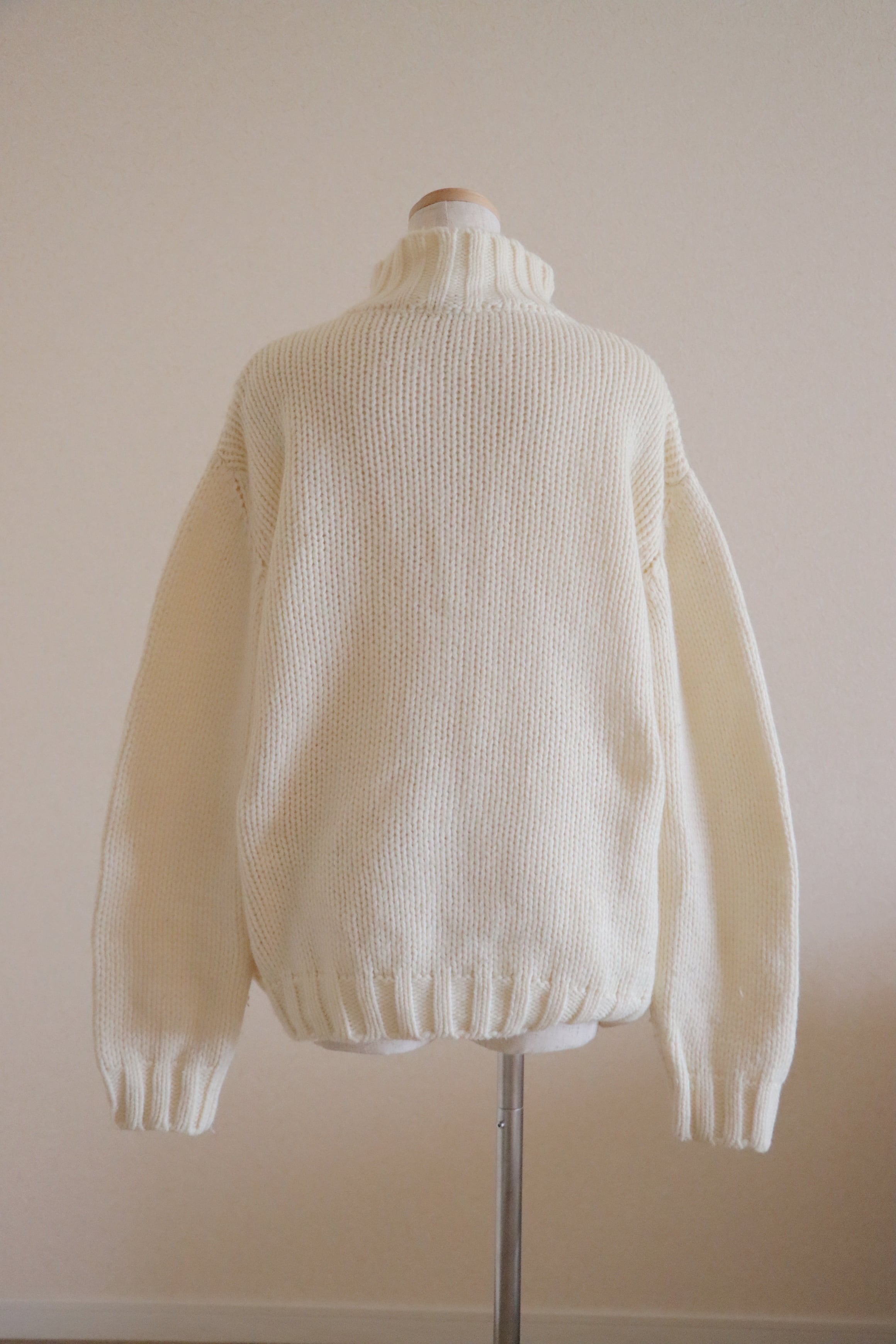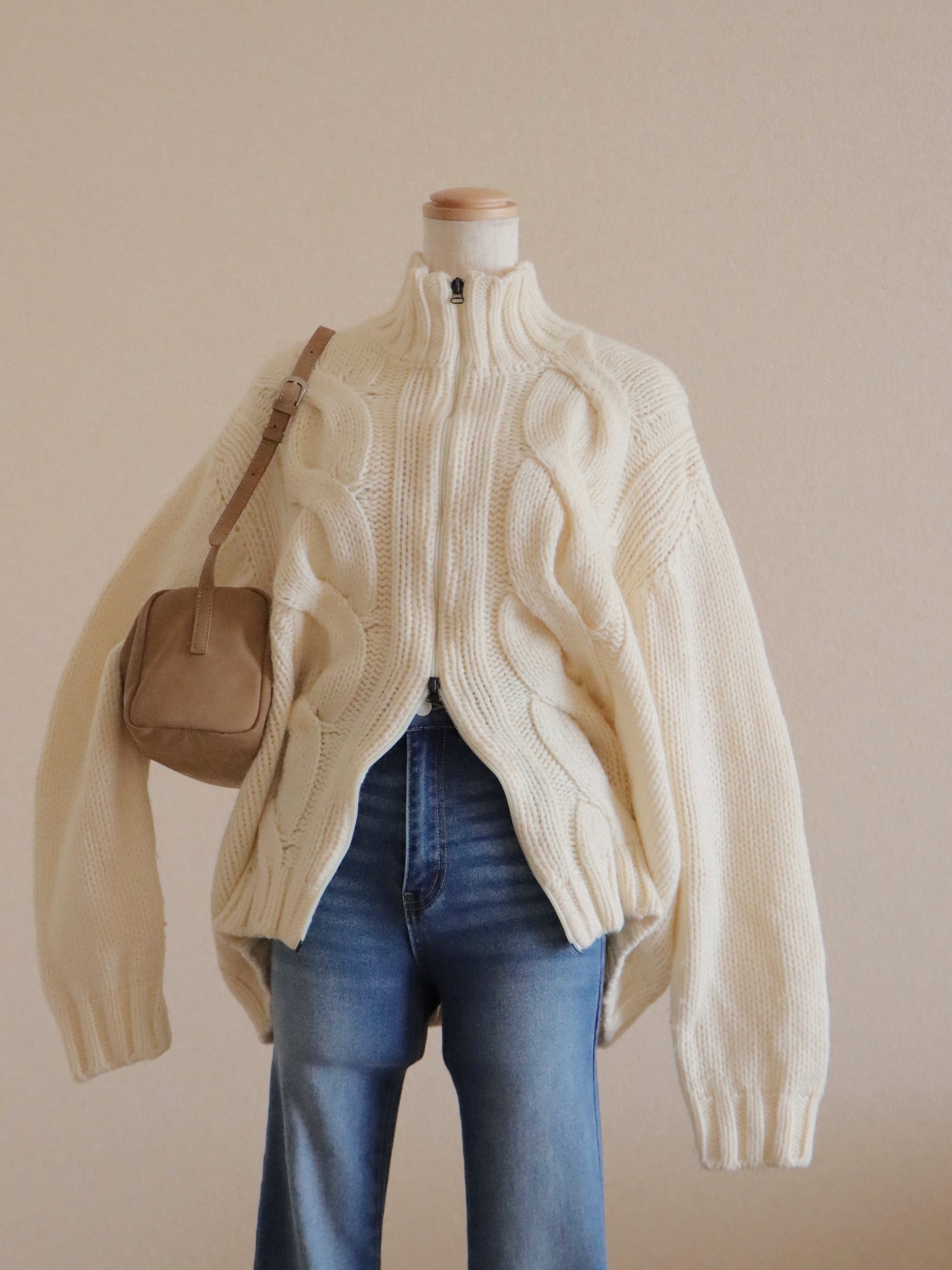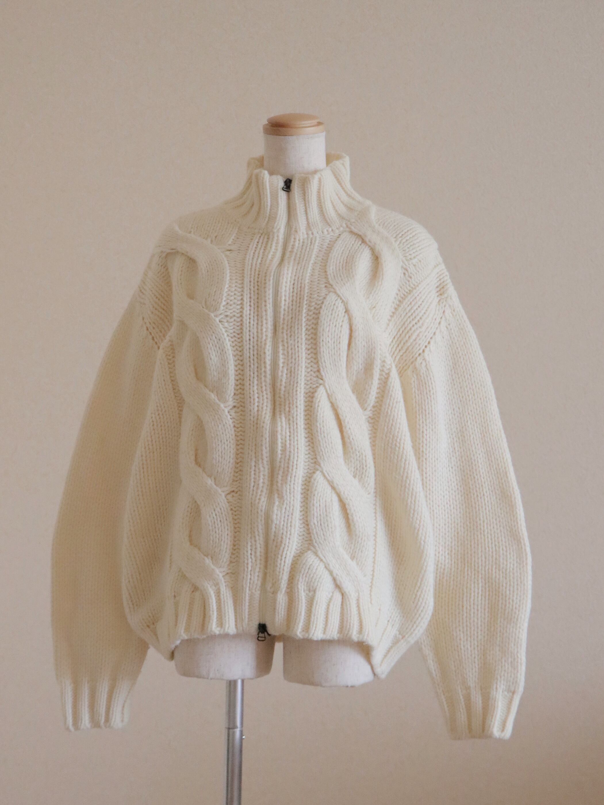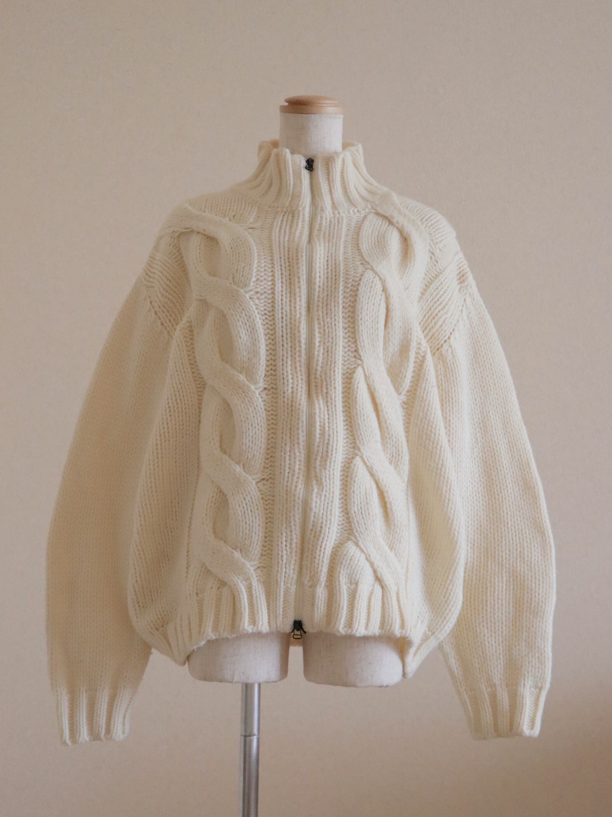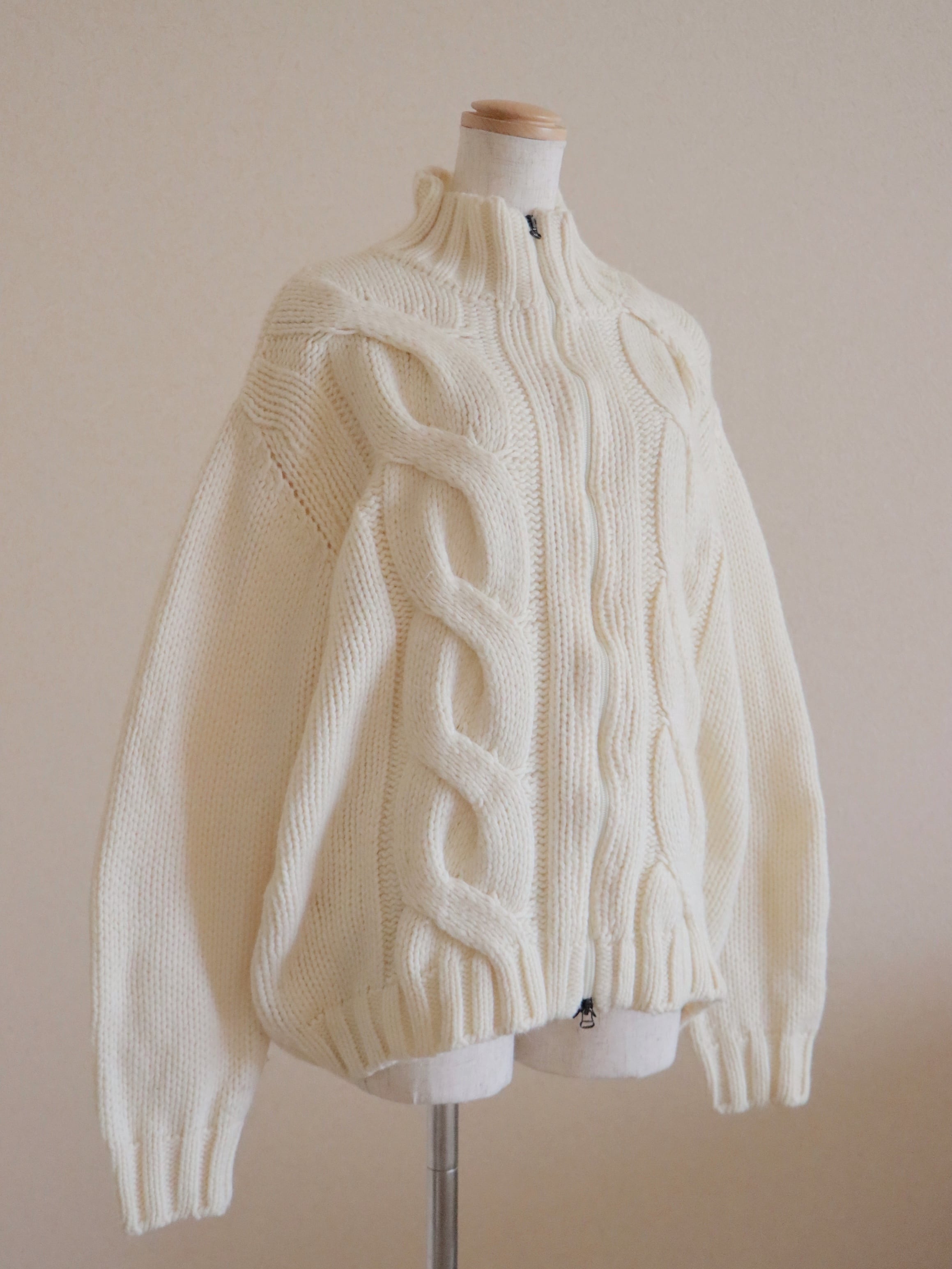●Big cable front zipper ivory color wool cardigan