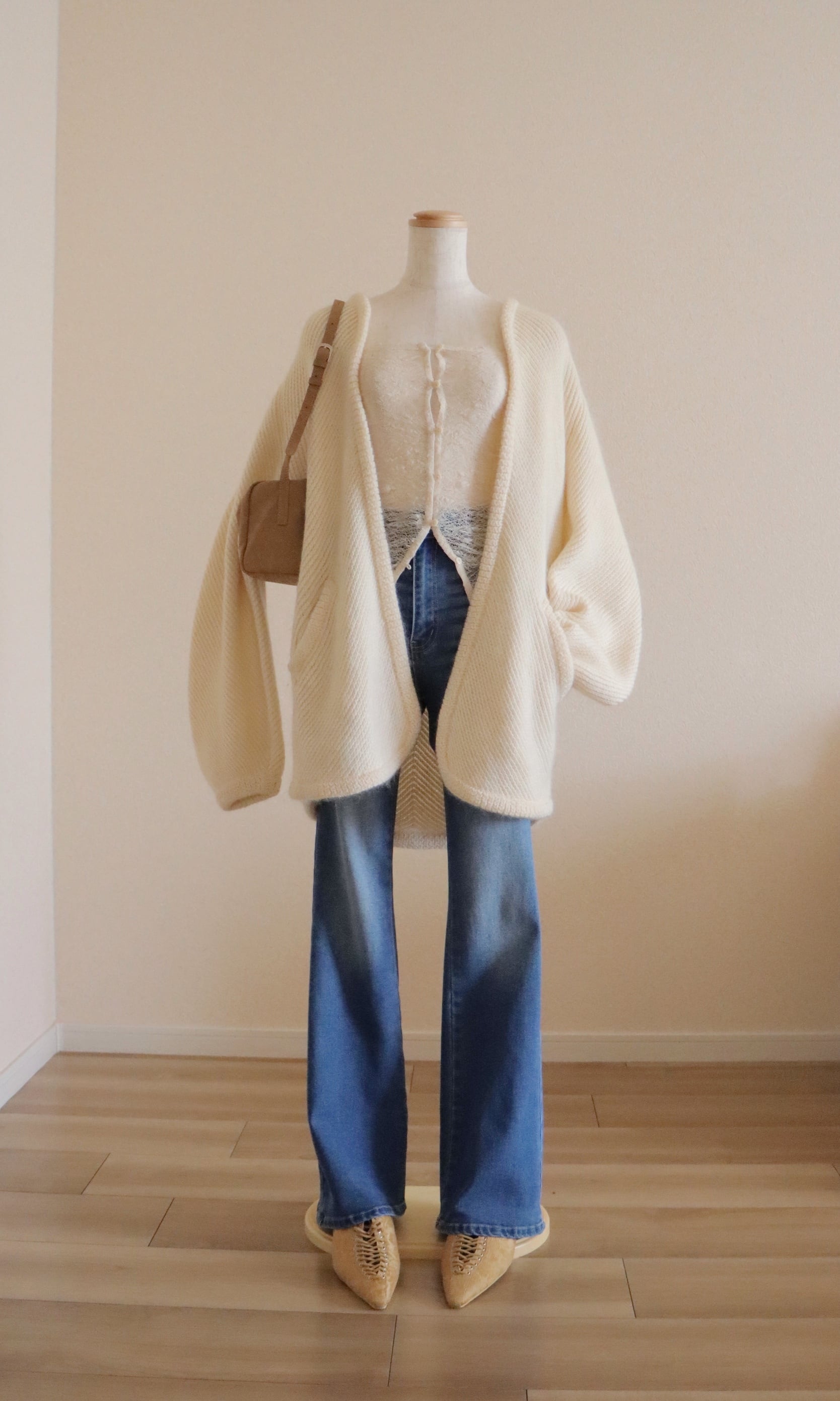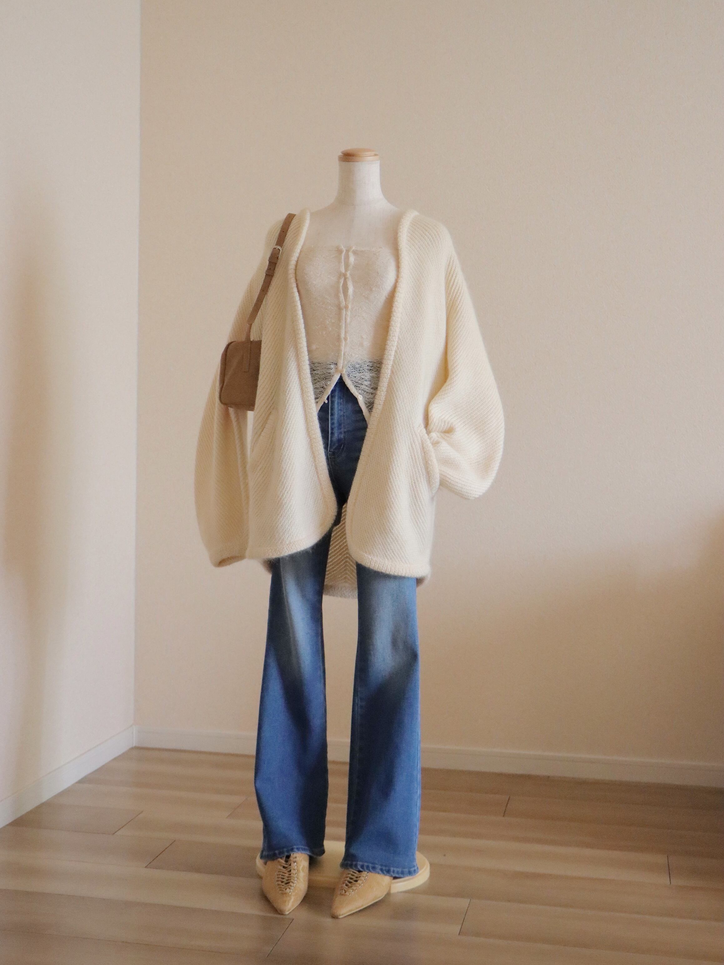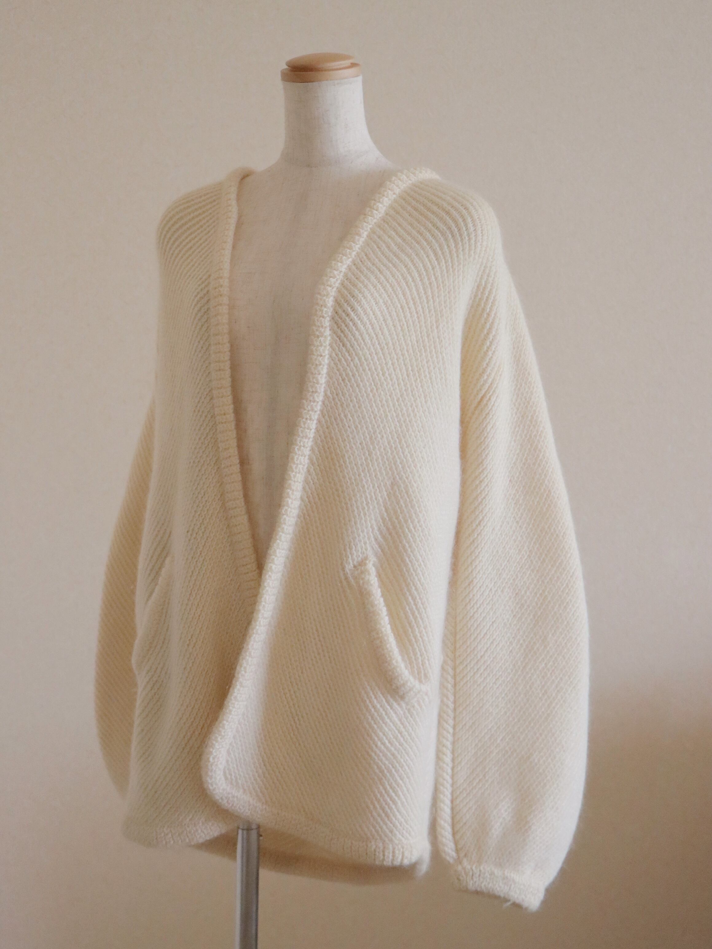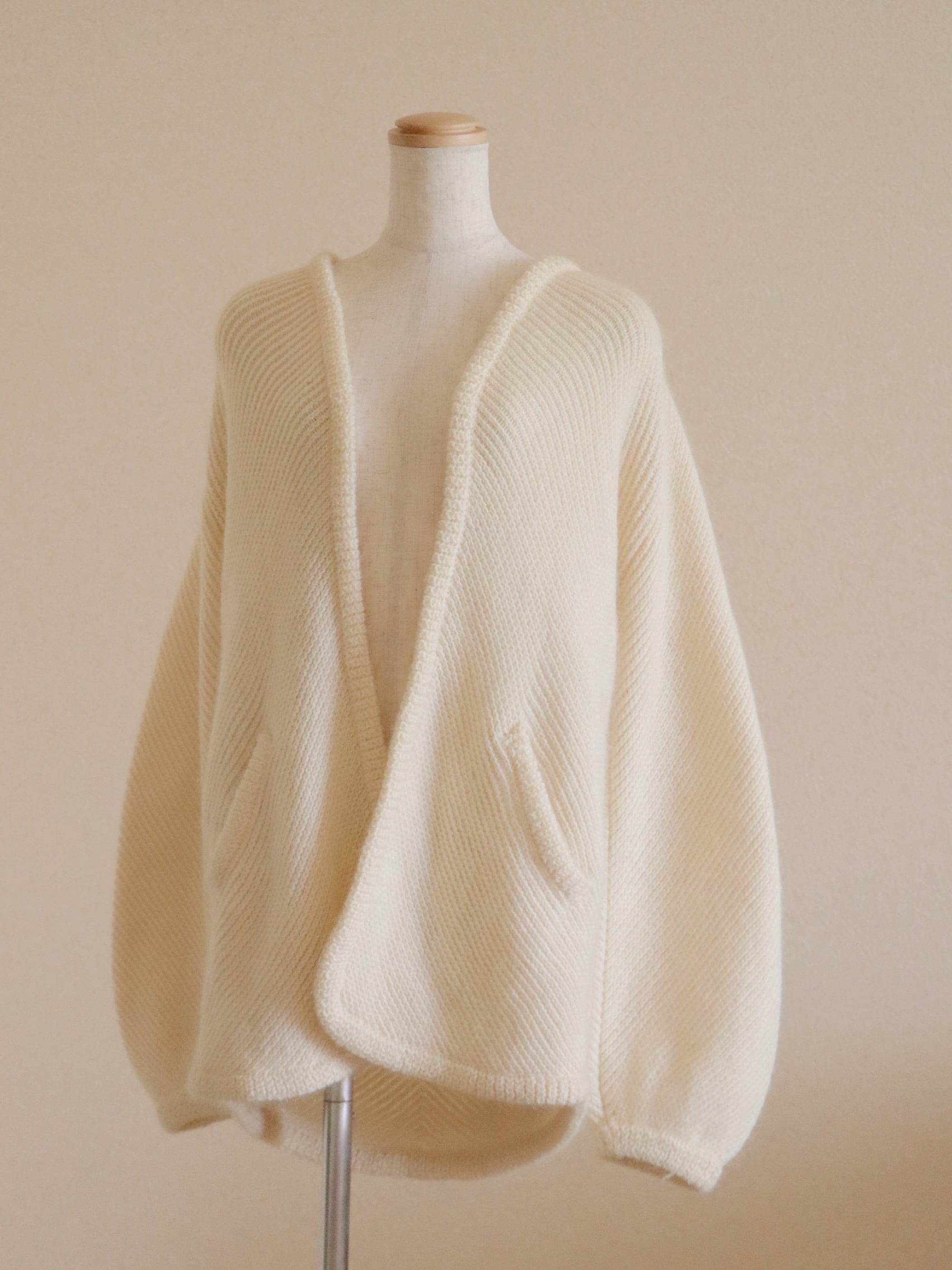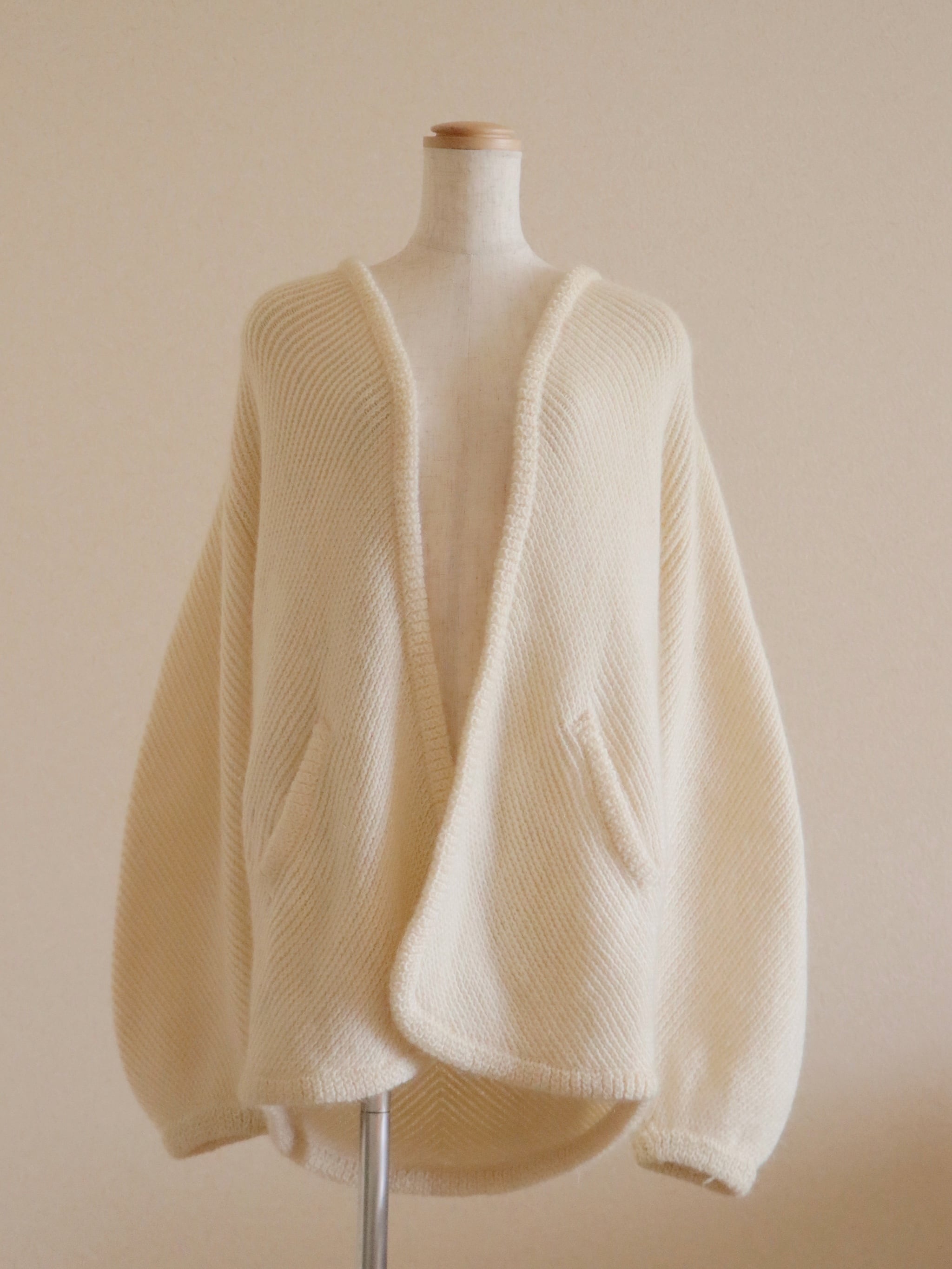 ふんわり柔らかな編地を使用しているので羽織りやすく、涼しくなってきた今の時期にお勧めです。