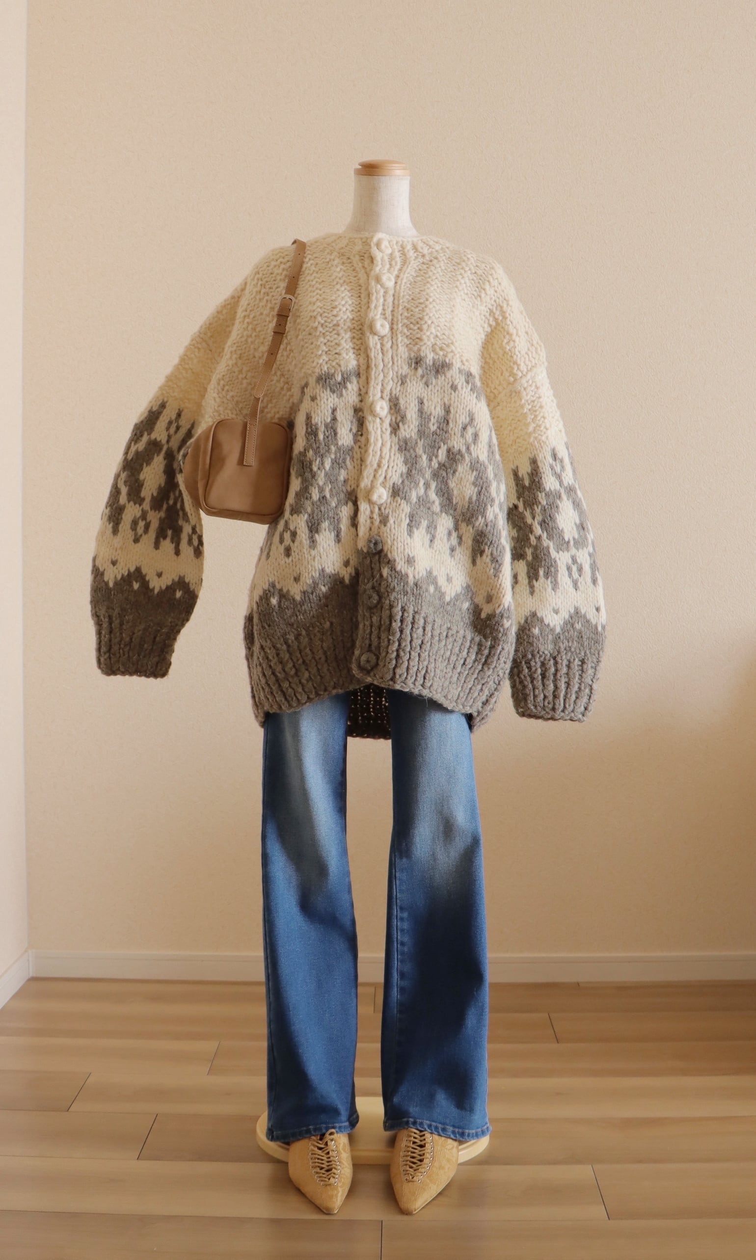 (見た目よりもとても軽い編地です。空気を含んだような、全体的にふんわり柔らかな風合いでストレスなくご着用いただけます)