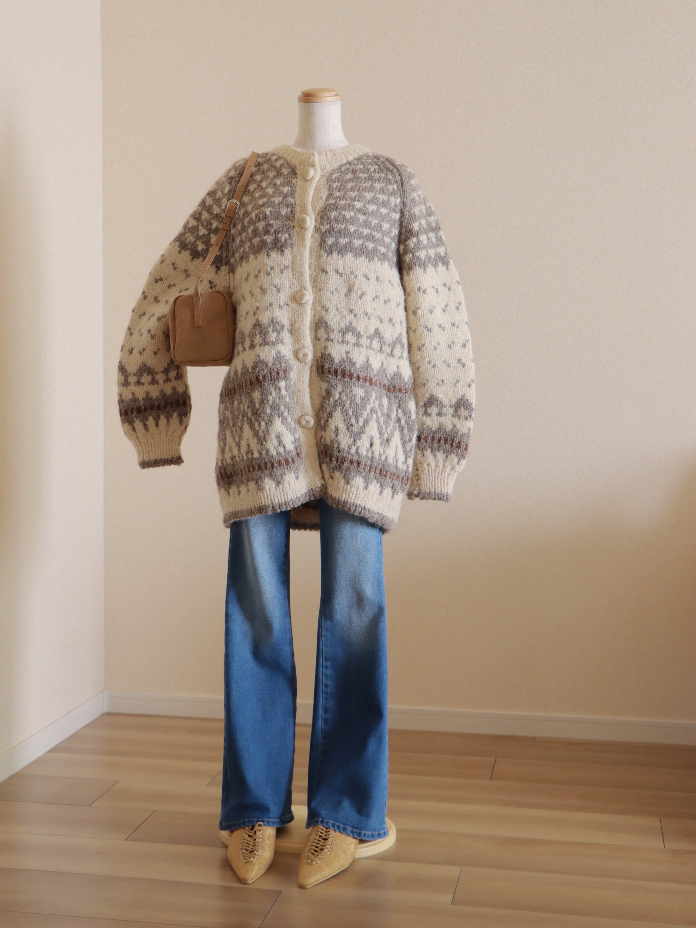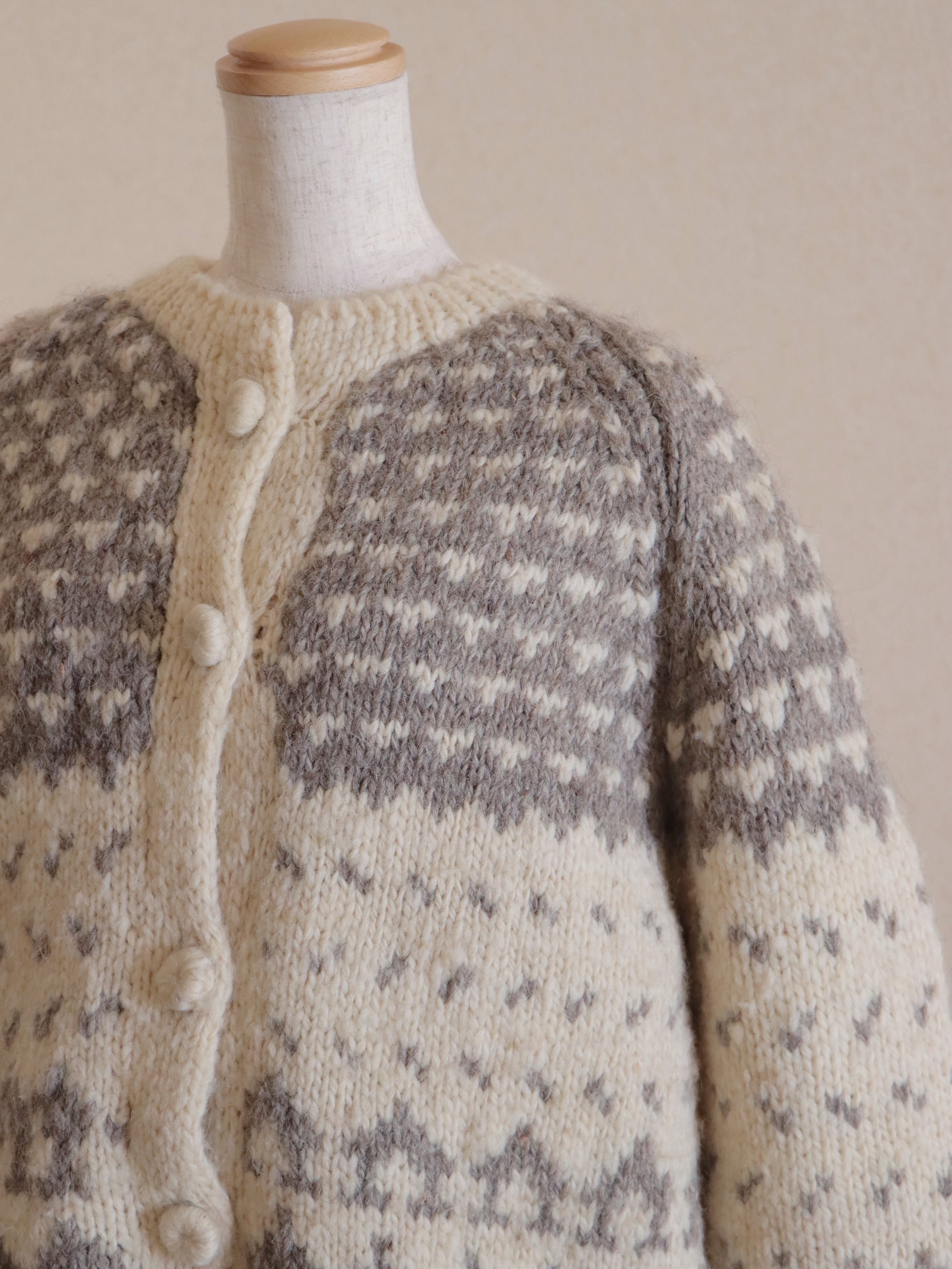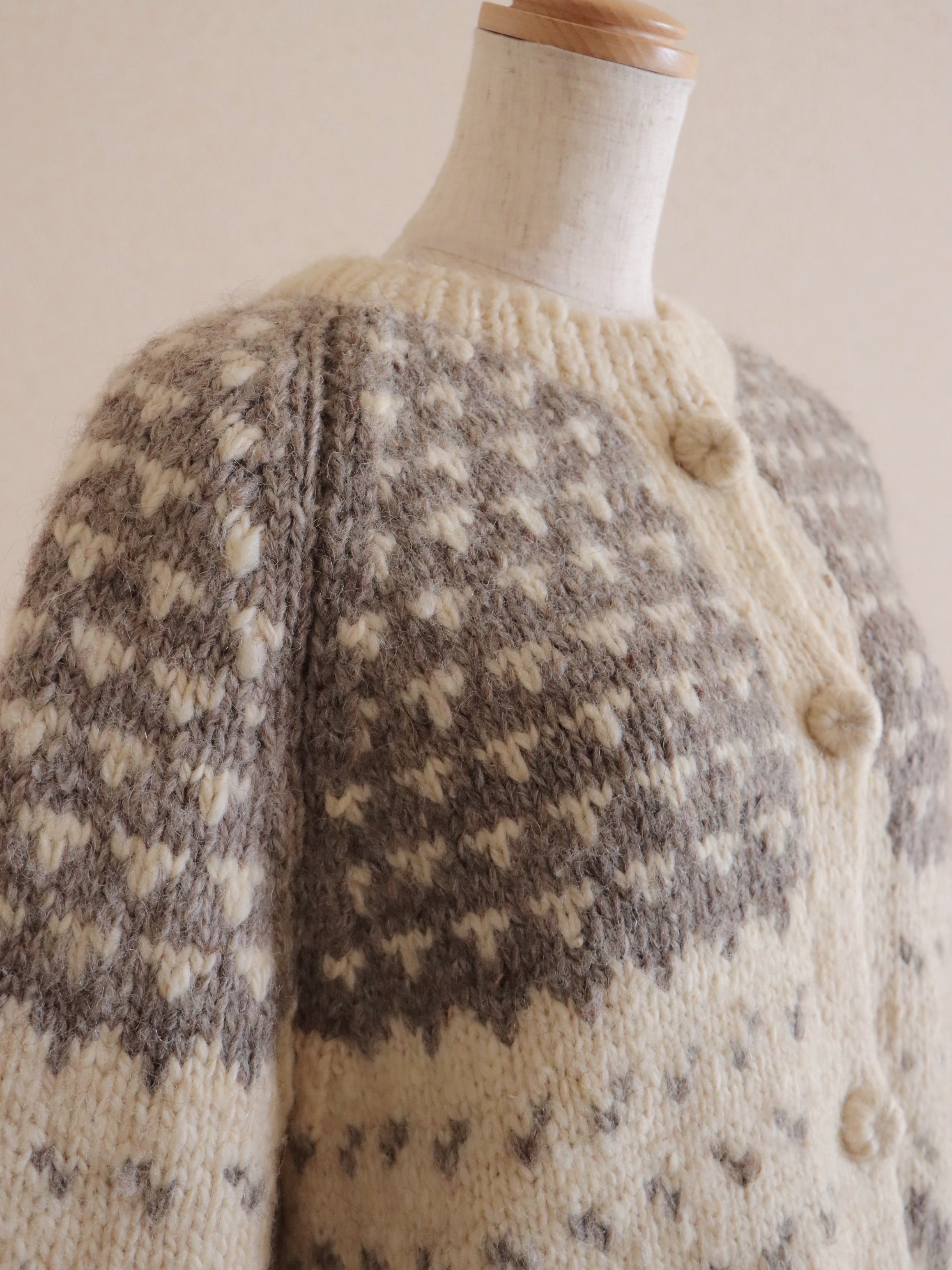 ●Hand knitted front button & pocket nordic cardigan jacket②.