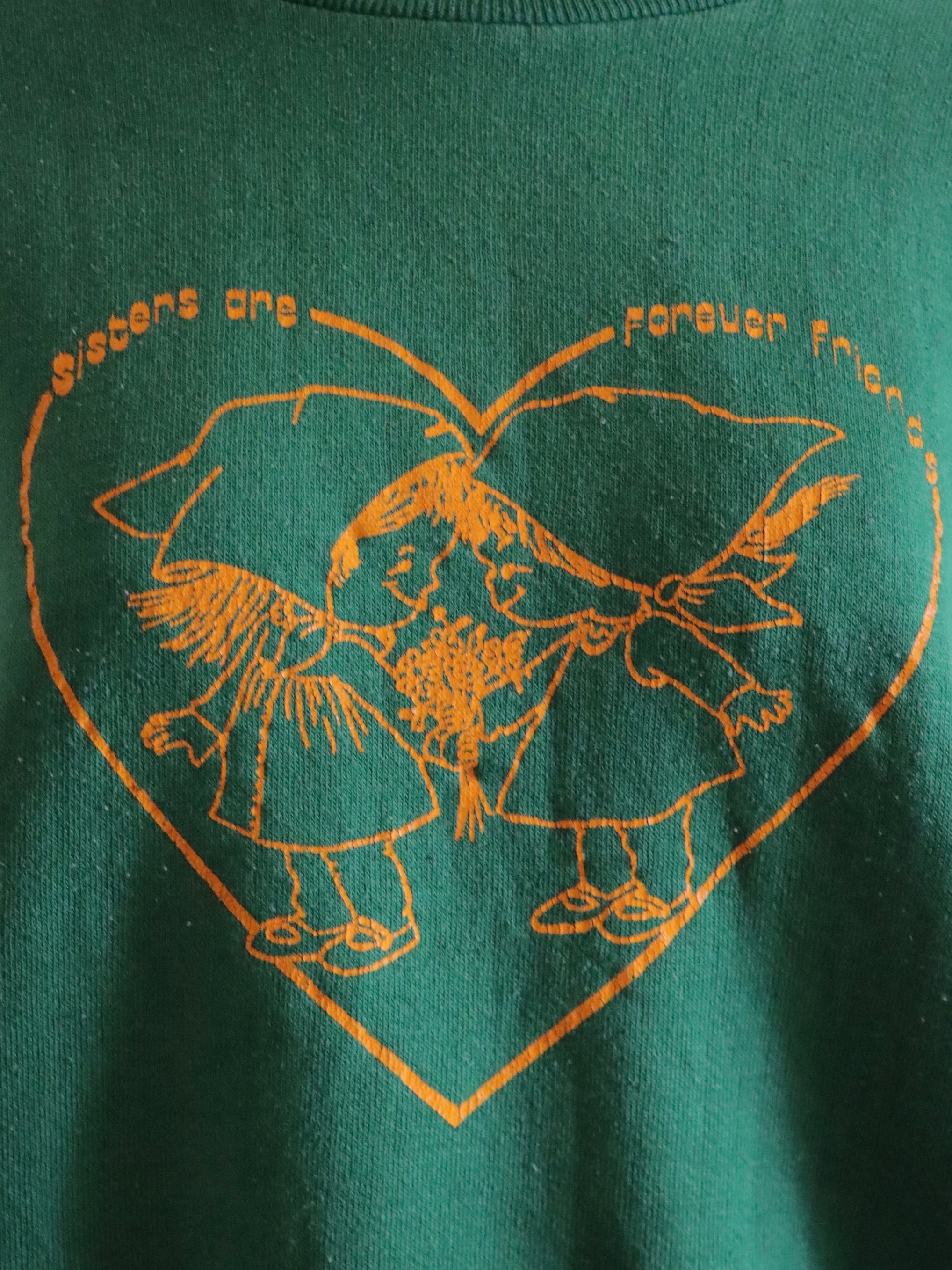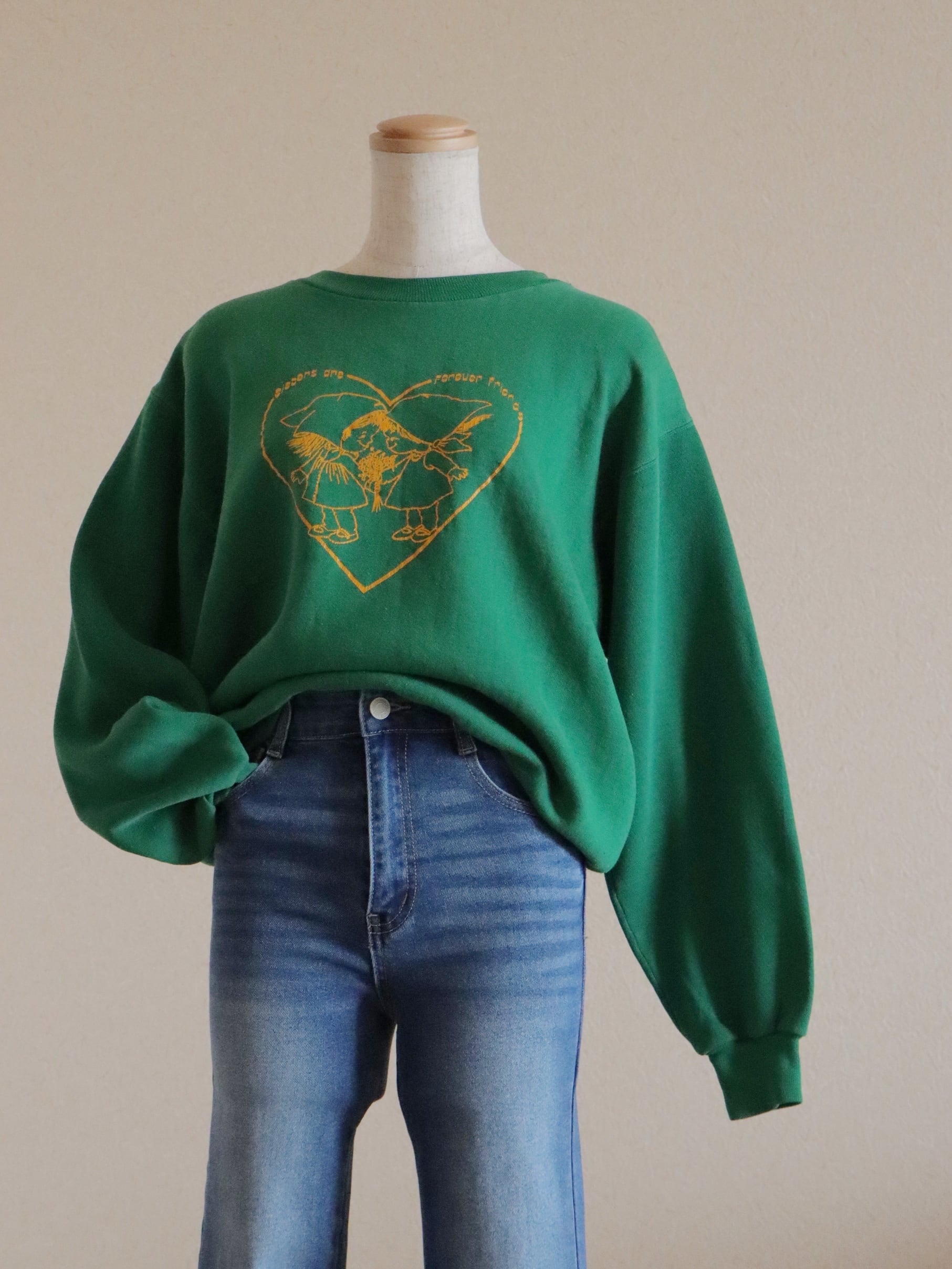 遊び心溢れるフロントのプリントが可愛い、70sのデザインスウェット。