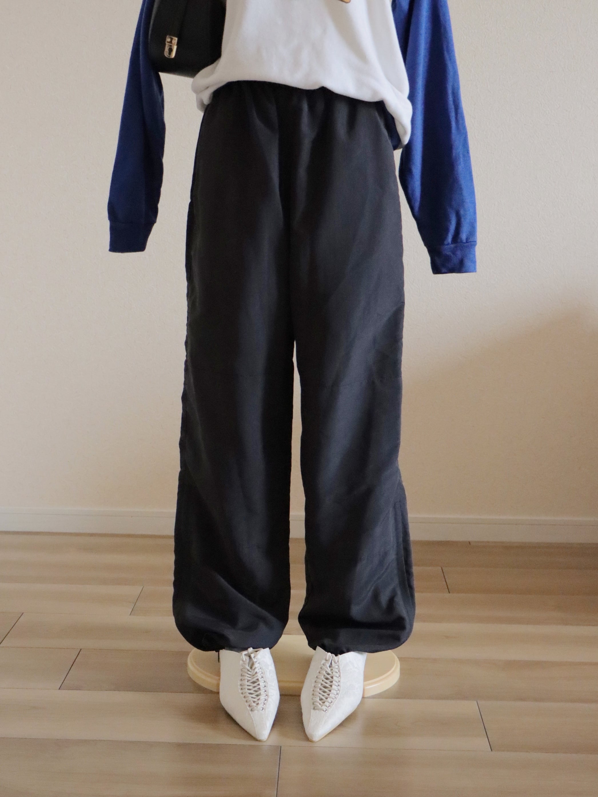 ●90s Nylon design black color easy pants