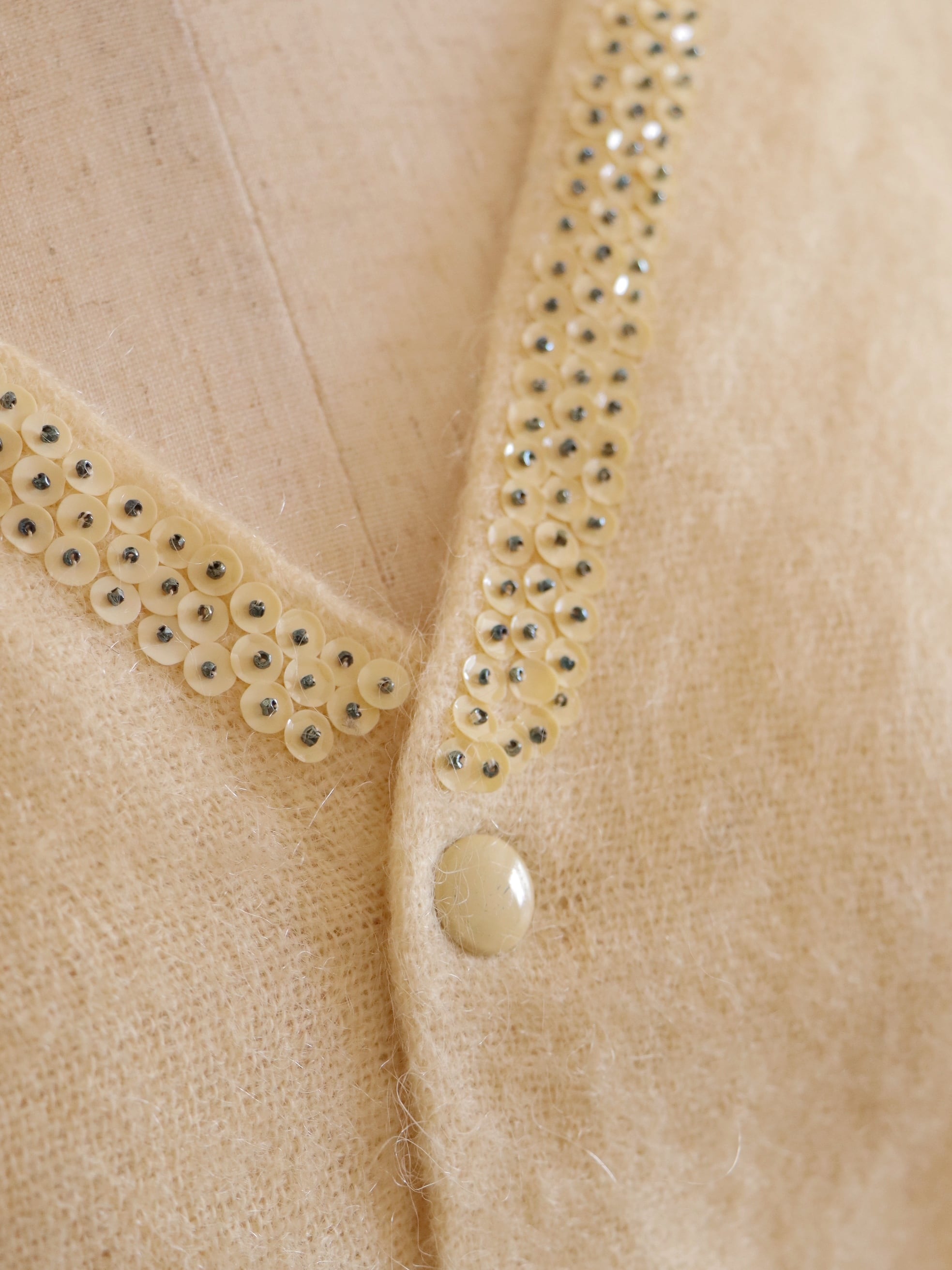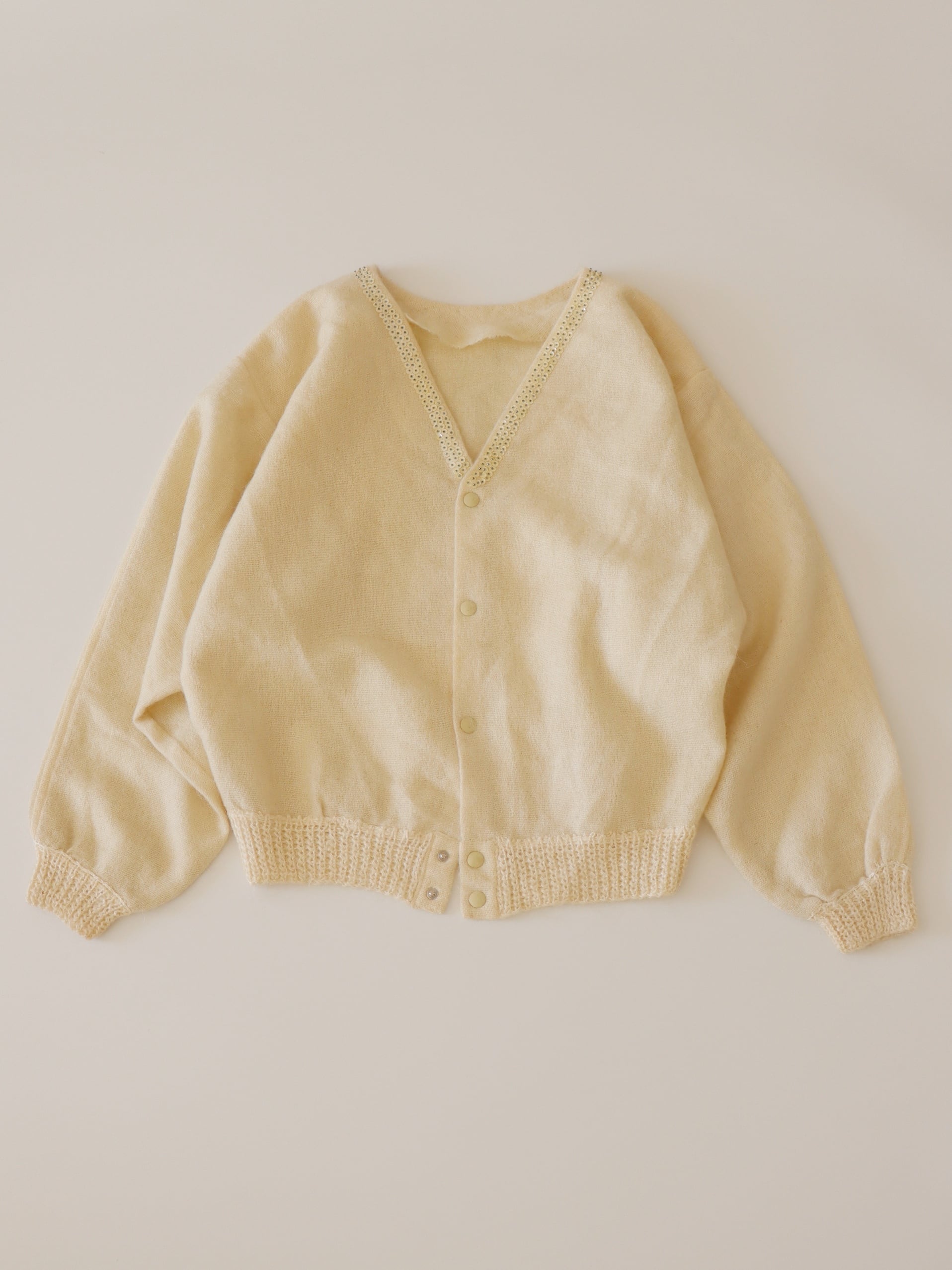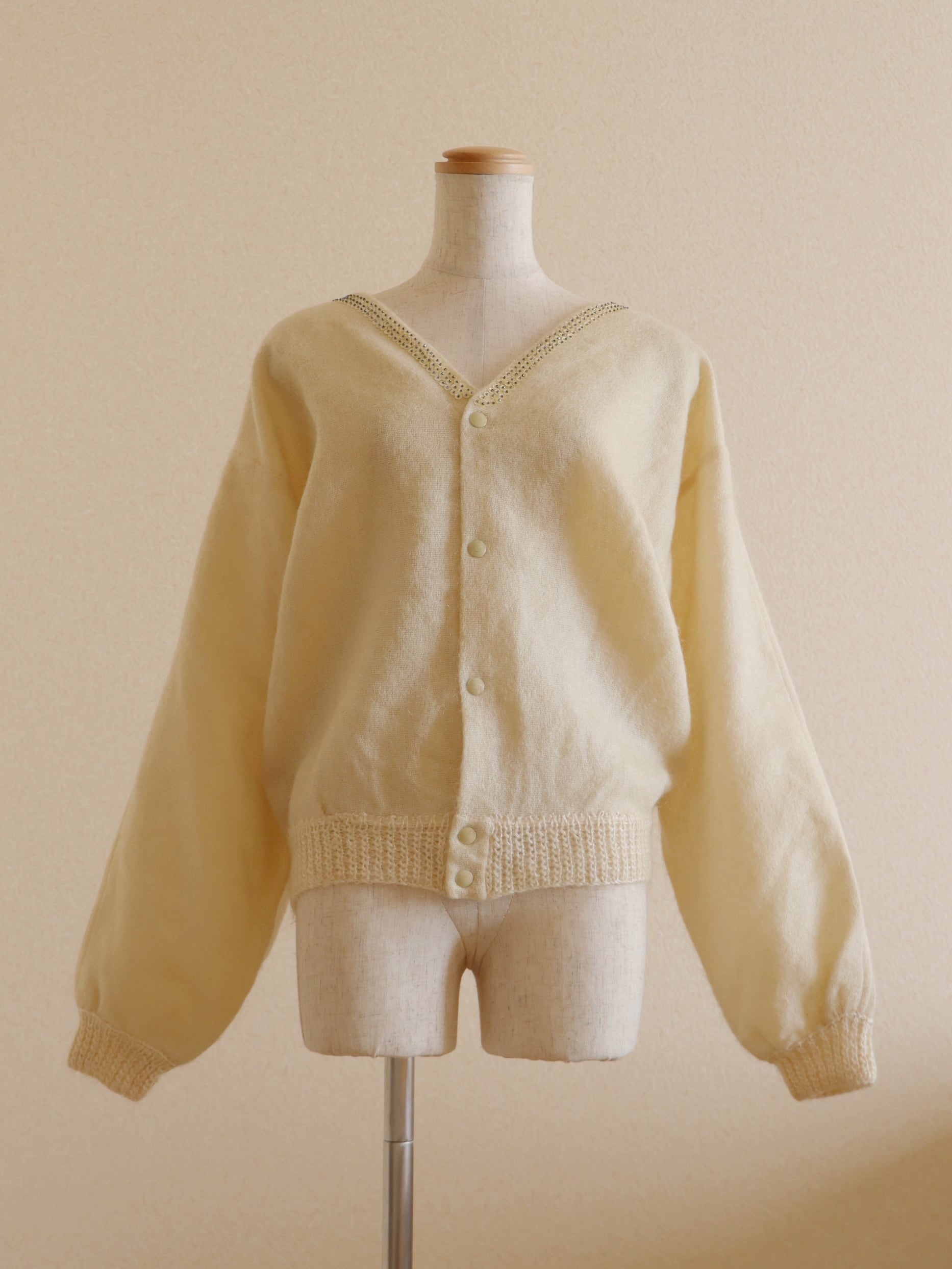 (表記がないため詳細不明ですが、モヘアが入っているような風合いの生地になります。あくまで参考程度にお考えください)