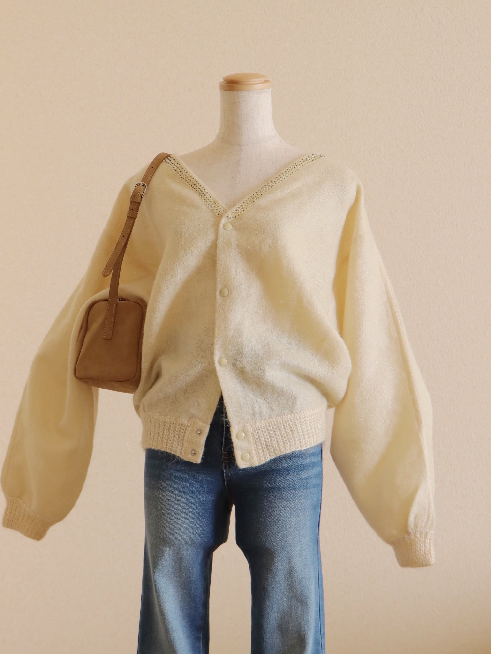 ふんわり柔らかで軽い生地を使用していますので、カーディガンのように羽織りやすく、アウターの中にご着用も可能です◎