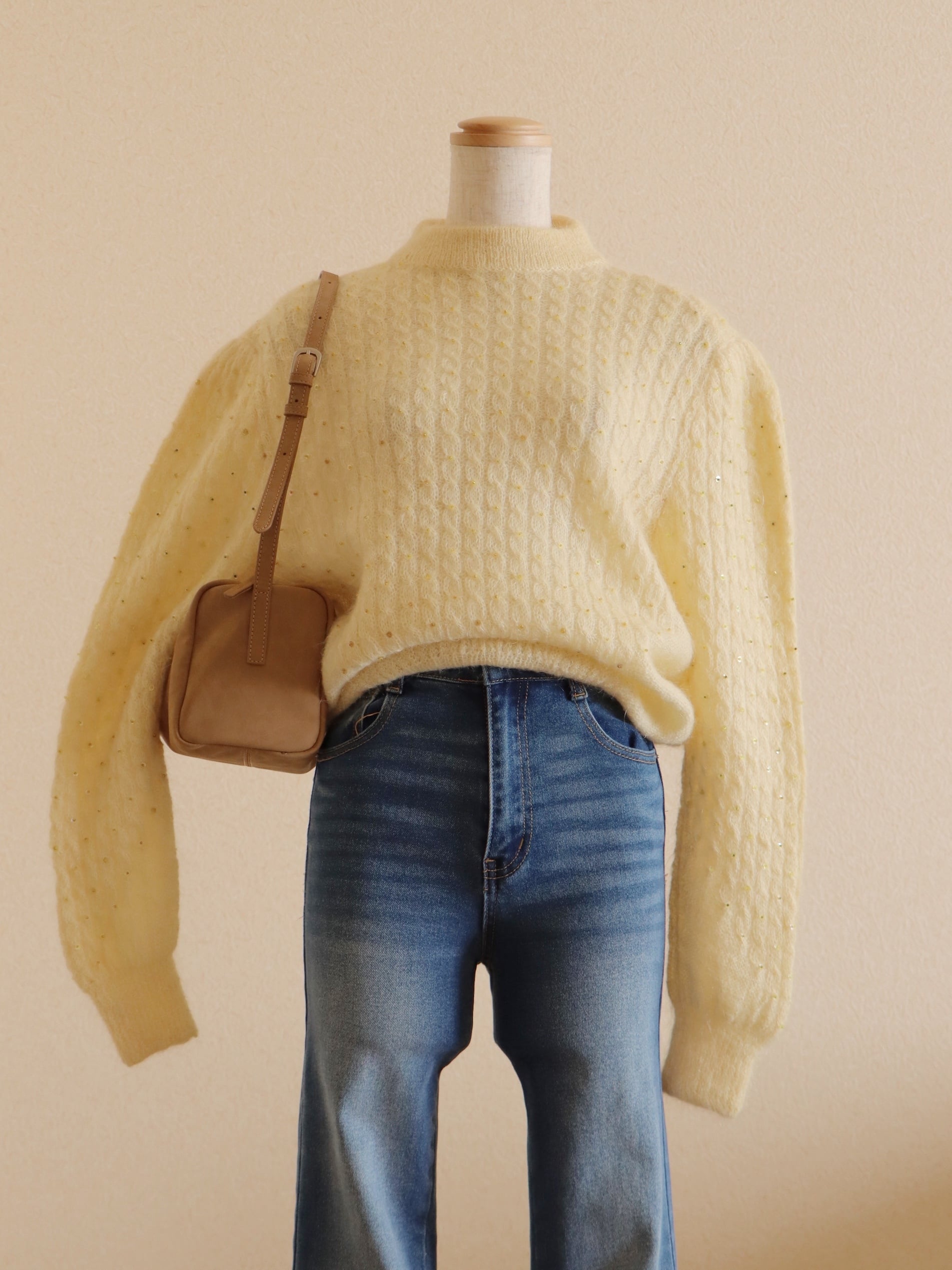 ●mohair & wool embroidery cable design sweater.