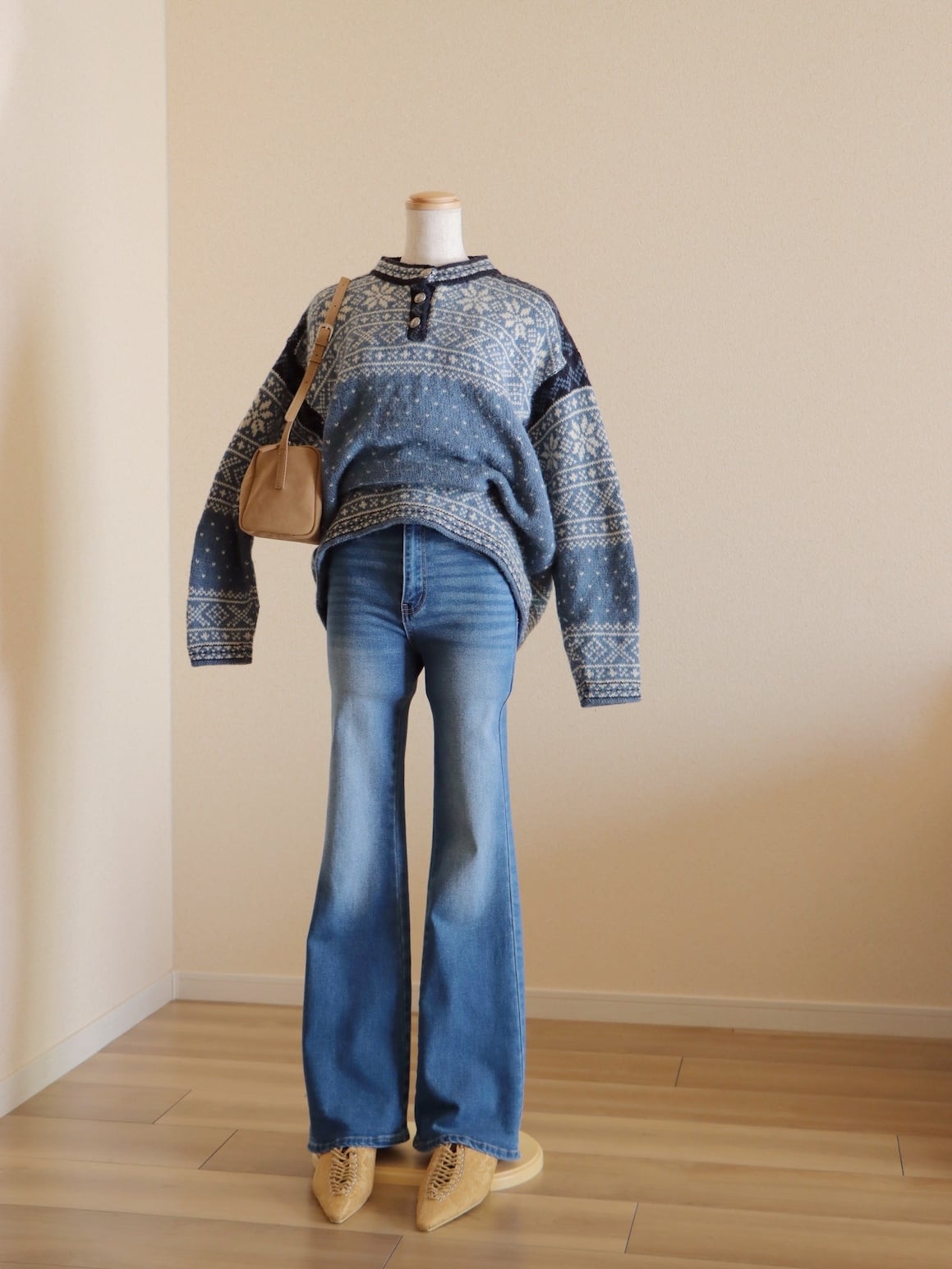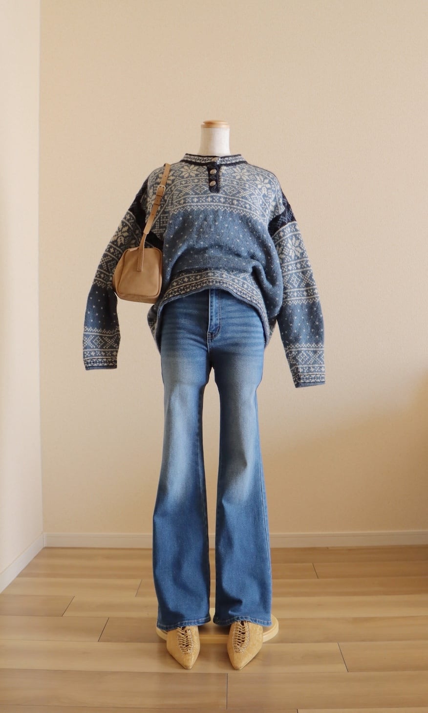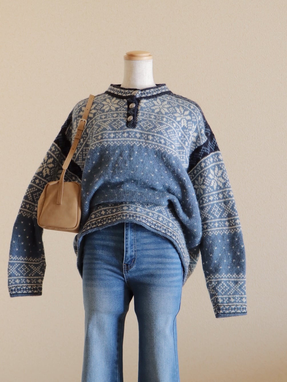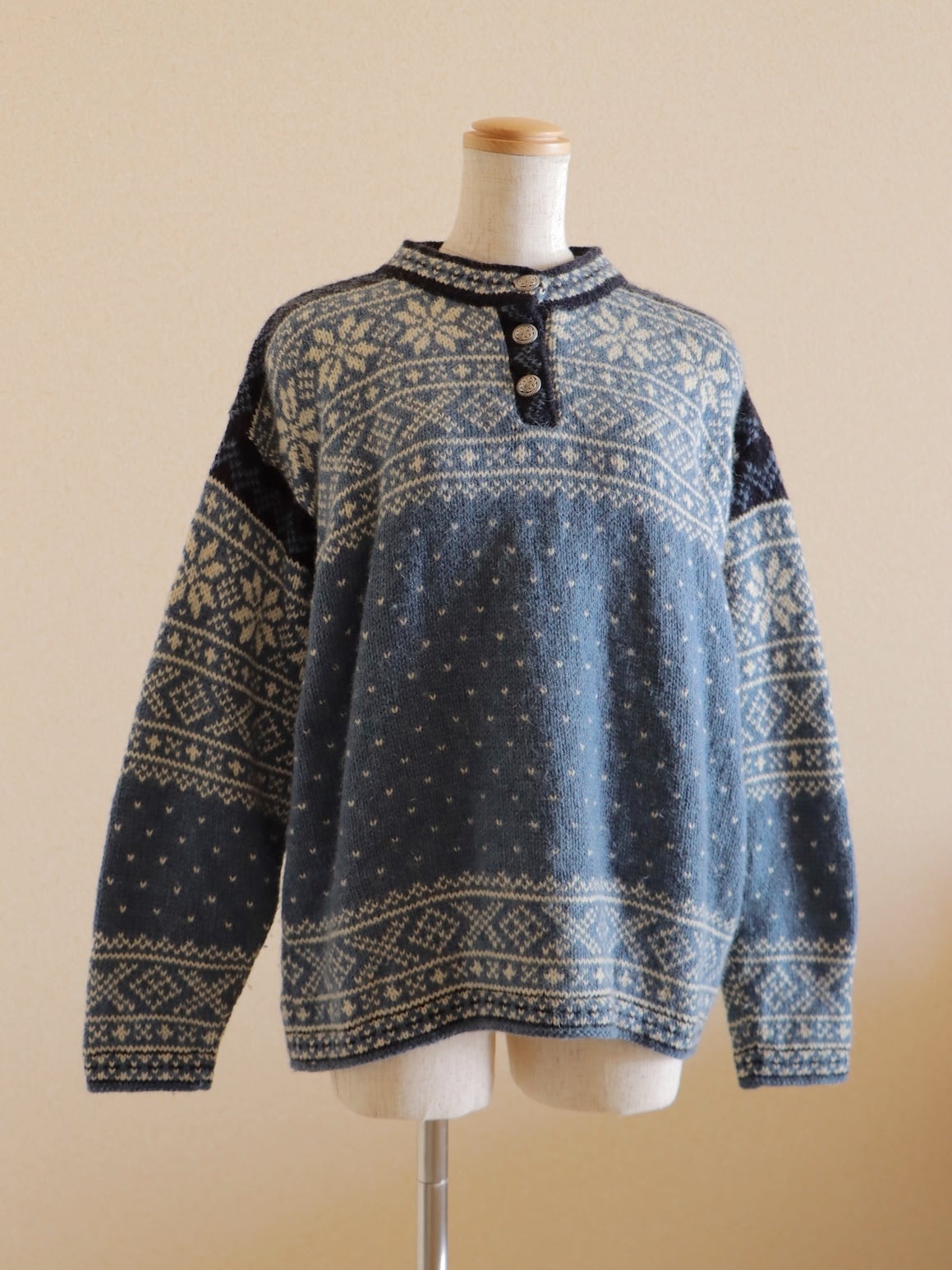 ●90s made in USA L.L.Bean blue color nordic sweater