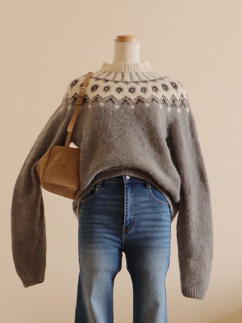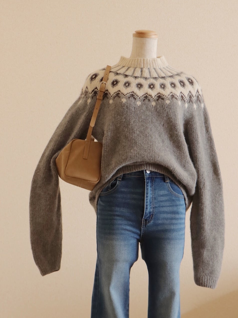 ●LAUREN RALPH LAUREN hand knit Angora nordic sweater.