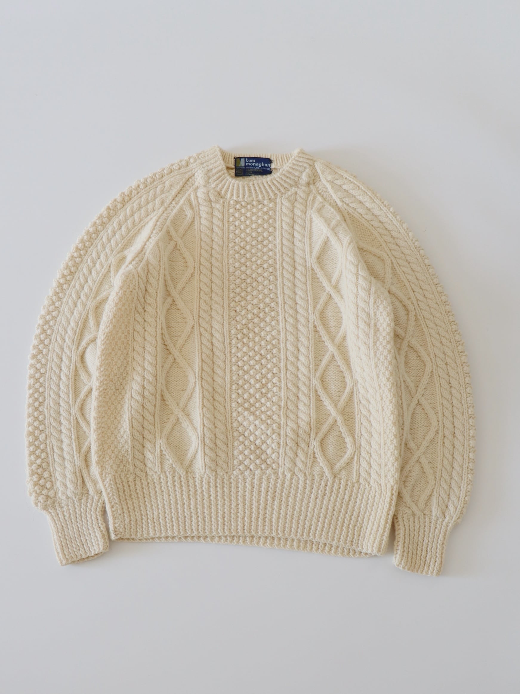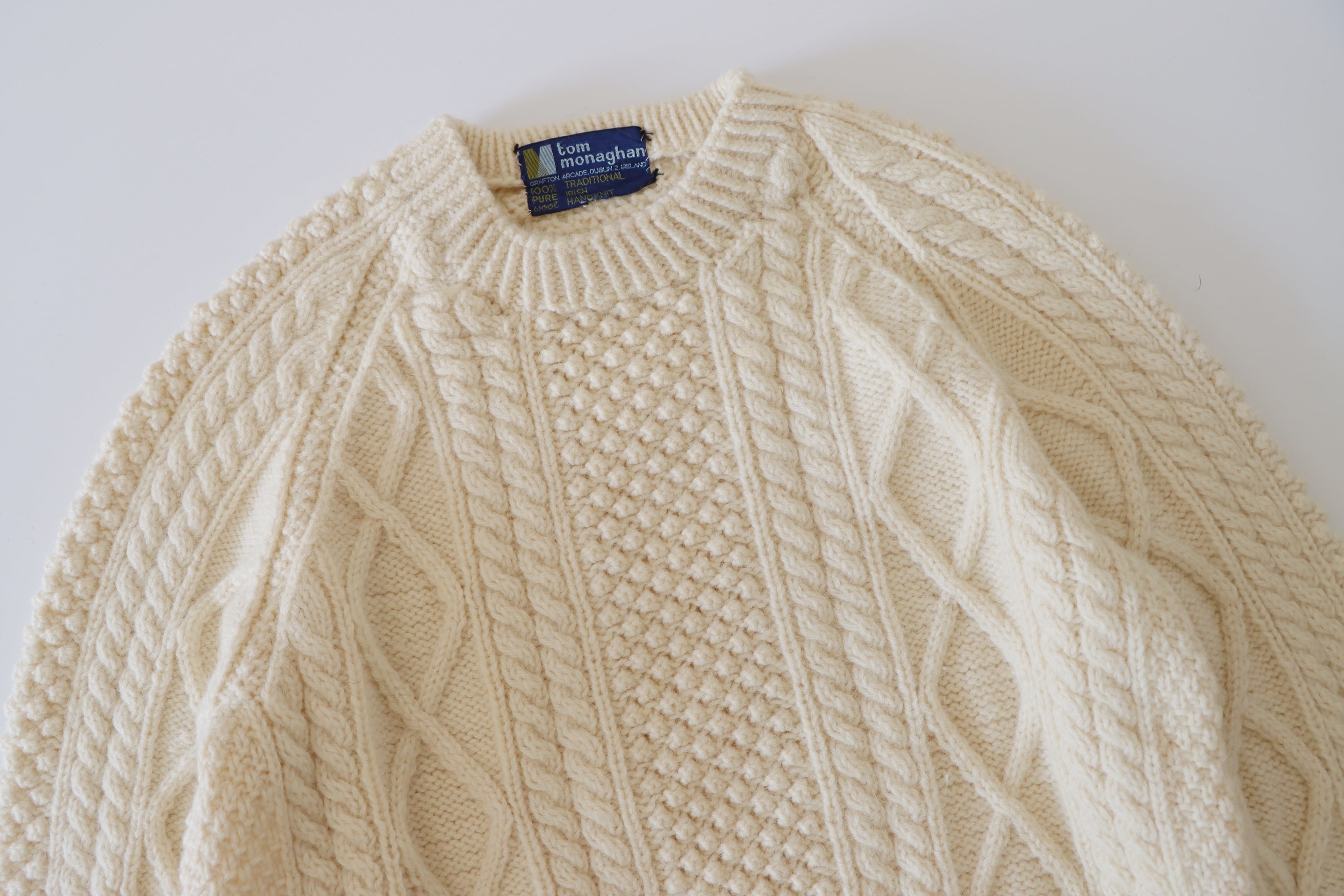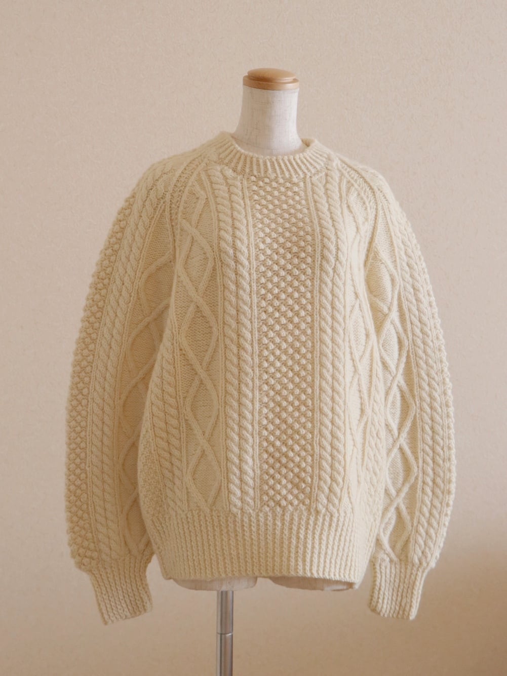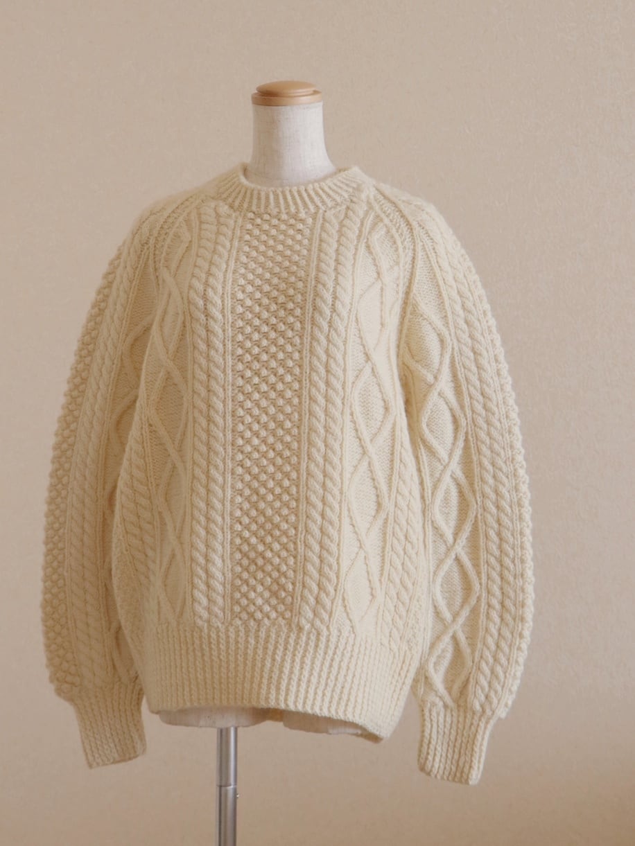 ●IRISH IRELAND hand knit pure wool 100% fisherman sweater(ivory)