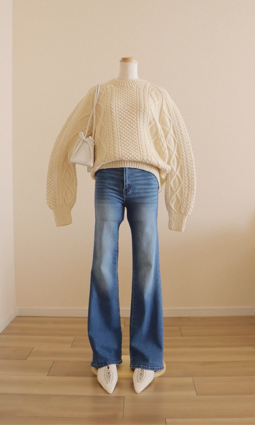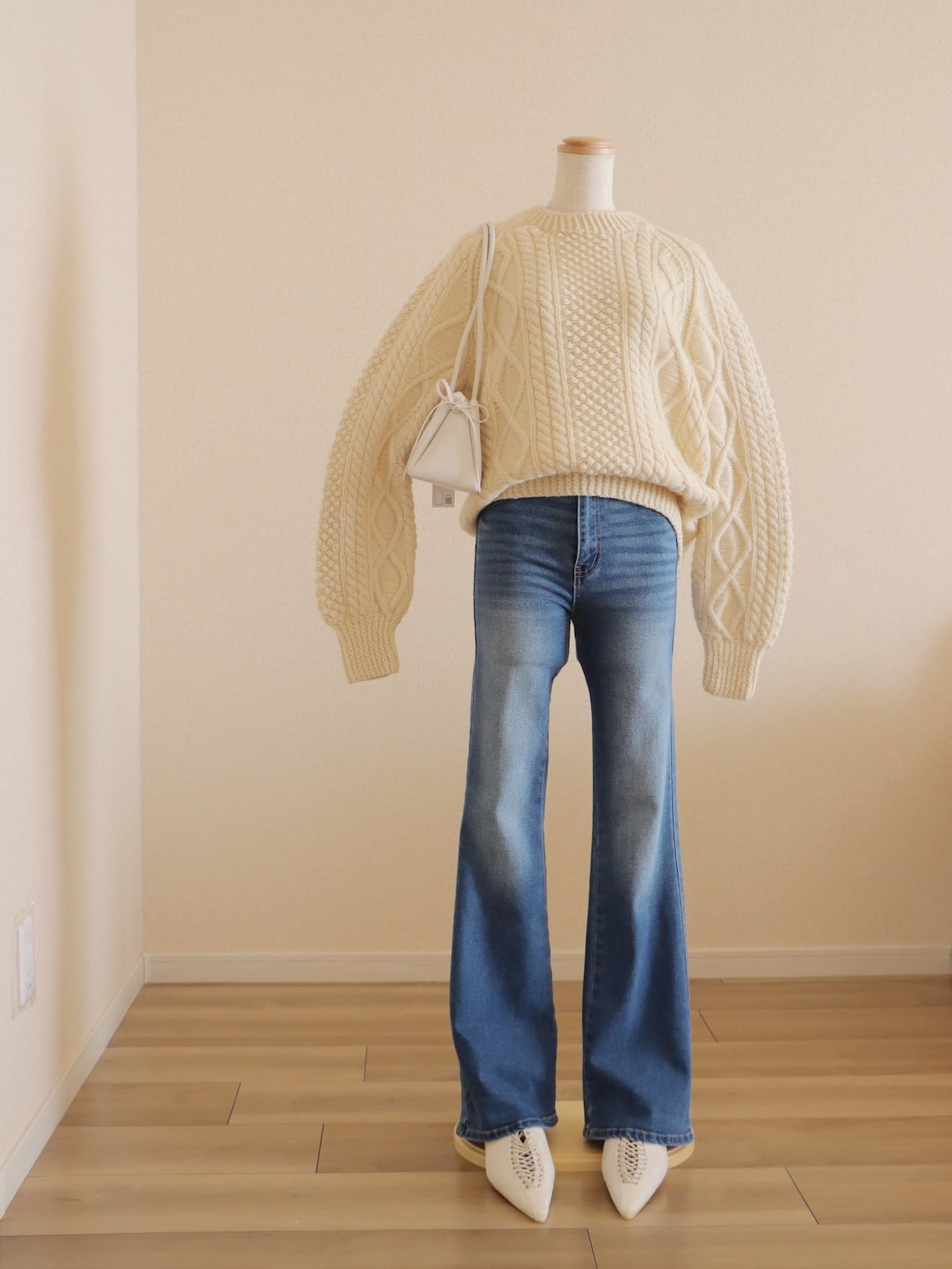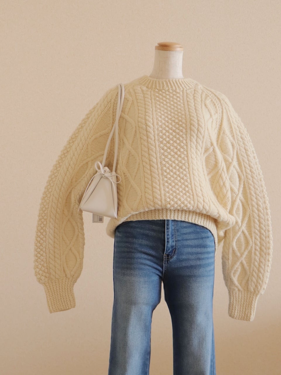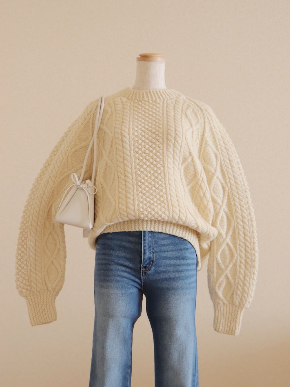 ●IRISH IRELAND hand knit pure wool 100% fisherman sweater(ivory)
