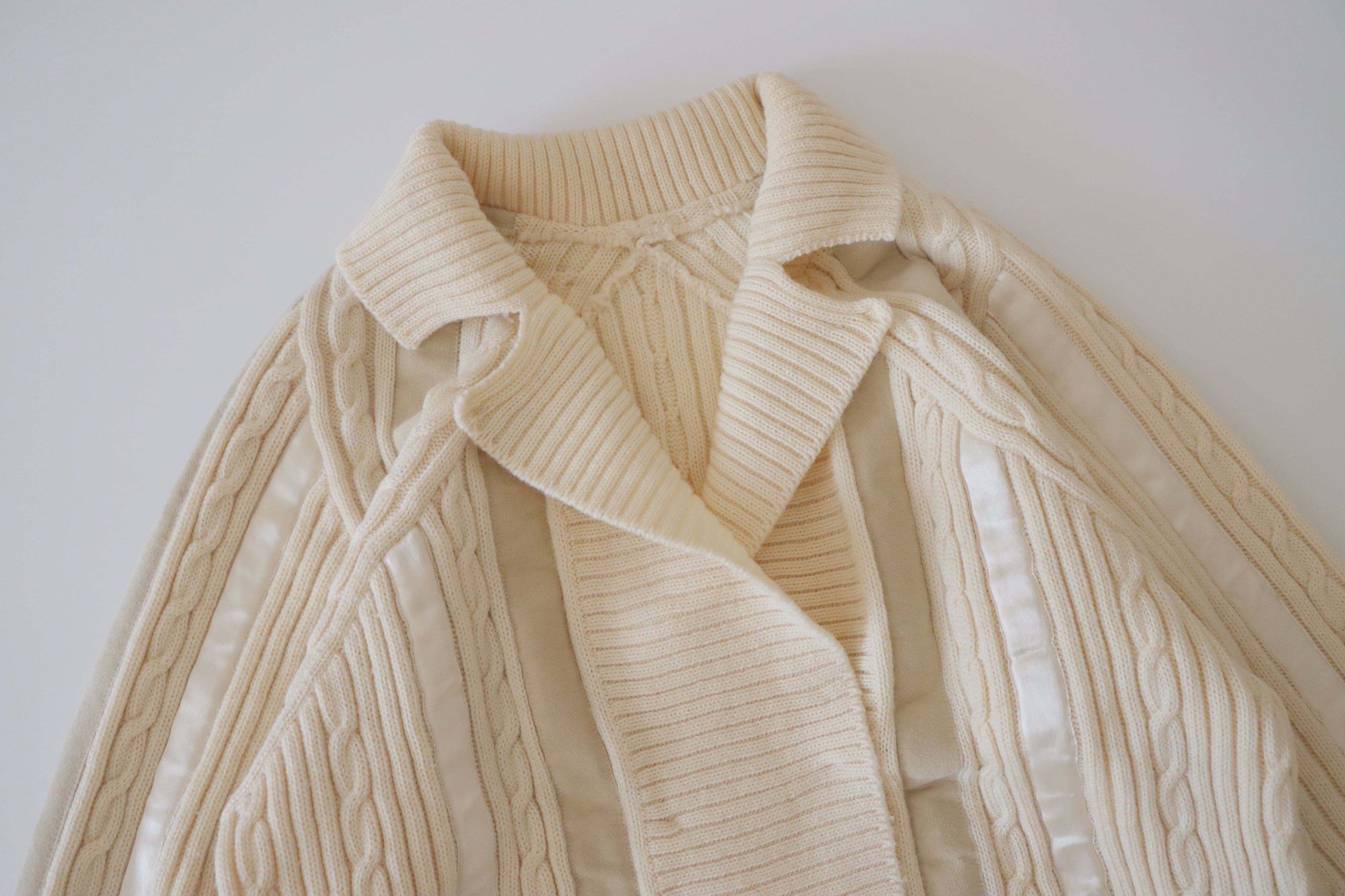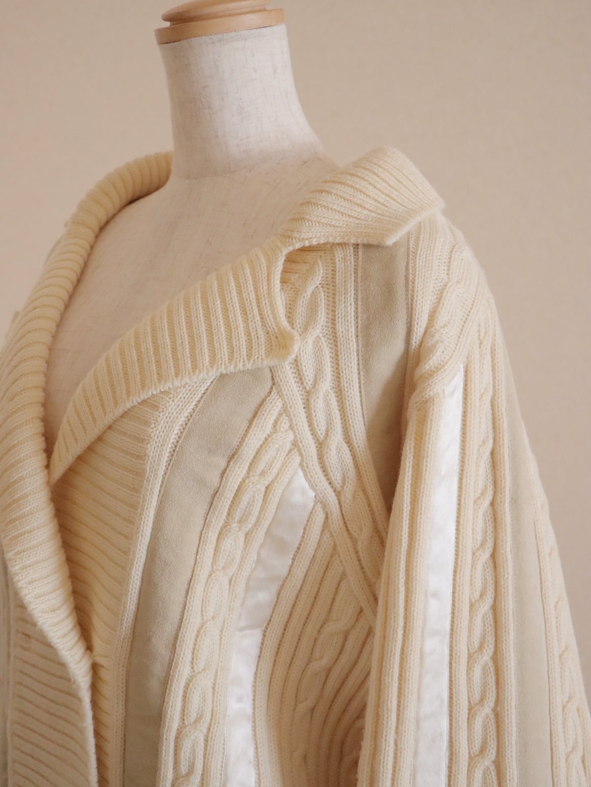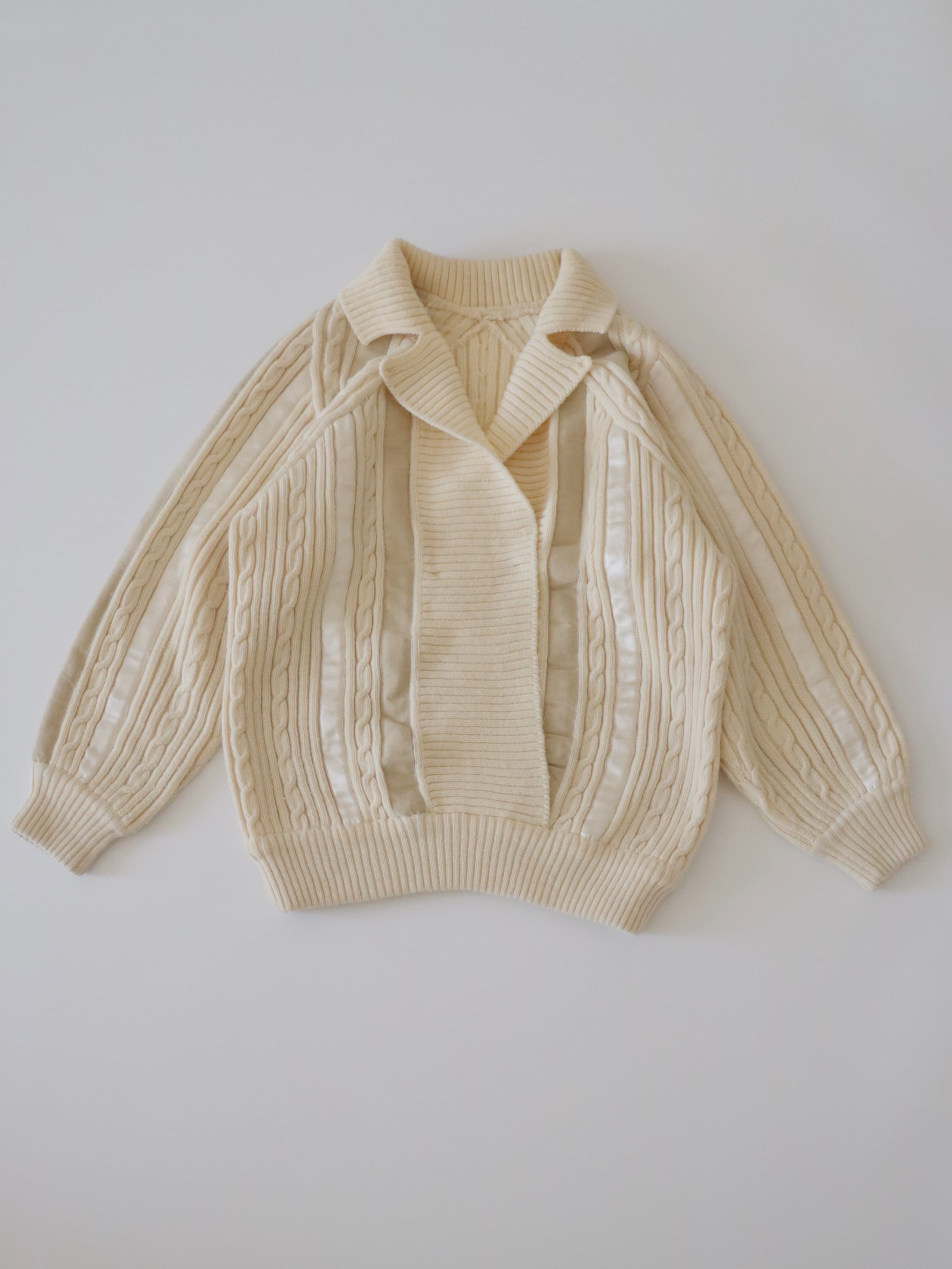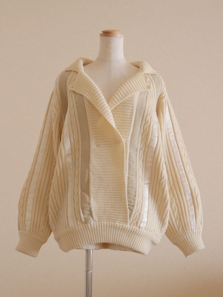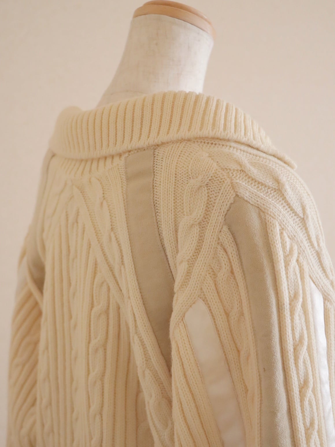 ●suede leather patchwork detail wool cable sweater.