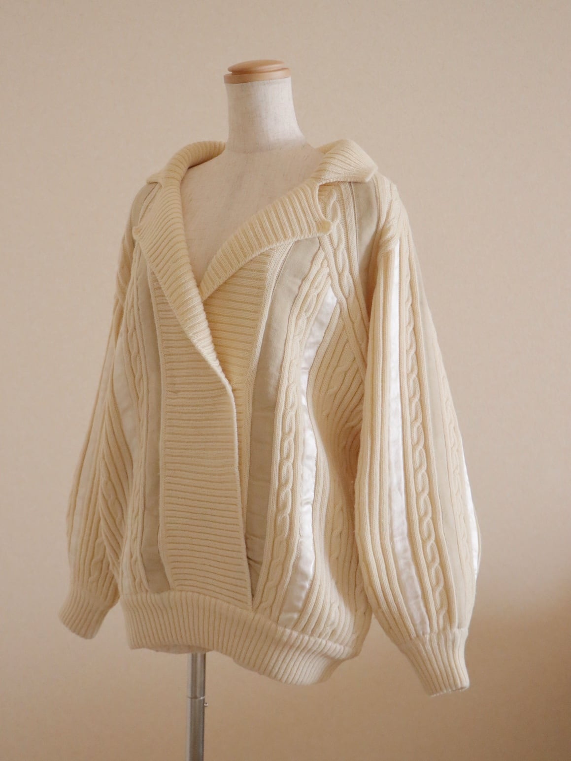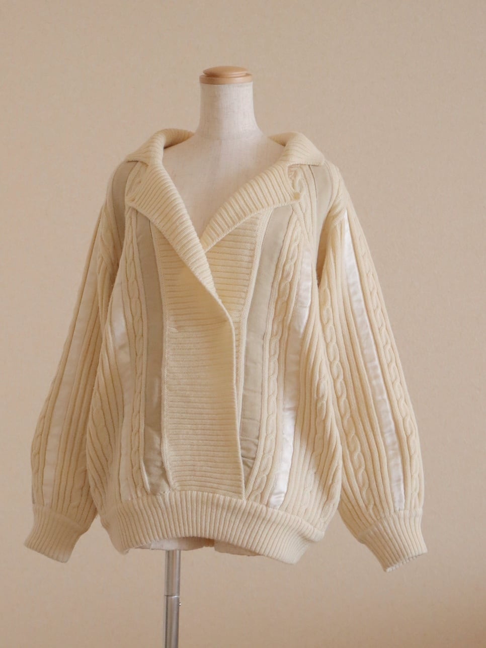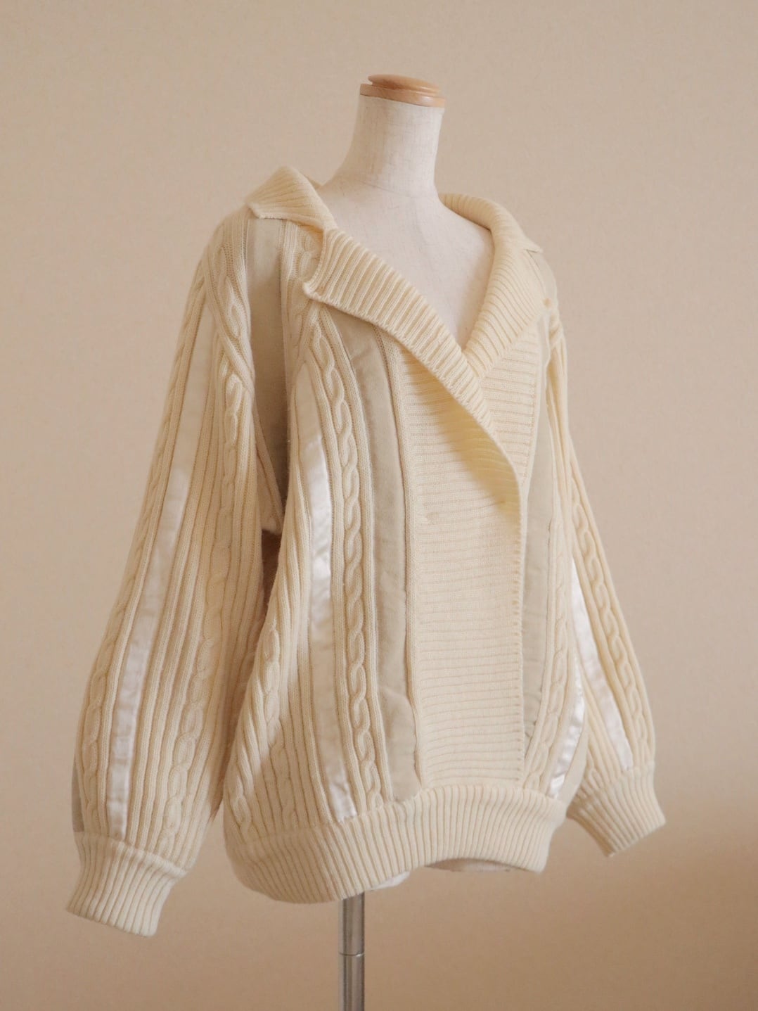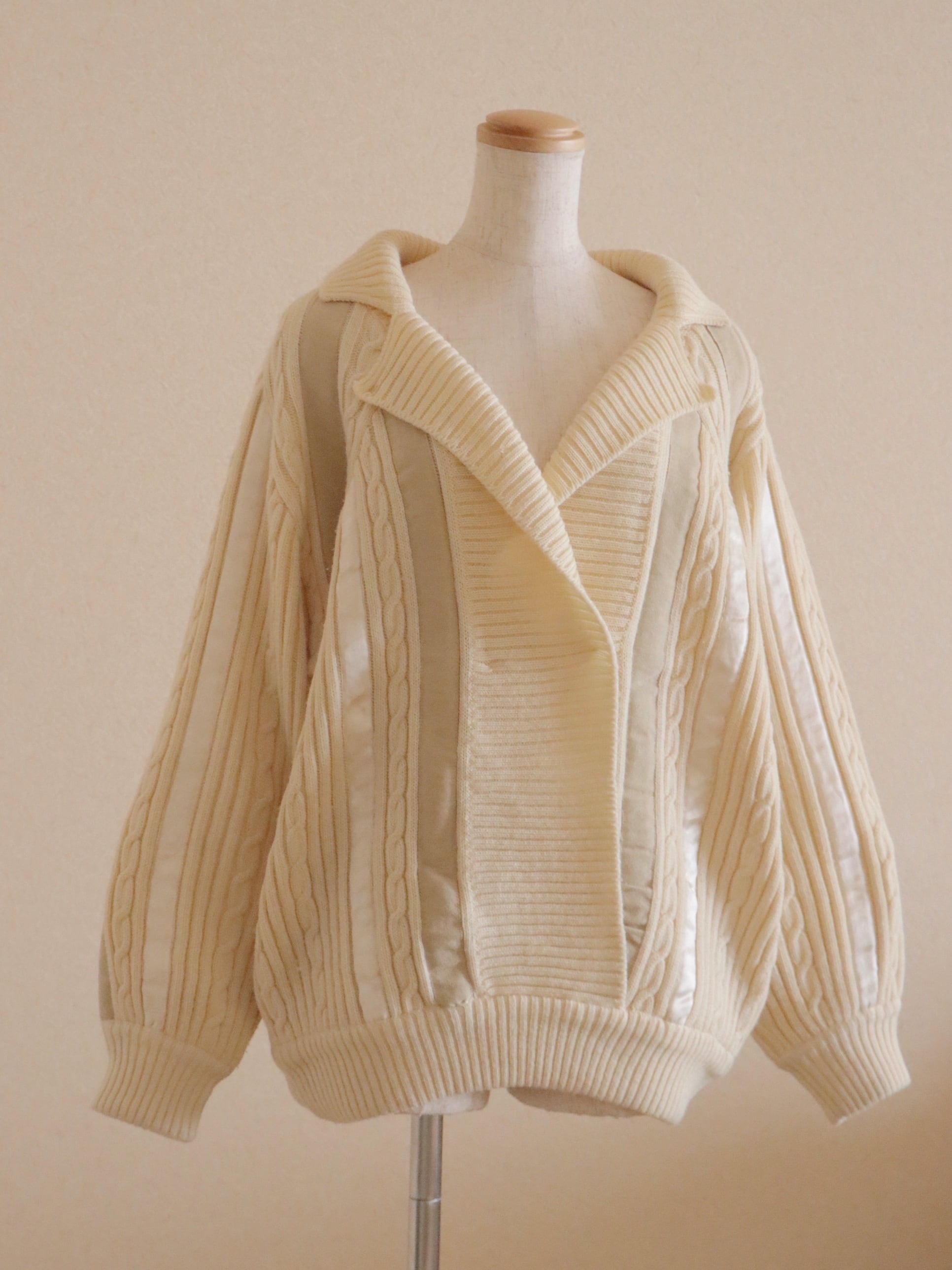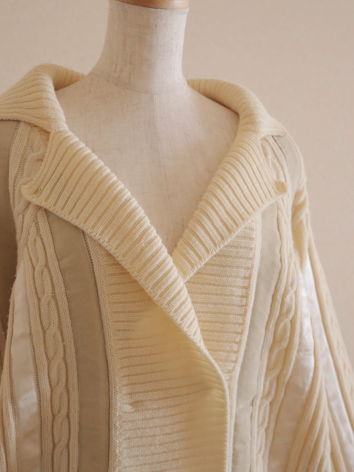 ●suede leather patchwork detail wool cable sweater.