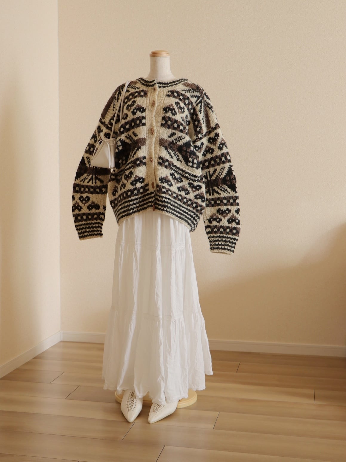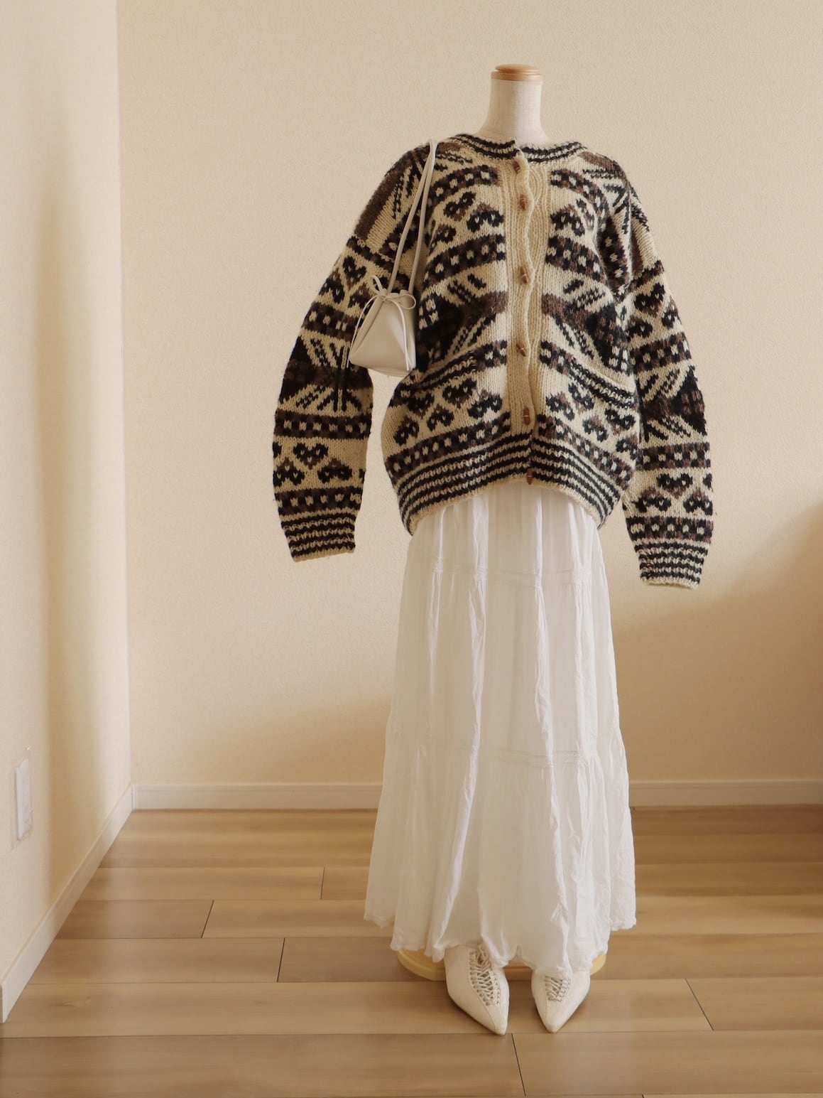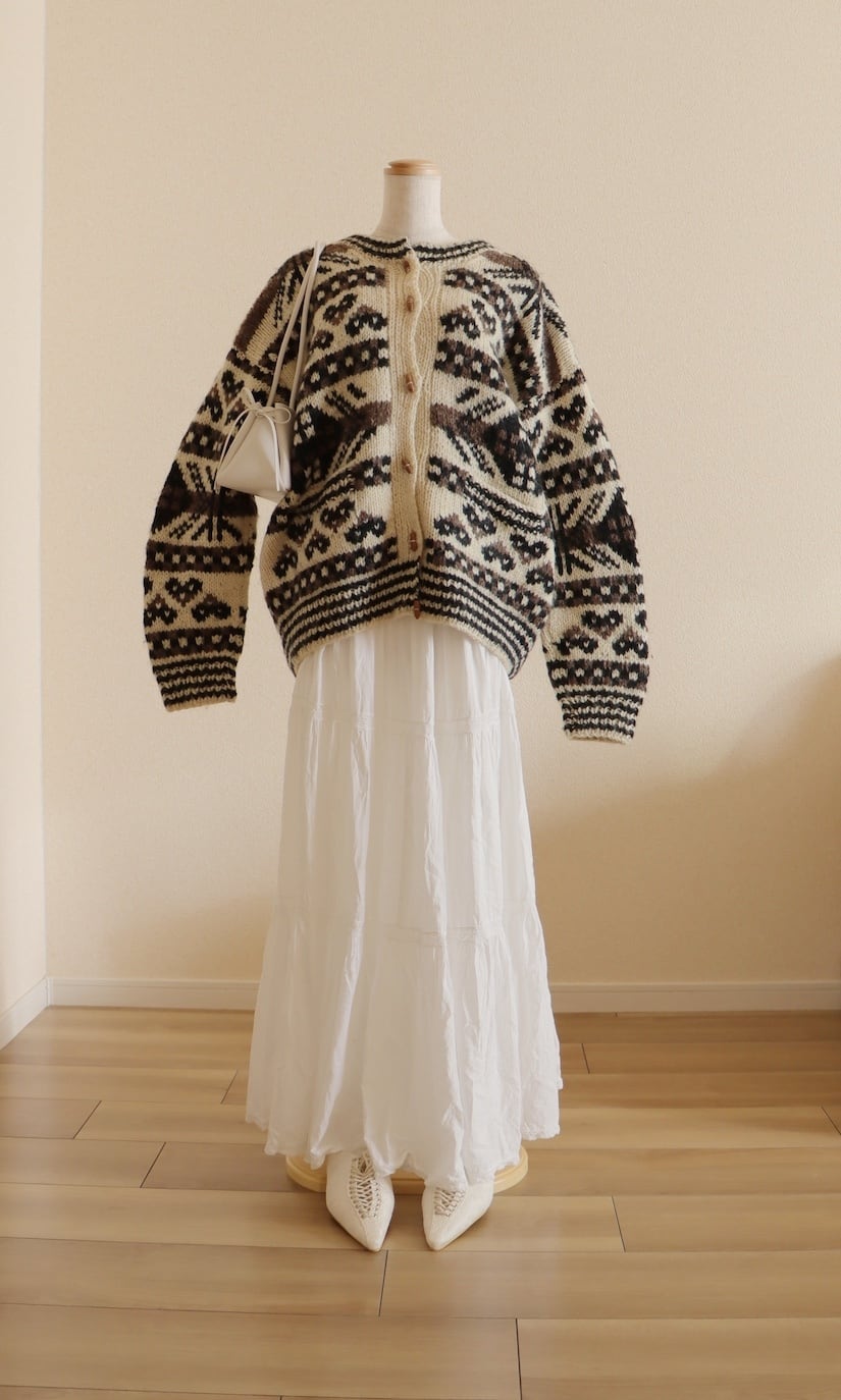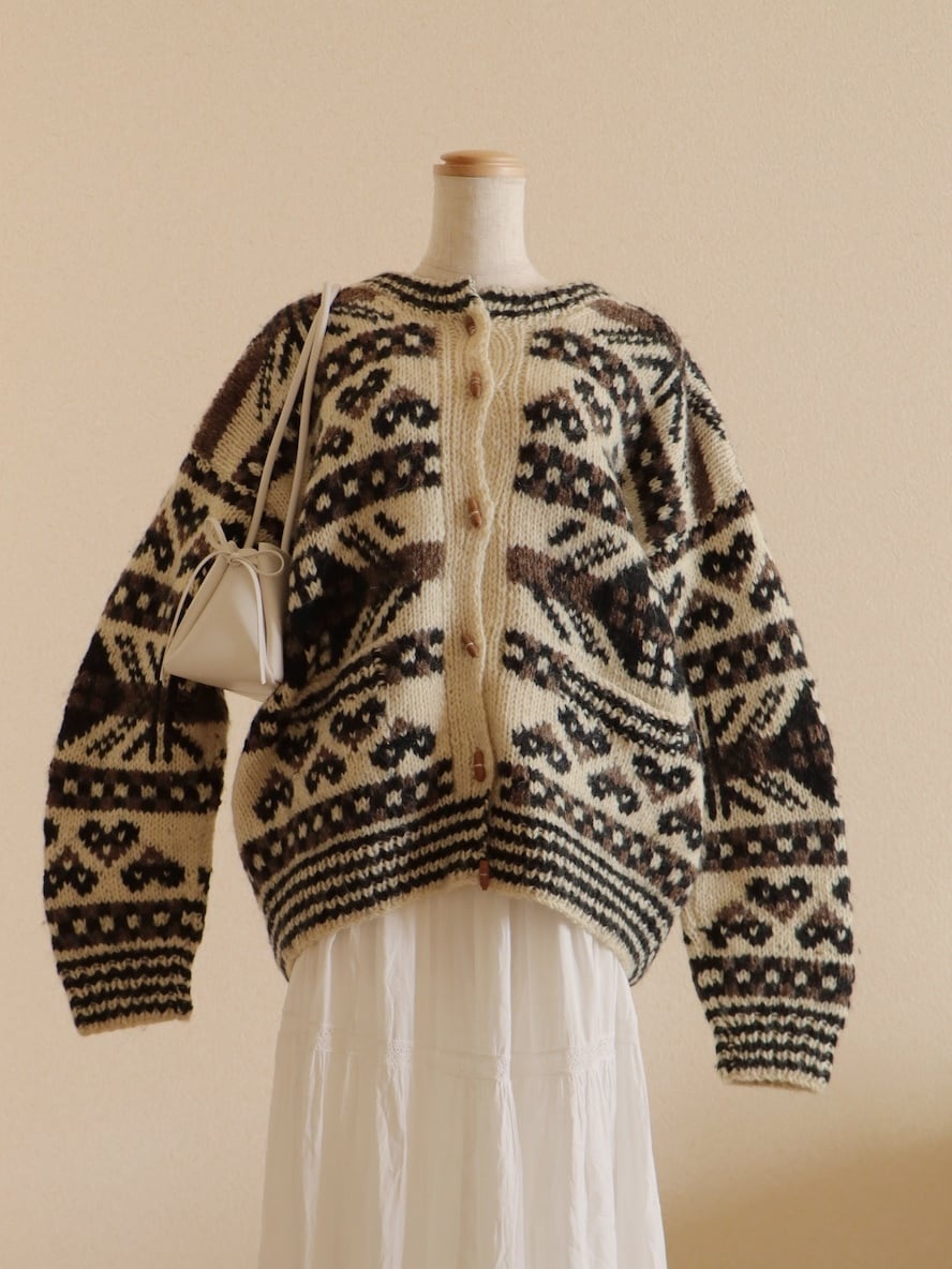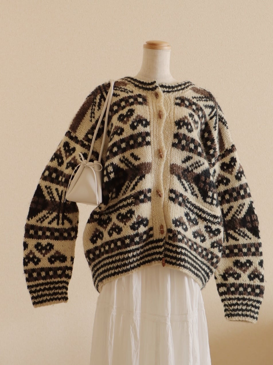●wood button hand knitted wool nordic cardigan jacket