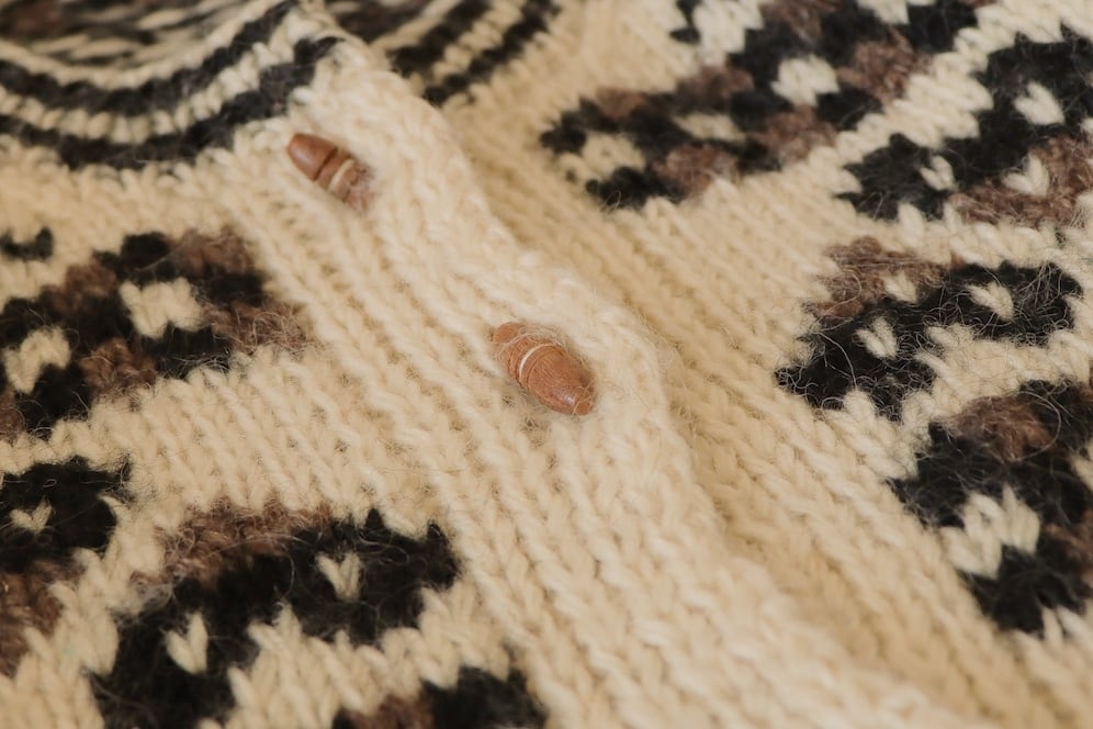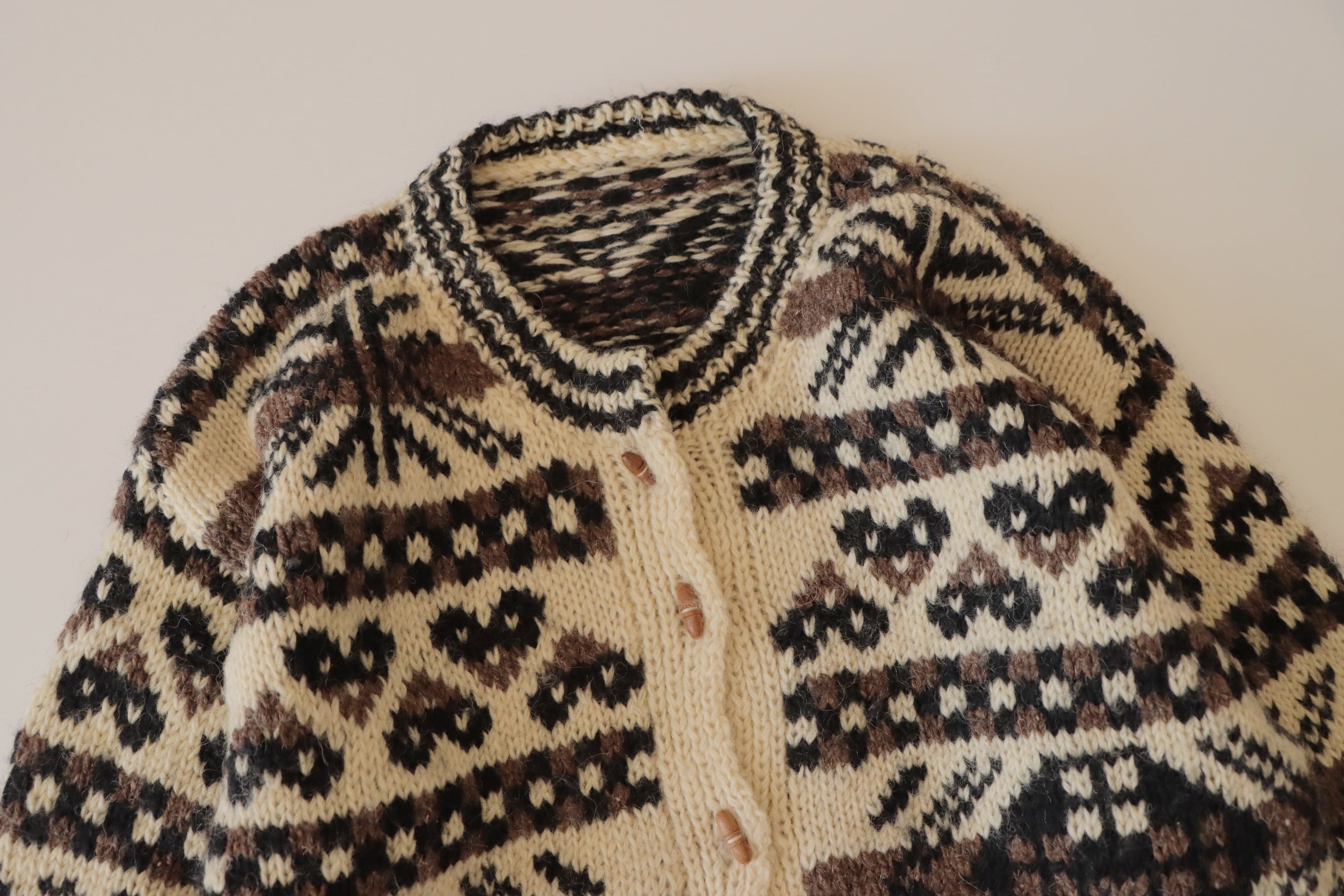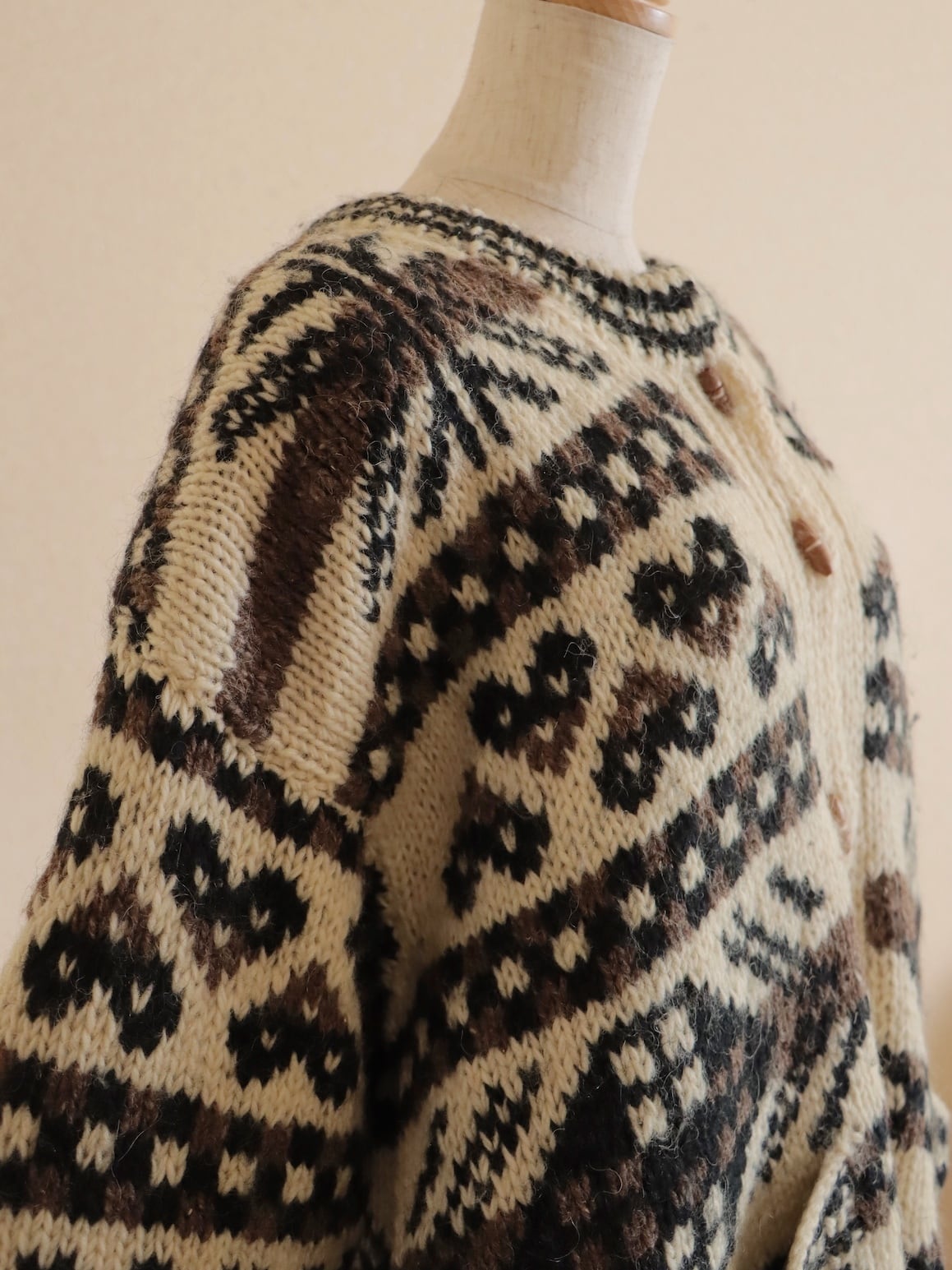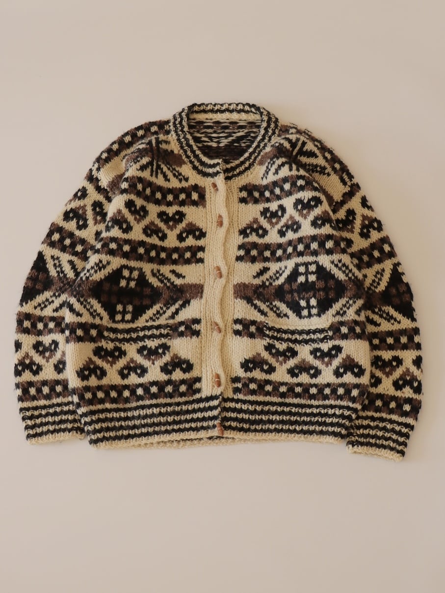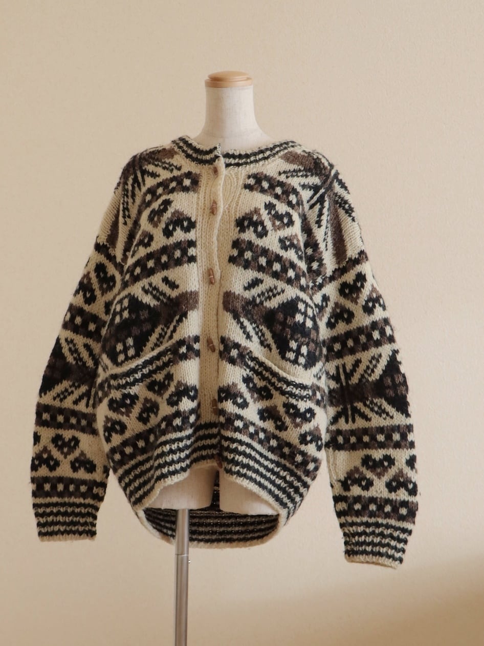 ●wood button hand knitted wool nordic cardigan jacket.