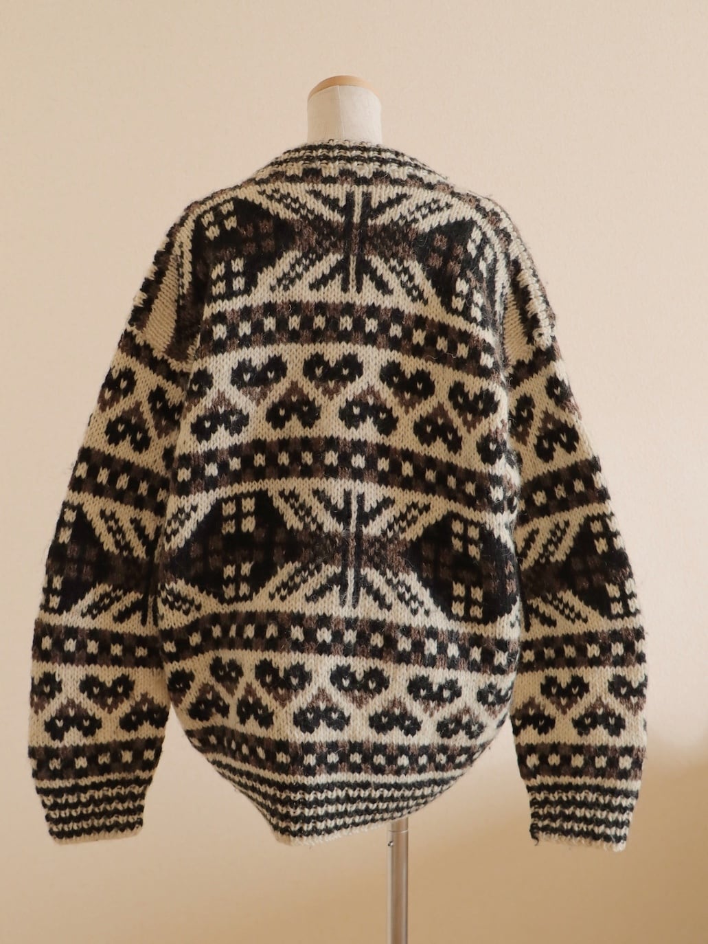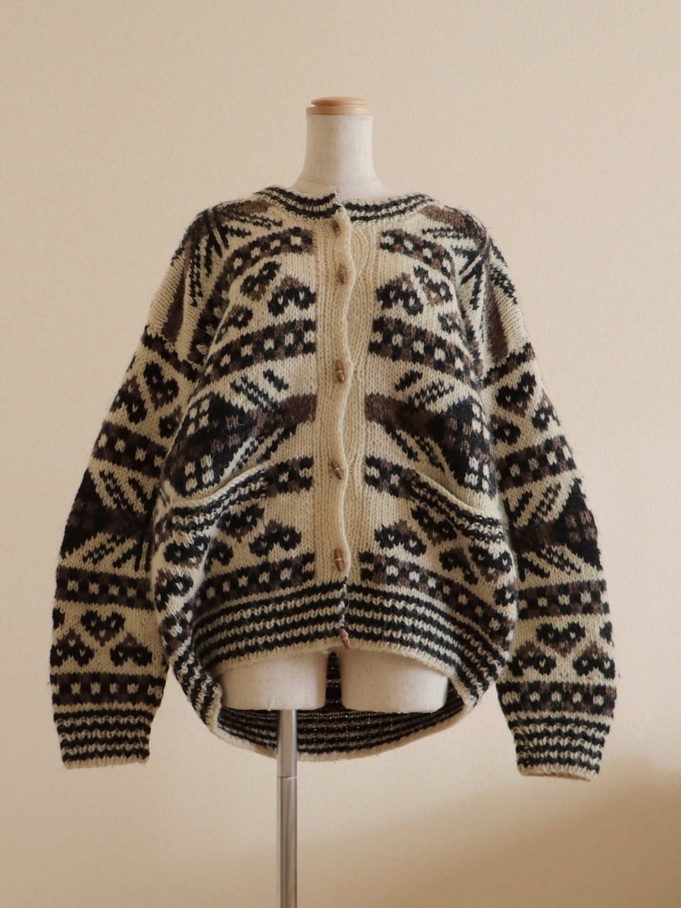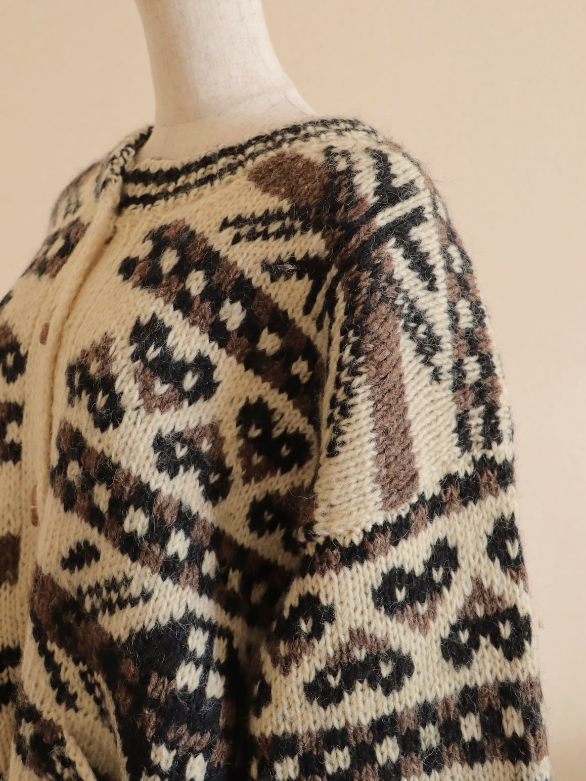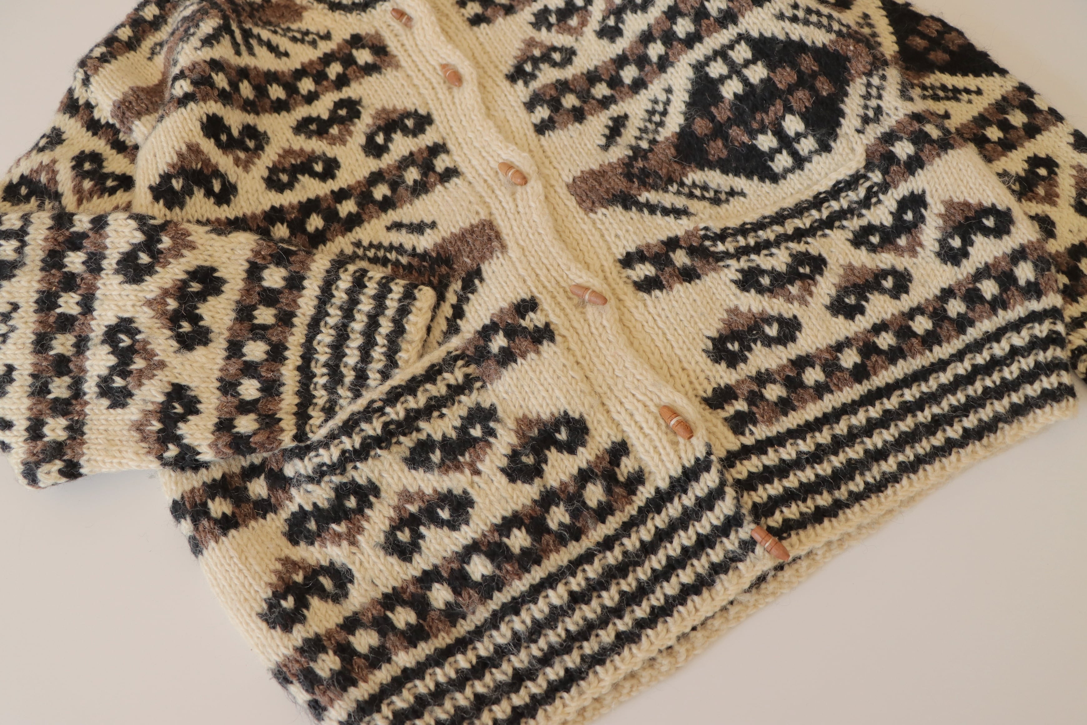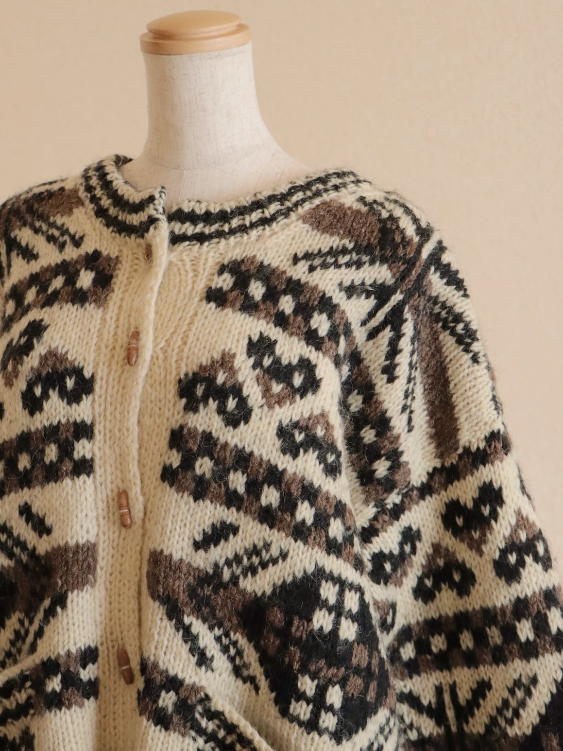 ●wood button hand knitted wool nordic cardigan jacket.