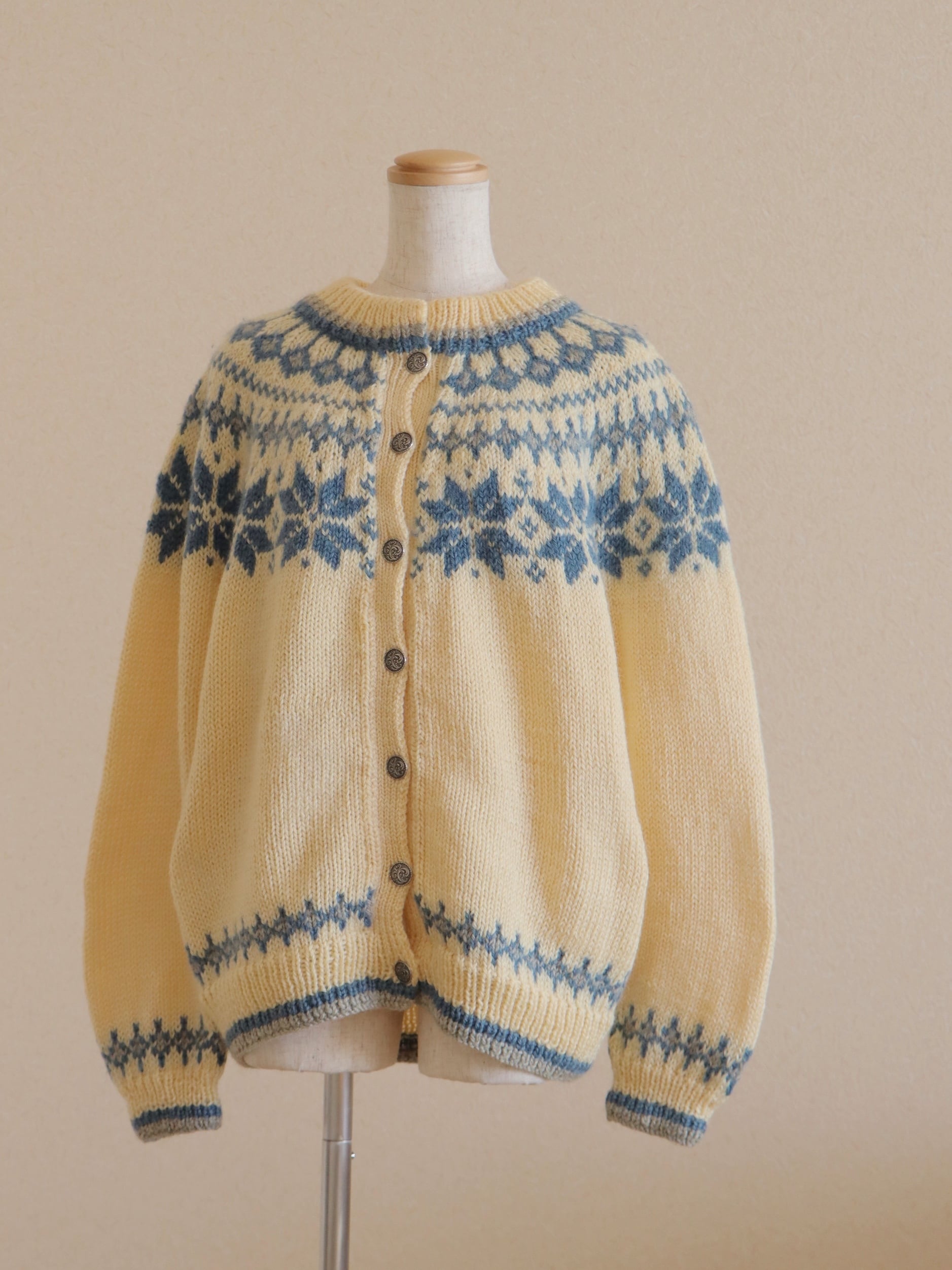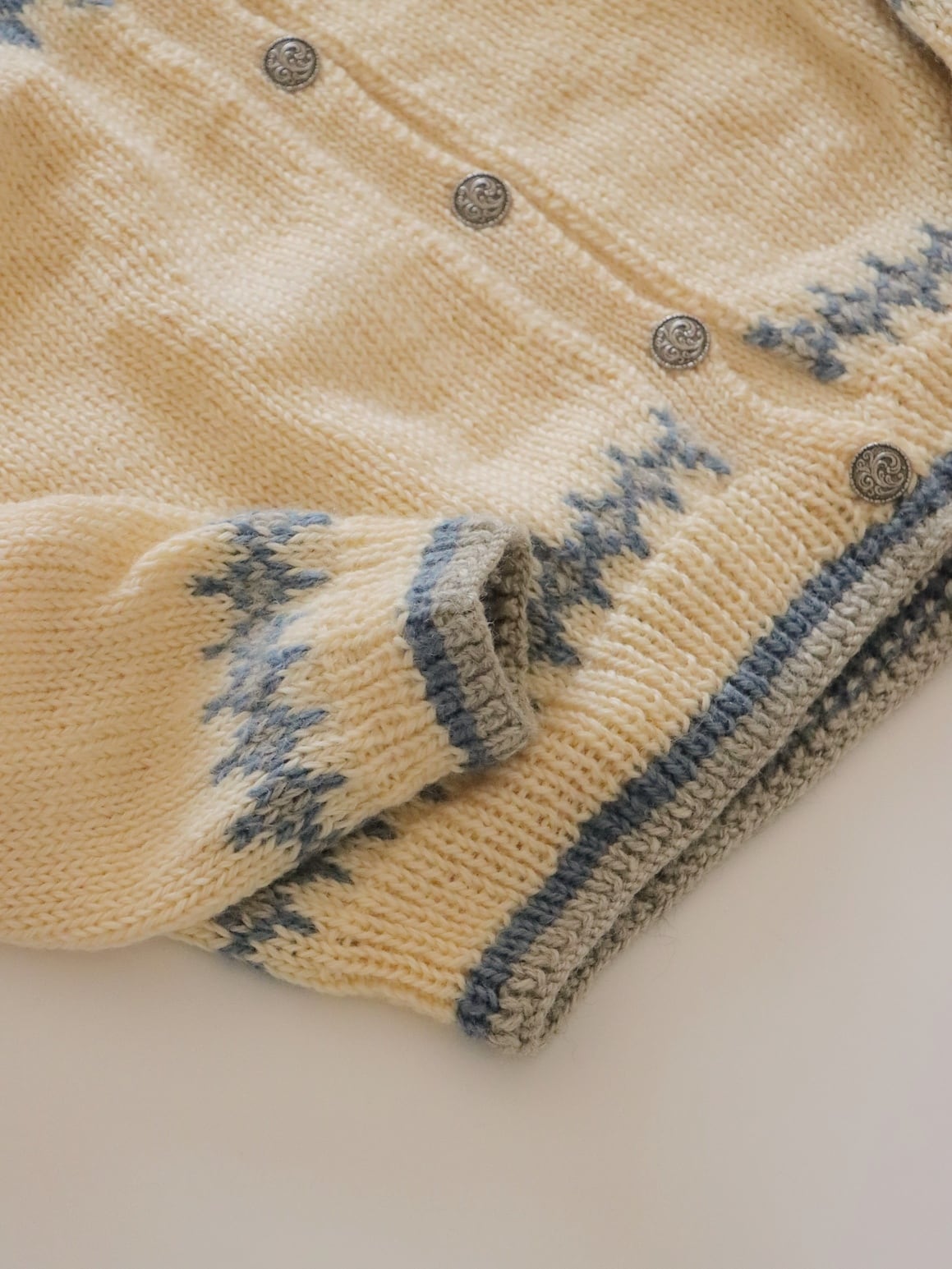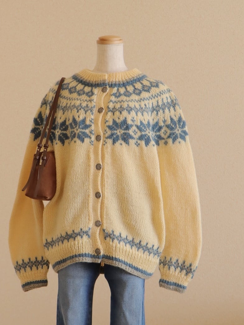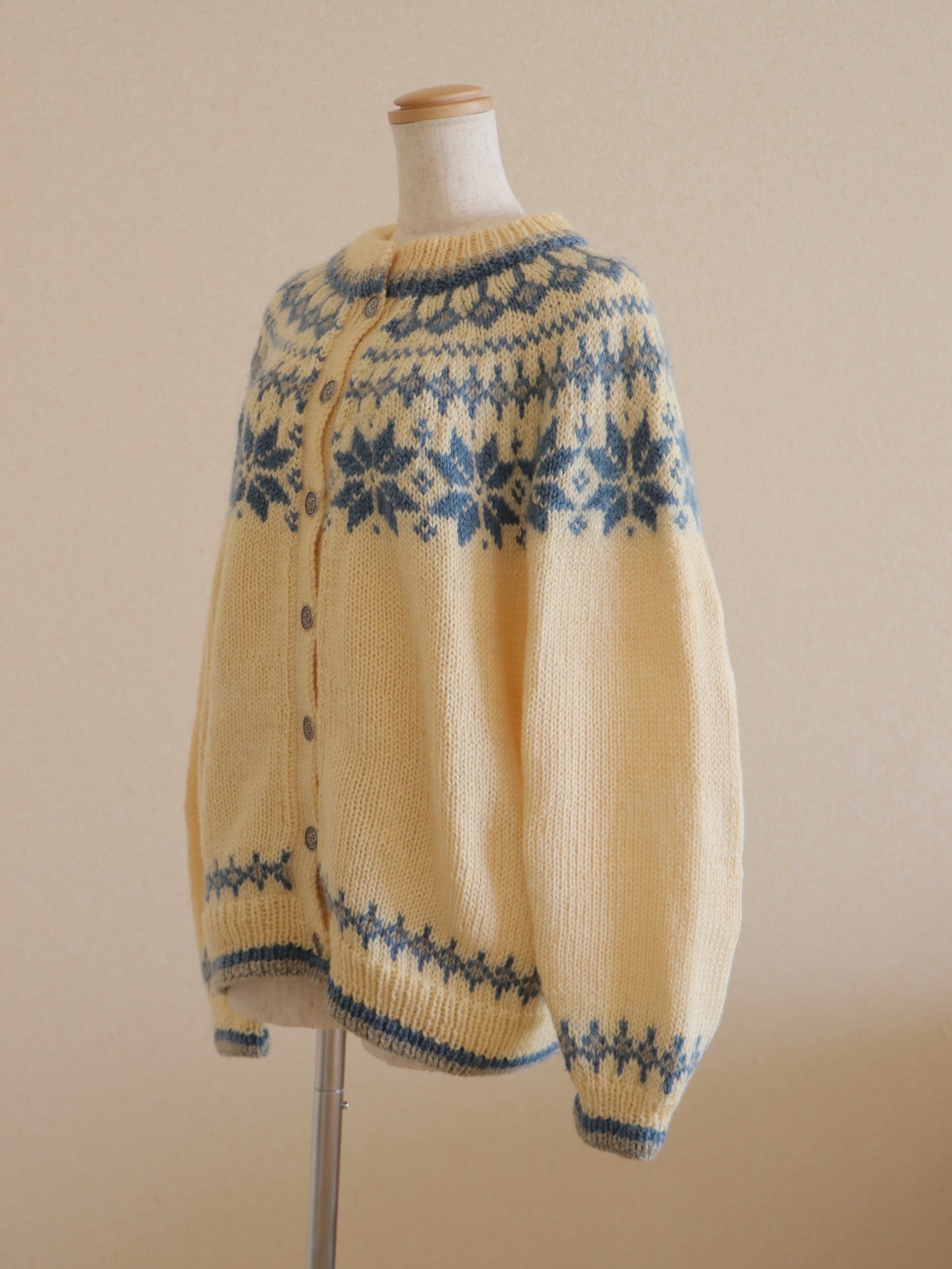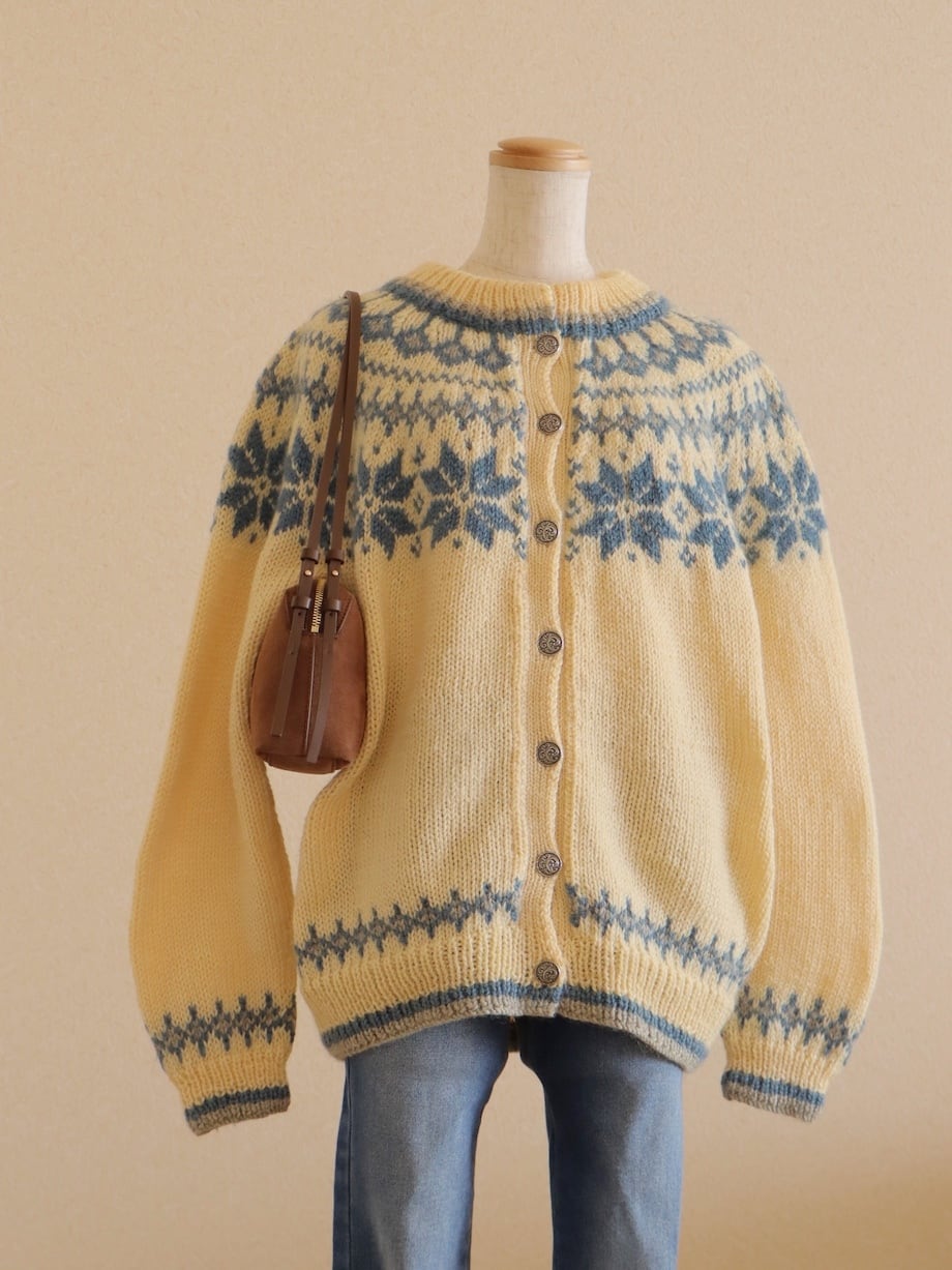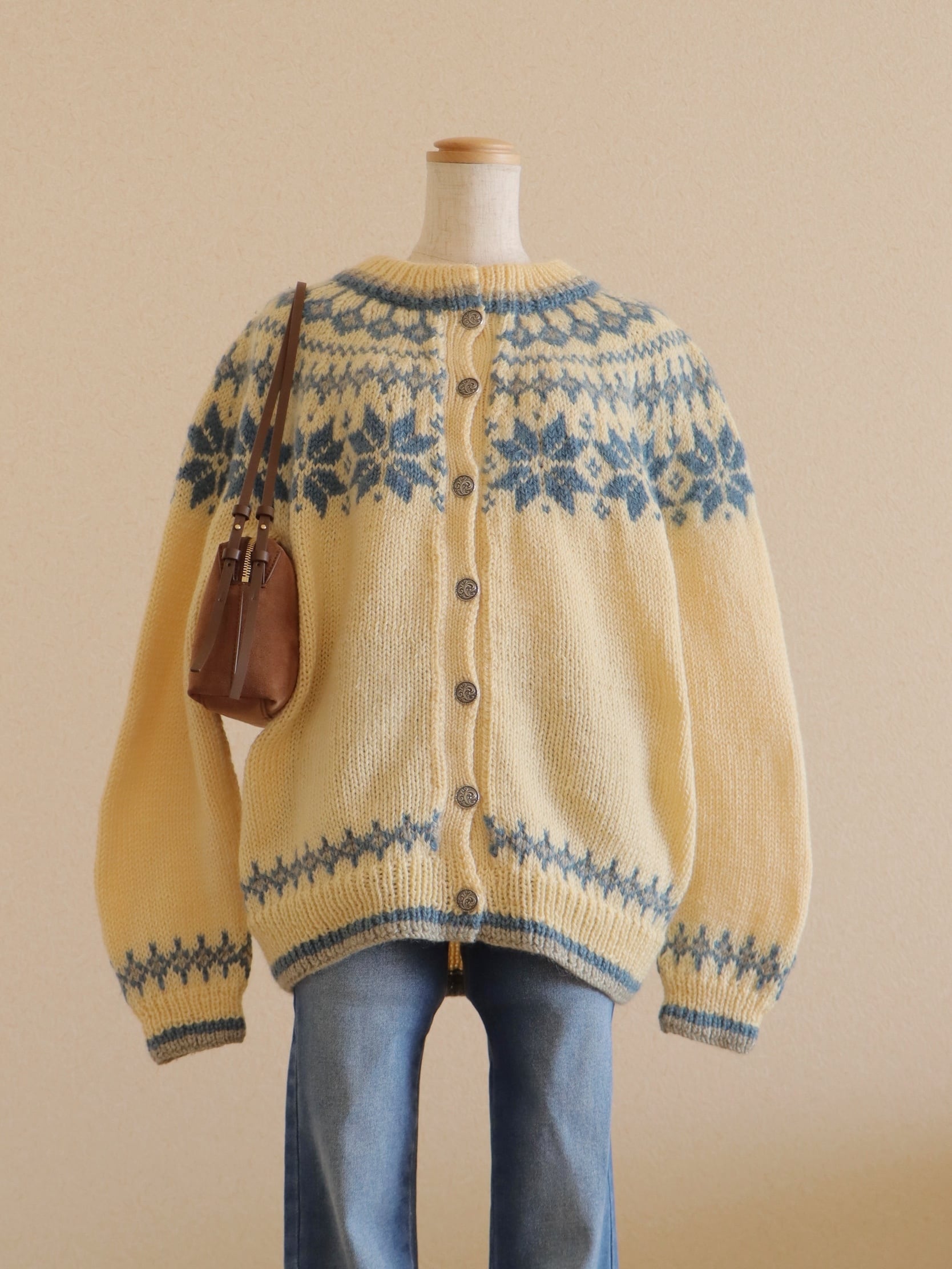 ●Hand knitted pure wool snowflake design nordic cardigan.